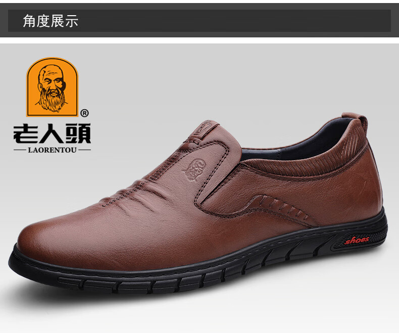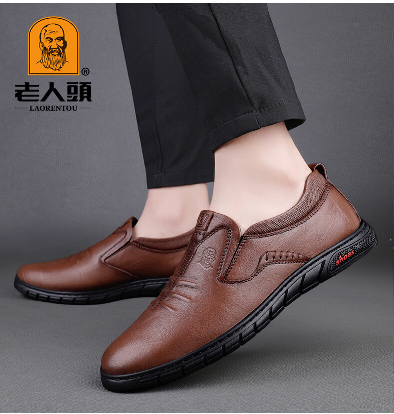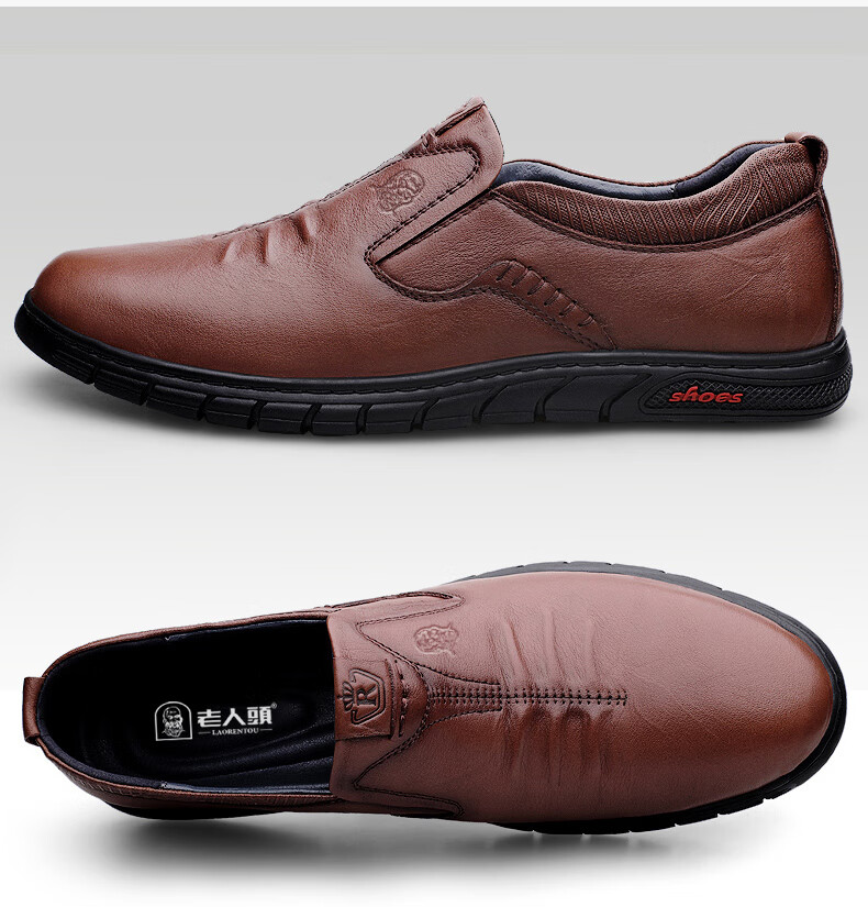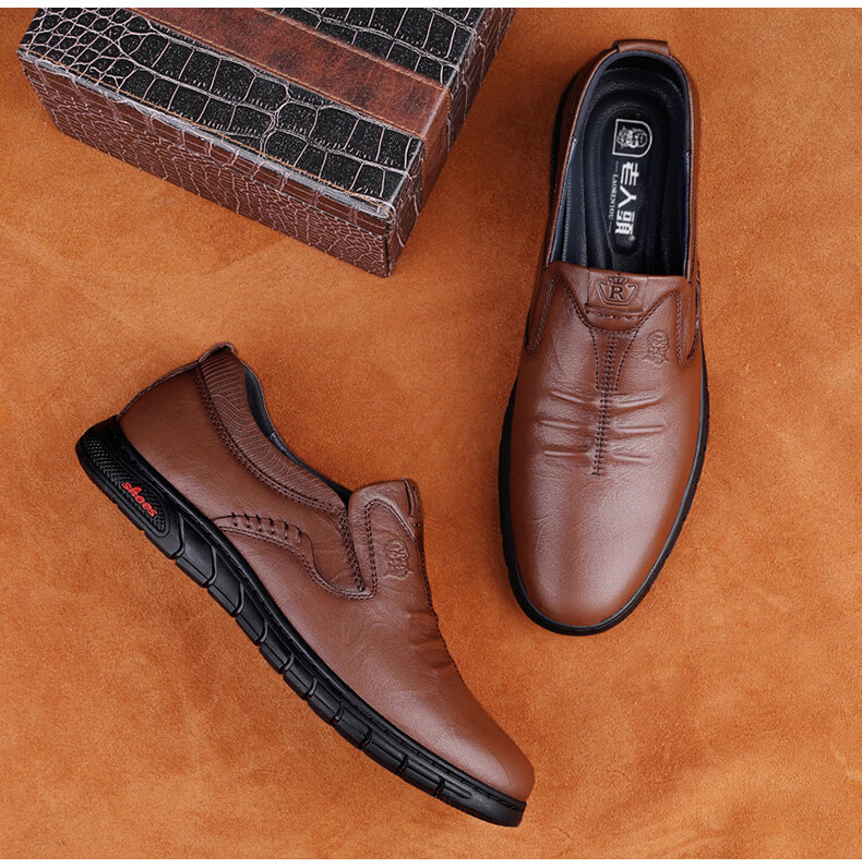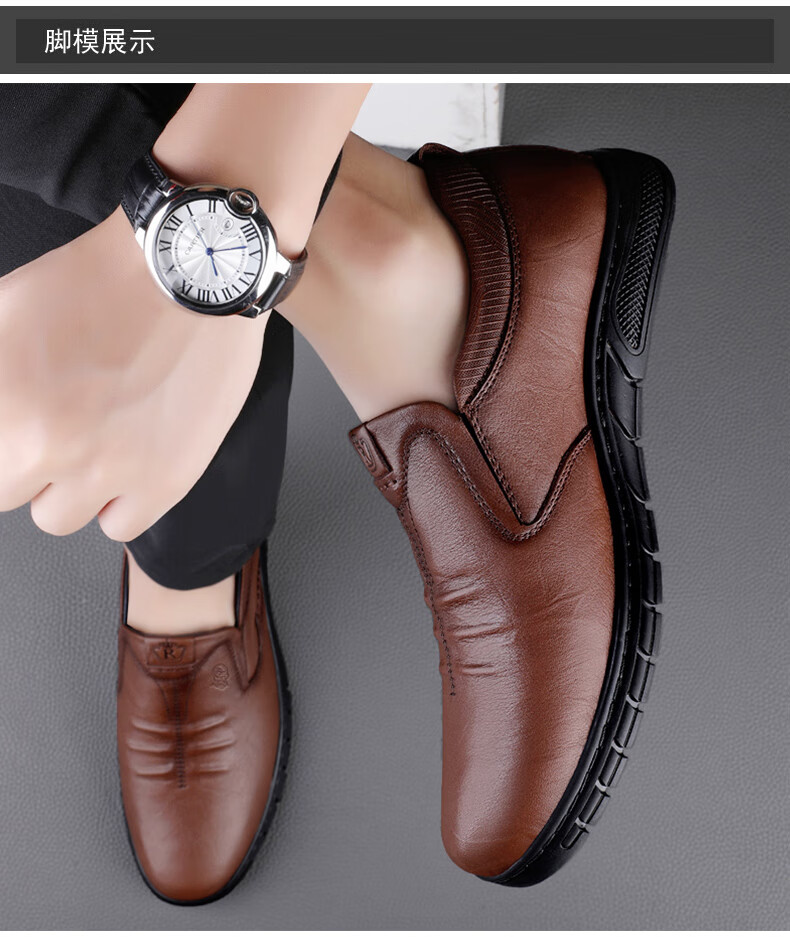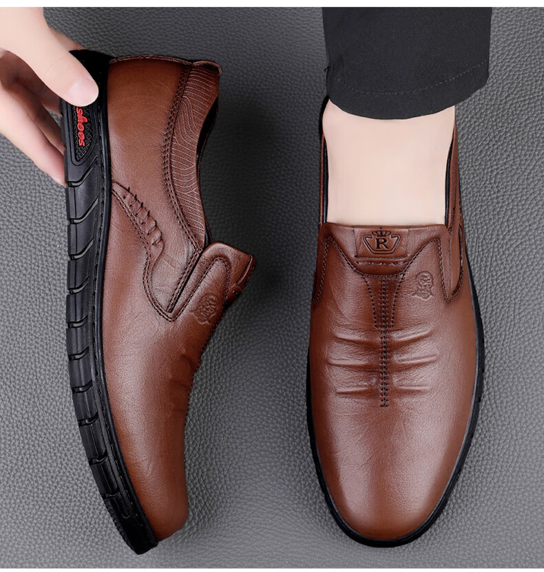 Old Man's Head Men's Business Leather Shoes Soft Leather Soft Sole Bean Shoes Genuine Leather Breathable Slip-on Shoes Light Casual Men's Shoes Black 40 (250mm)