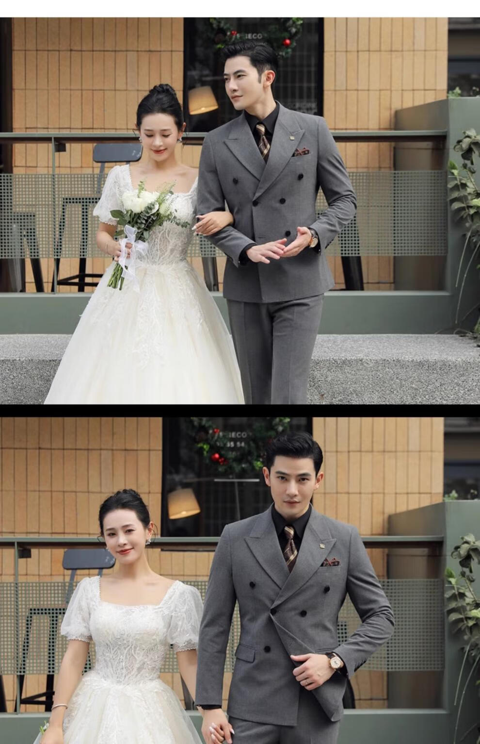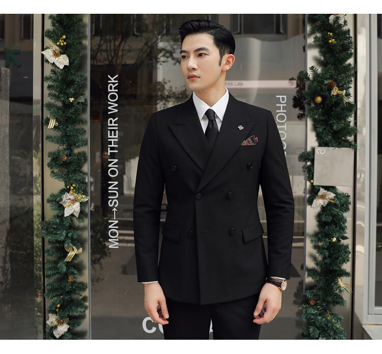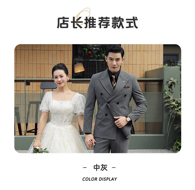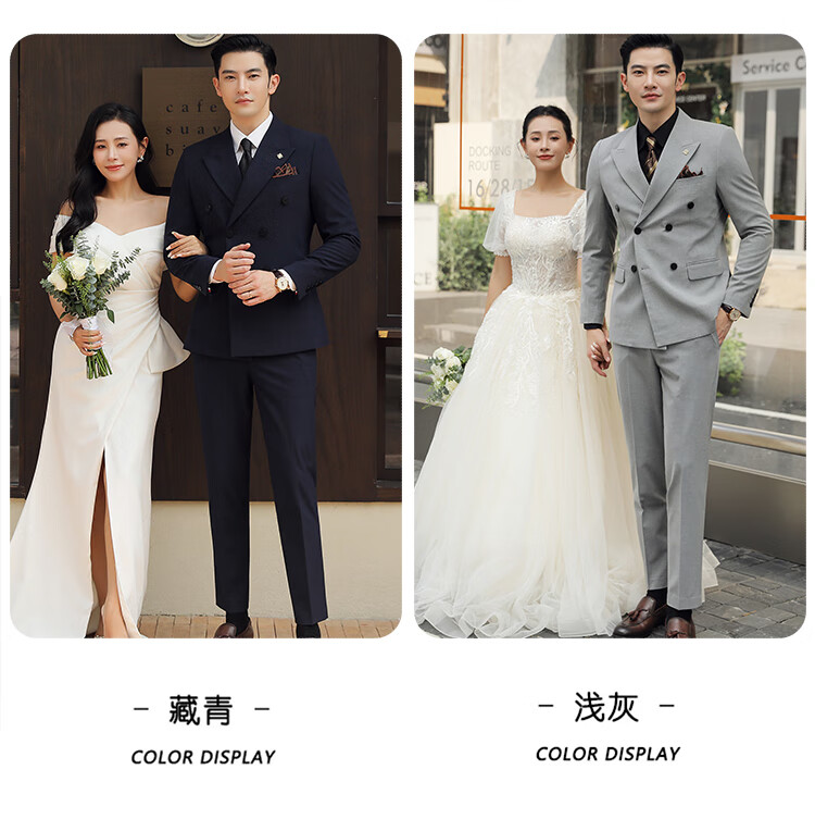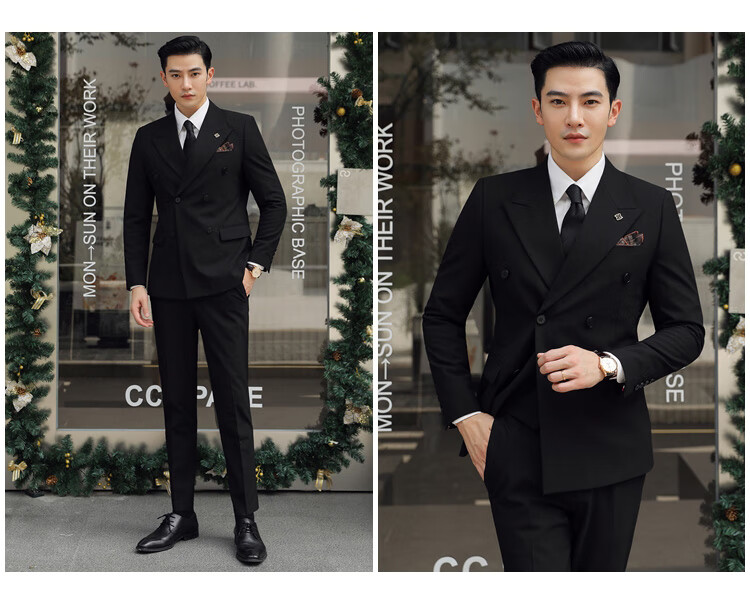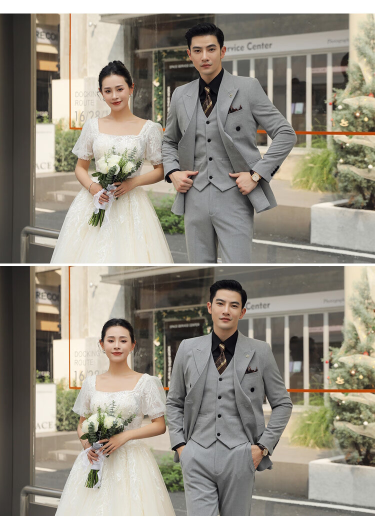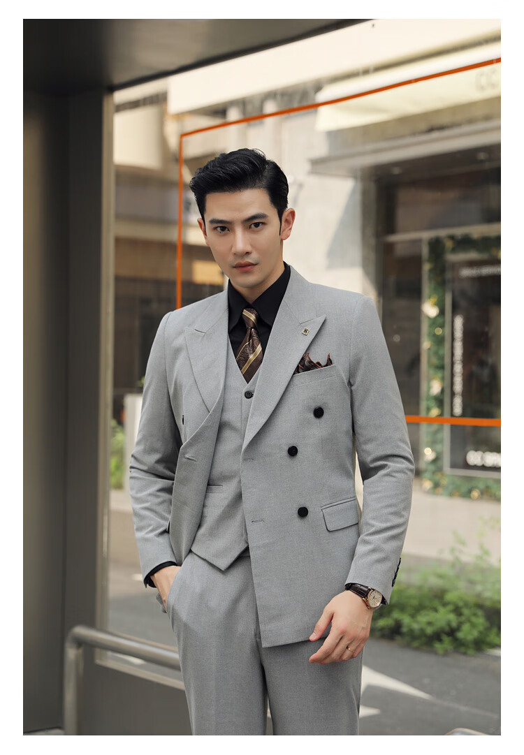 ROMON groom wedding formal suit men's suit dress British double-breasted solid color casual suit men's three-piece suit dark gray top + pants + white shirt 52/XL 120-135Jin Jin equals 0.5 kg to wear