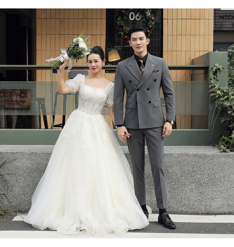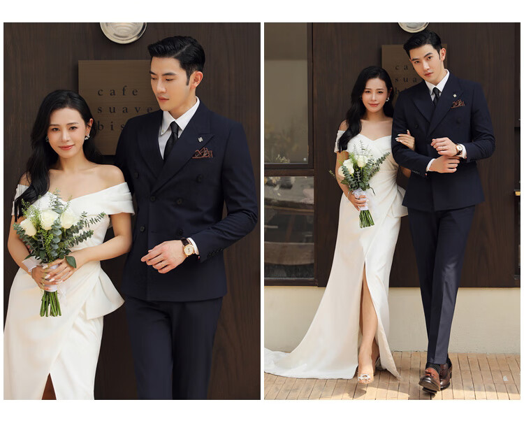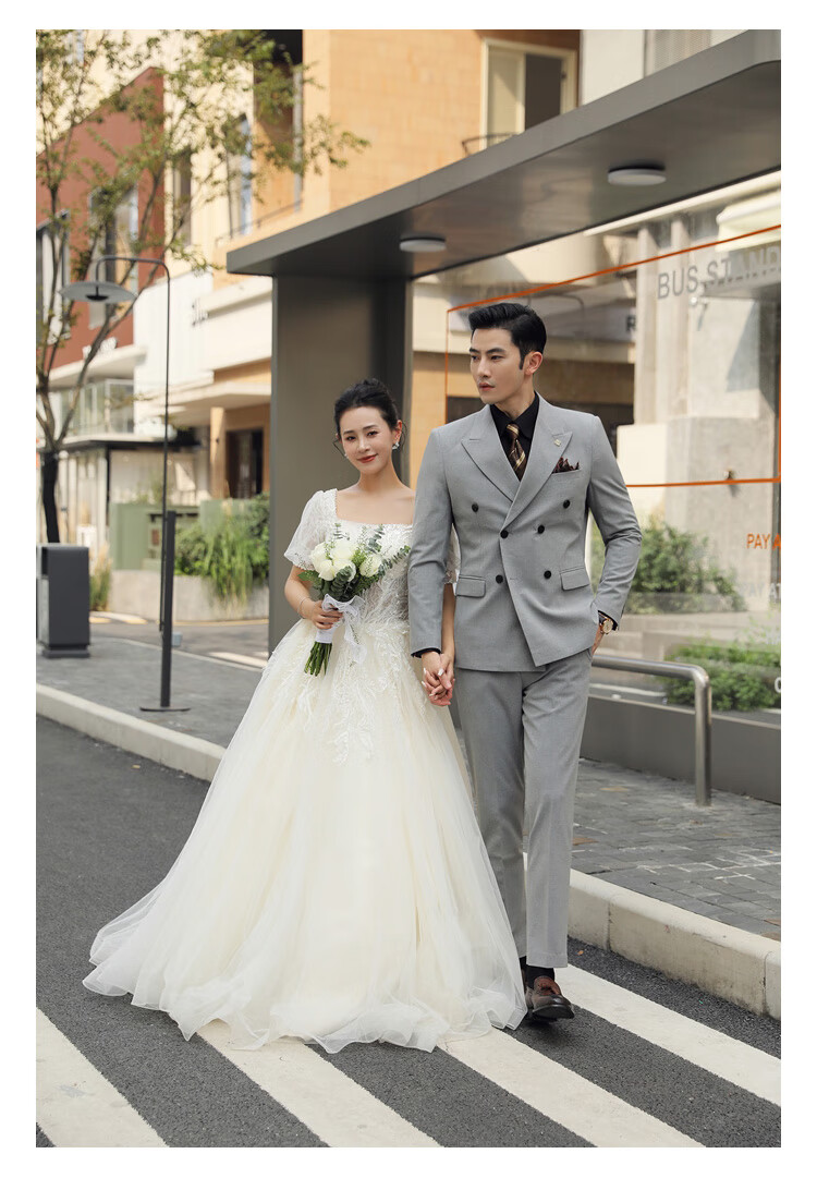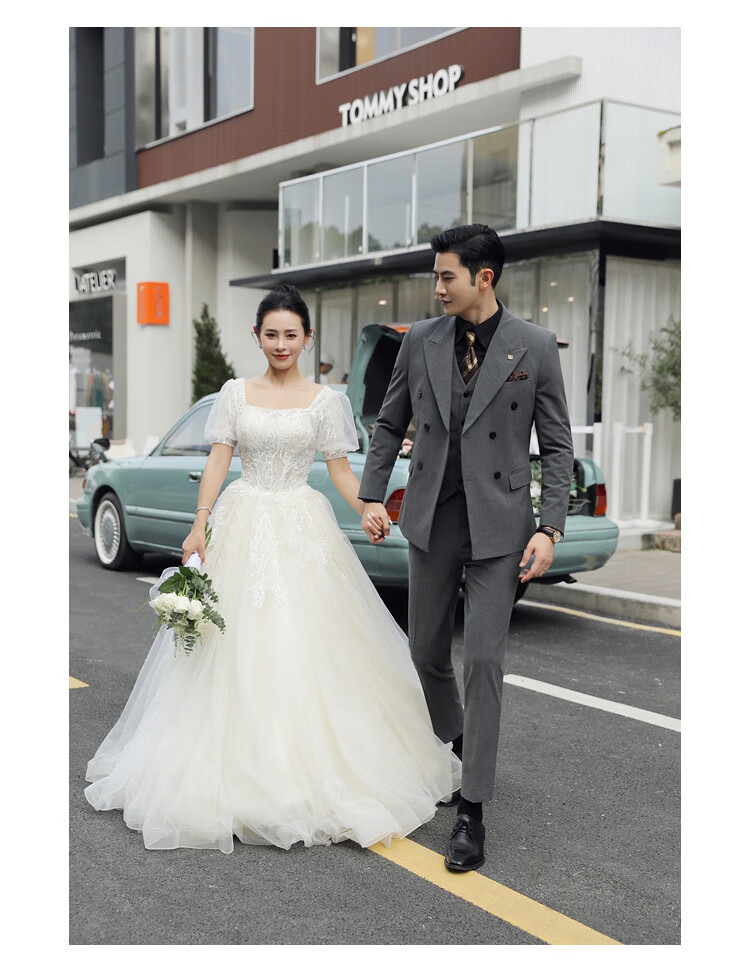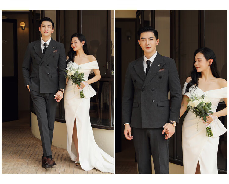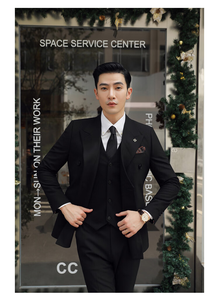 ROMON groom wedding formal suit men's suit dress British double-breasted solid color casual suit men's three-piece suit dark gray top + pants + white shirt 52/XL 120-135Jin Jin equals 0.5 kg to wear