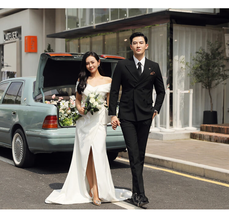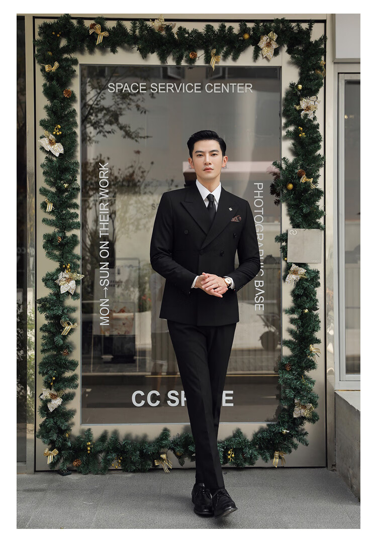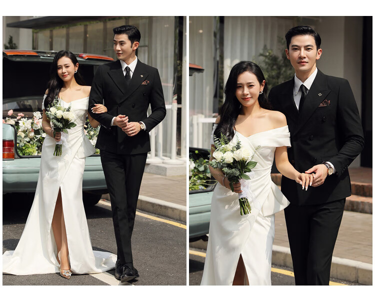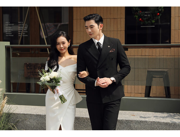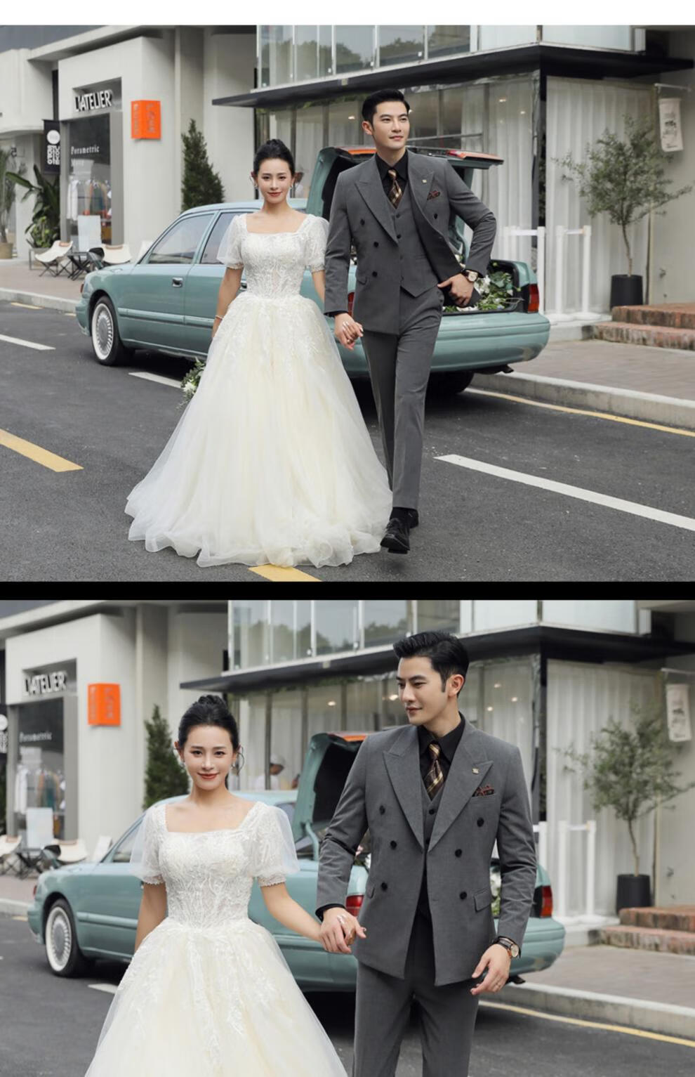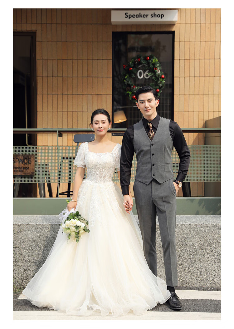 ROMON groom wedding formal suit men's suit dress British double-breasted solid color casual suit men's three-piece suit dark gray top + pants + white shirt 52/XL 120-135Jin Jin equals 0.5 kg to wear
