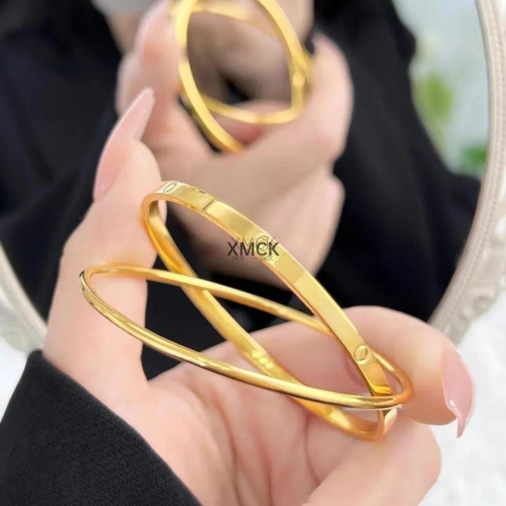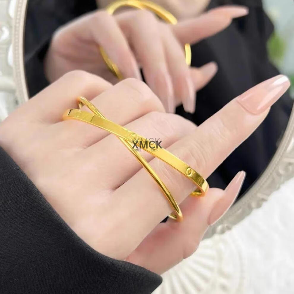 XMCK ancient double circle dot golden yellow bracelet shiny couple bracelet niche design versatile jewelry frosted double circle bracelet-57 size