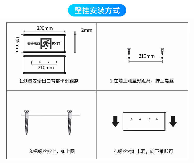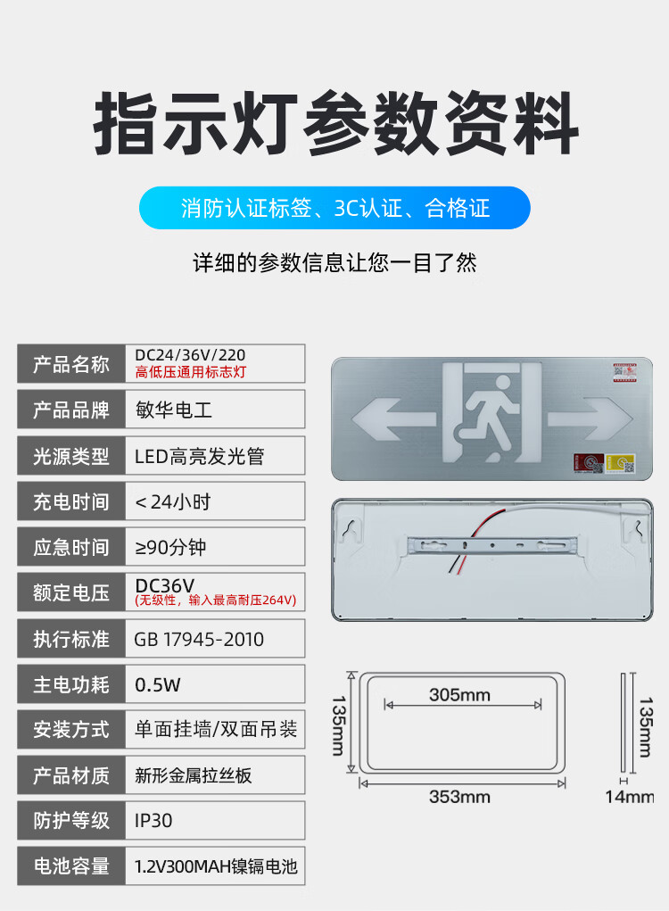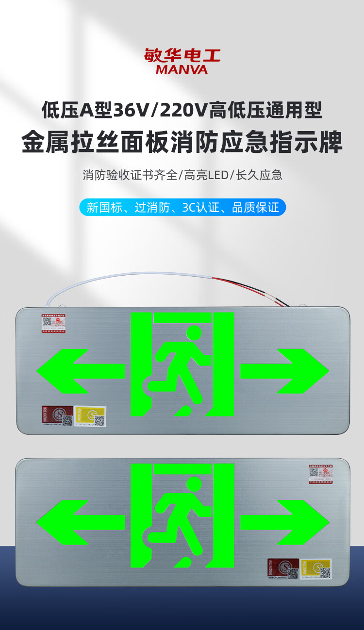 Man Wah Electrician Man Wah safety exit indicator emergency lighting evacuation indication high and low voltage universal 24v36v220v sign Man Wah single-sided Ankou 24-220V universal