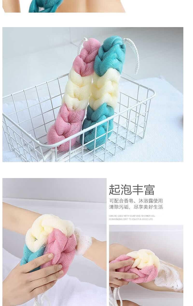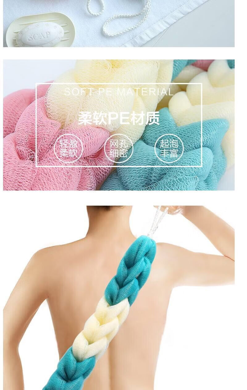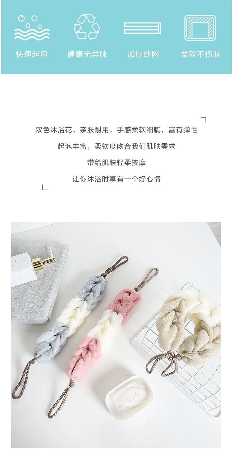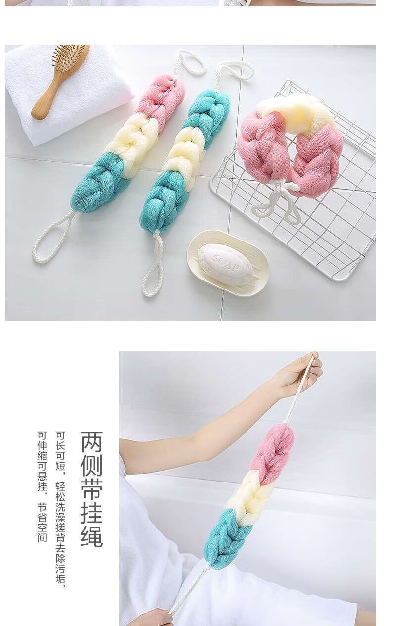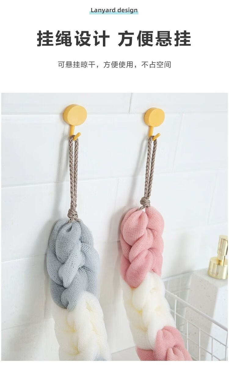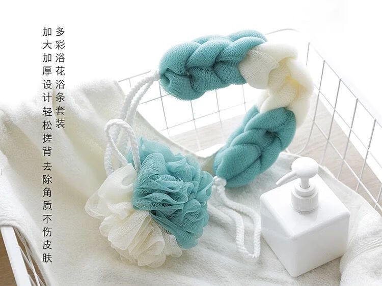 Bath ball large bath strip thickened long bath towel rub back towel pull back strip bath wipe and rub bath artifact elastic and can rub back thickened version *free hook blue and white 1 pack