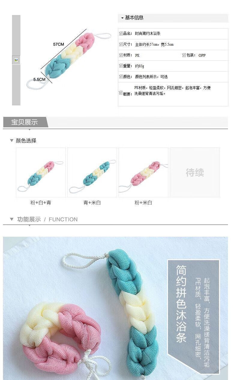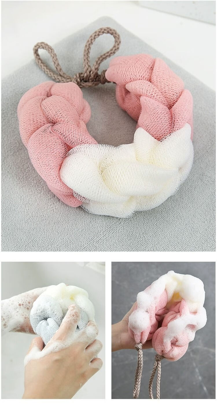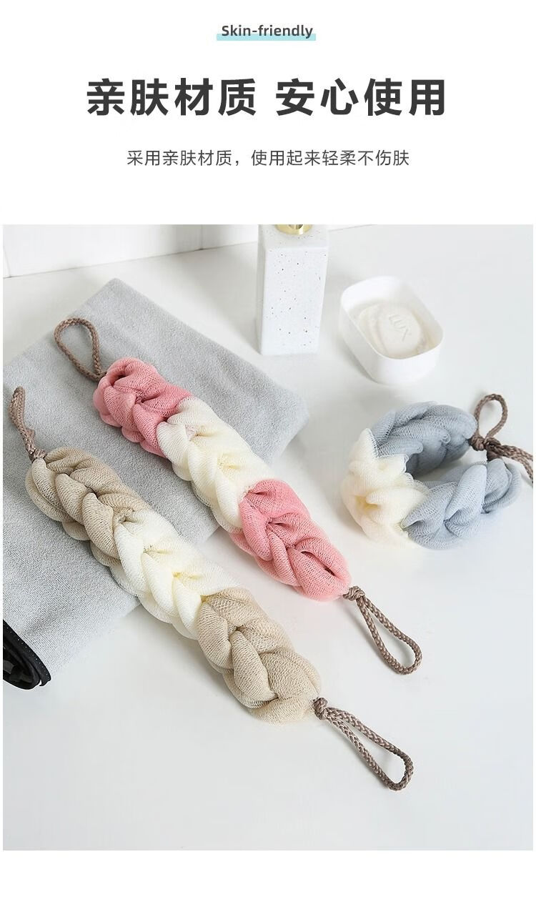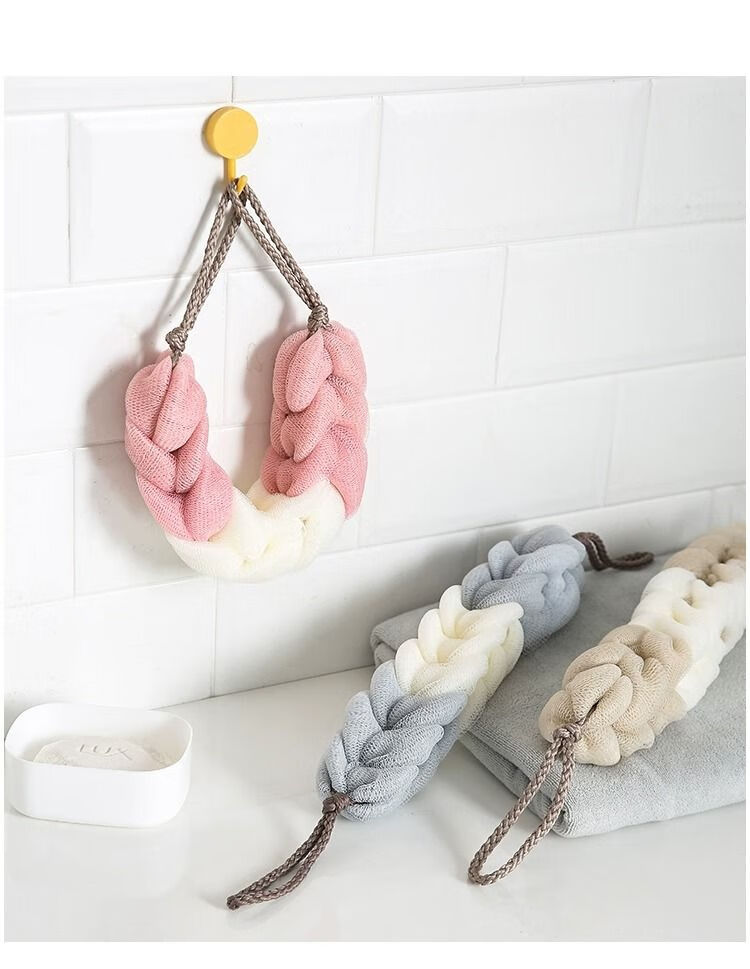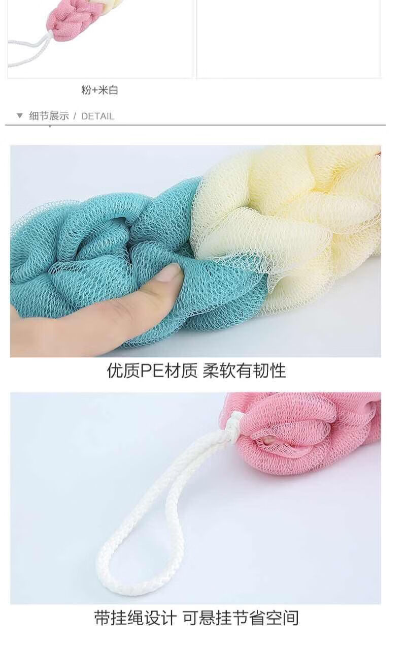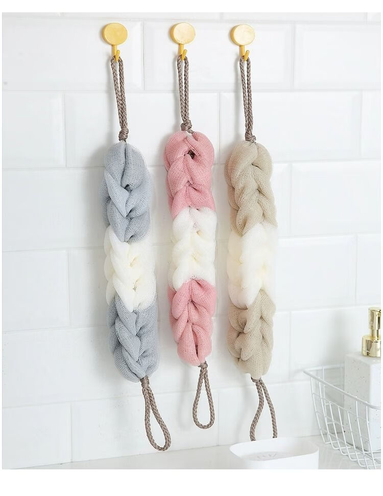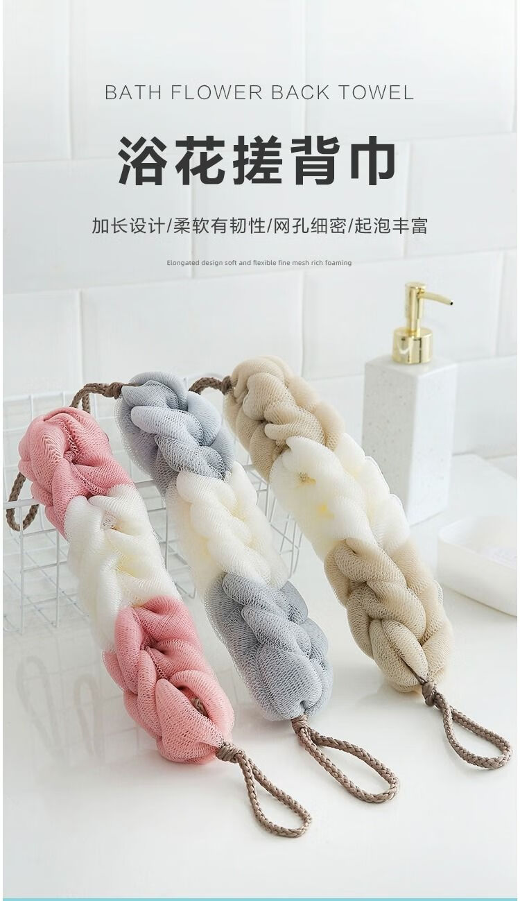 Bath ball large bath strip thickened long bath towel rub back towel pull back strip bath wipe and rub bath artifact elastic and can rub back thickened version *free hook blue and white 1 pack