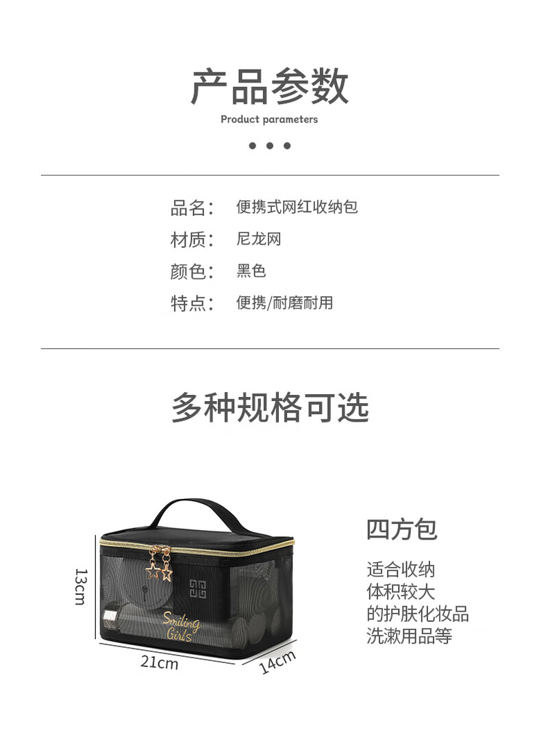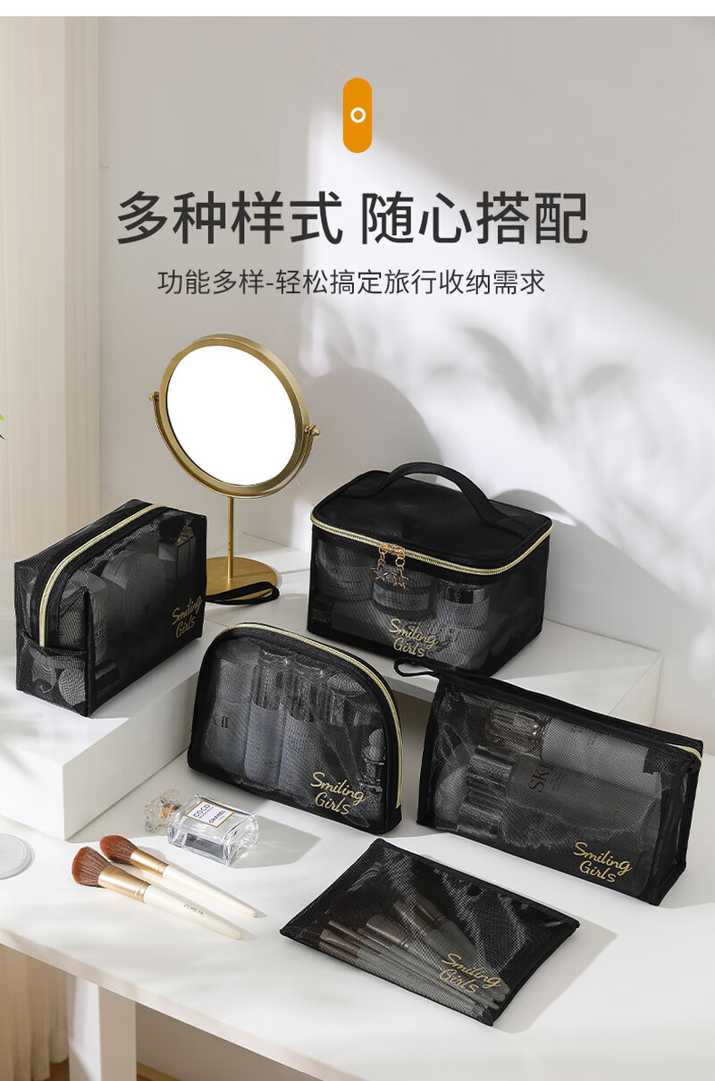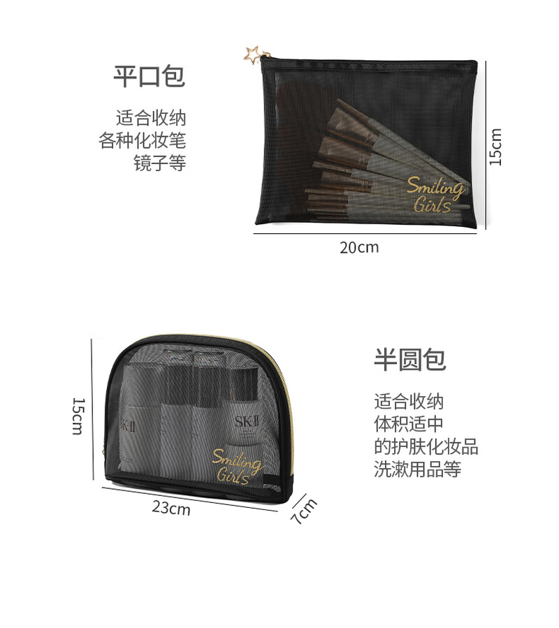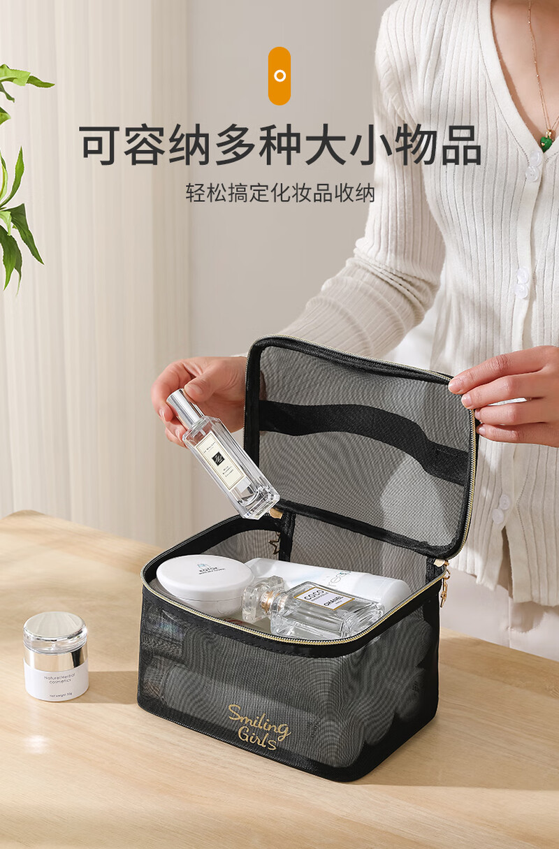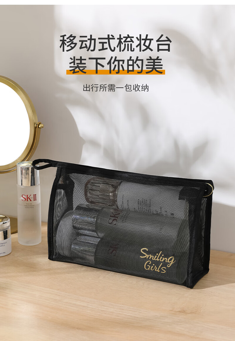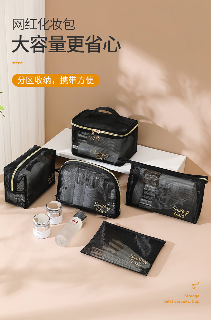 JD Logistics 2025 Cosmetic Bag Women's Portable Small High-Quality Transparent Mesh Travel Storage Toiletries Bag Triangular Style