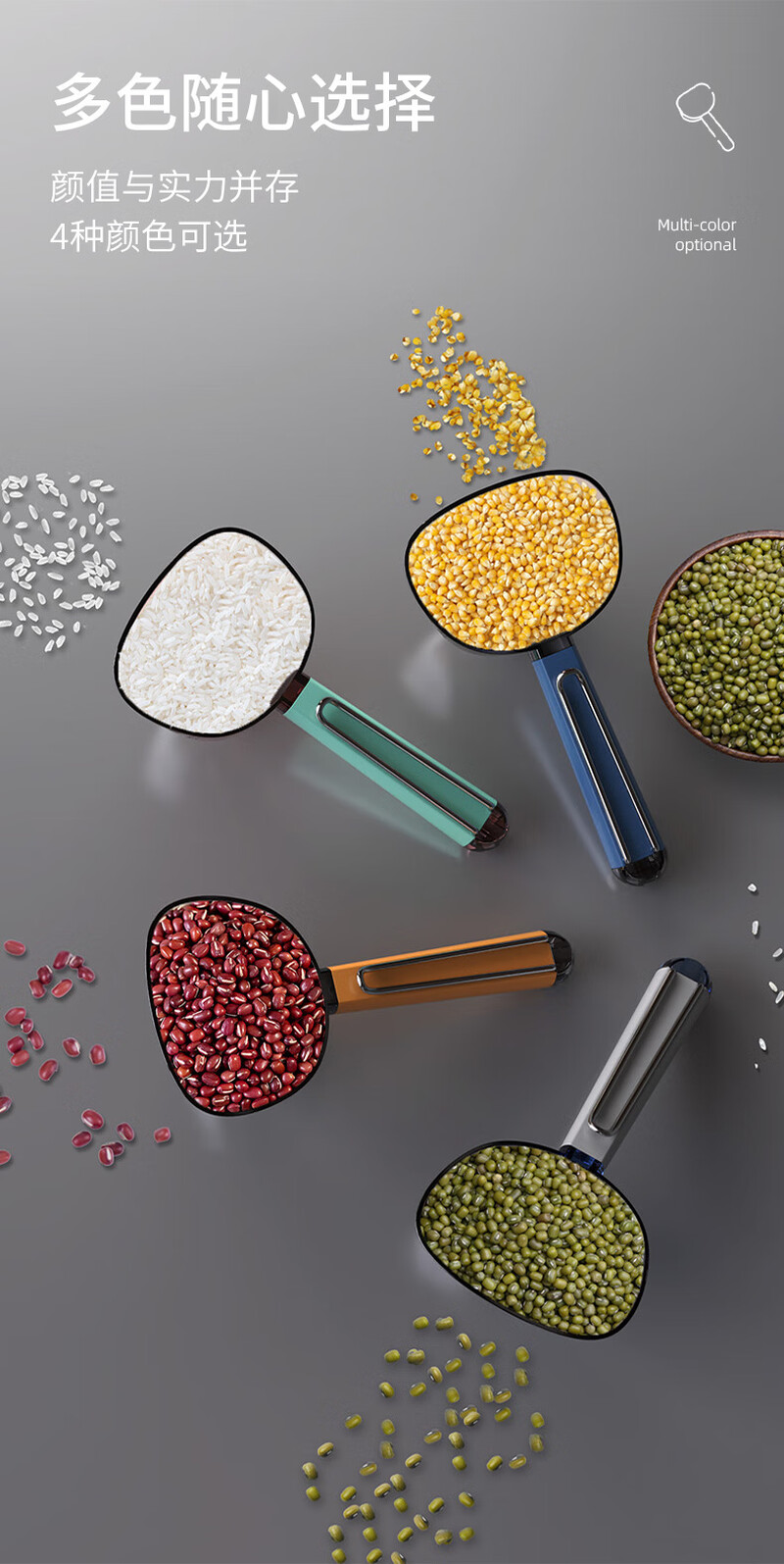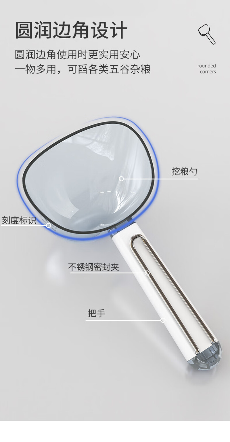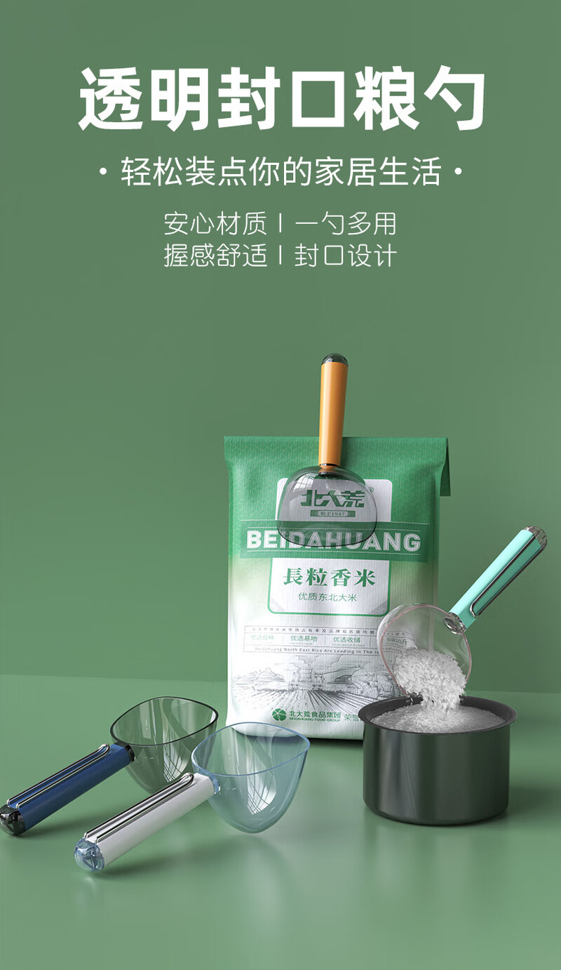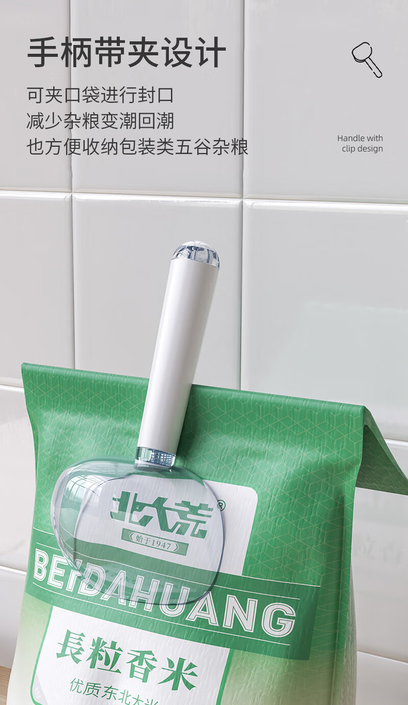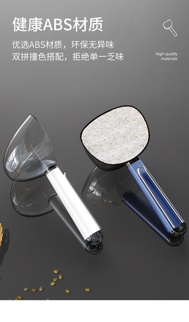 Multifunctional rice scooping spoon household plastic spoon 5 grain scooping spoon with sealing clip flour shovel measuring spoon rice Aima Orange comes with scale