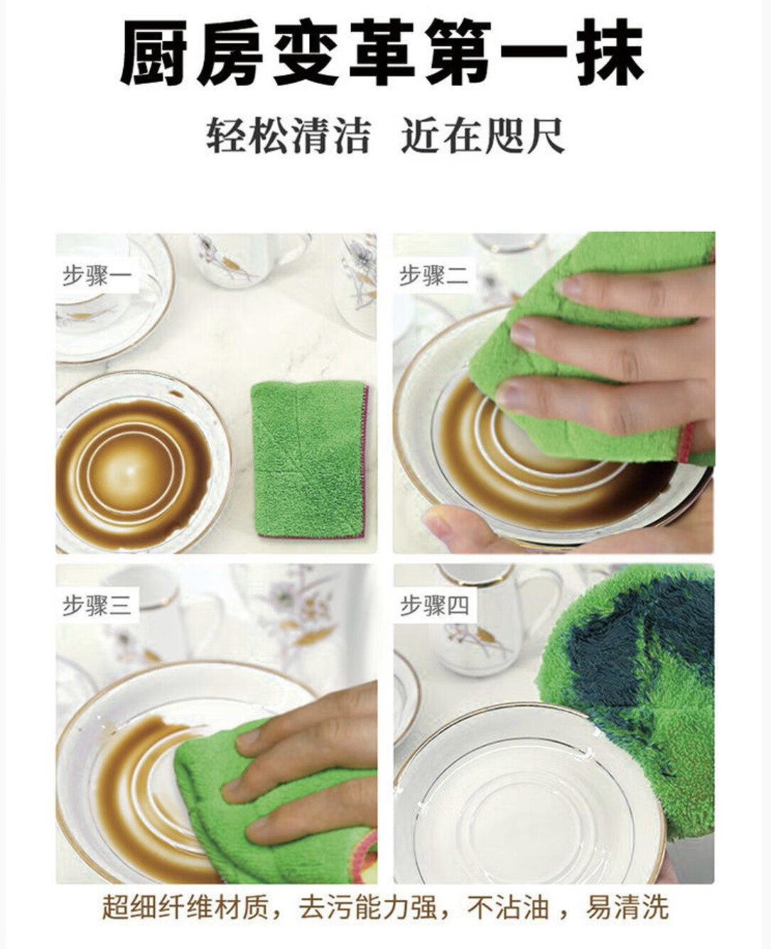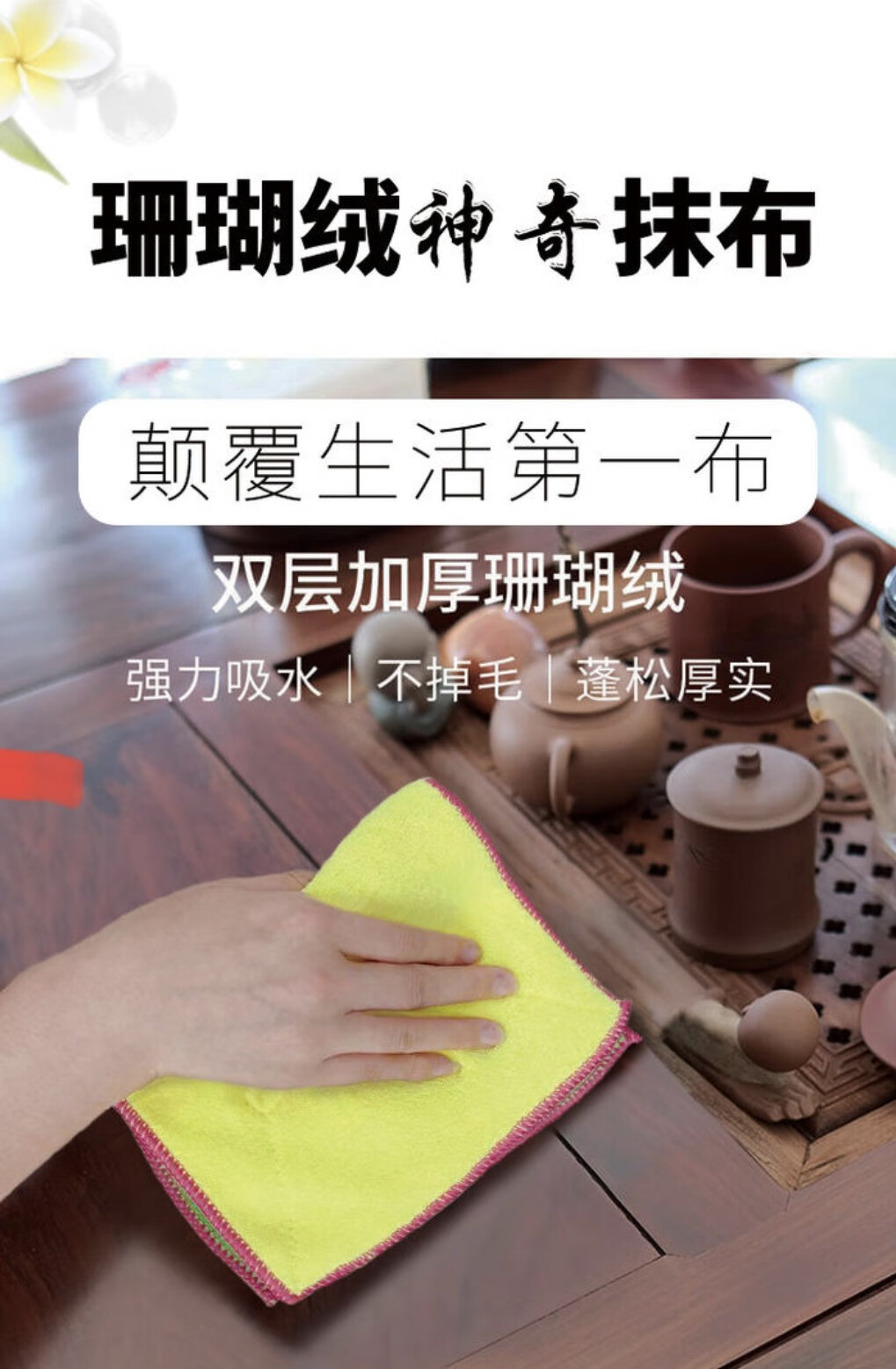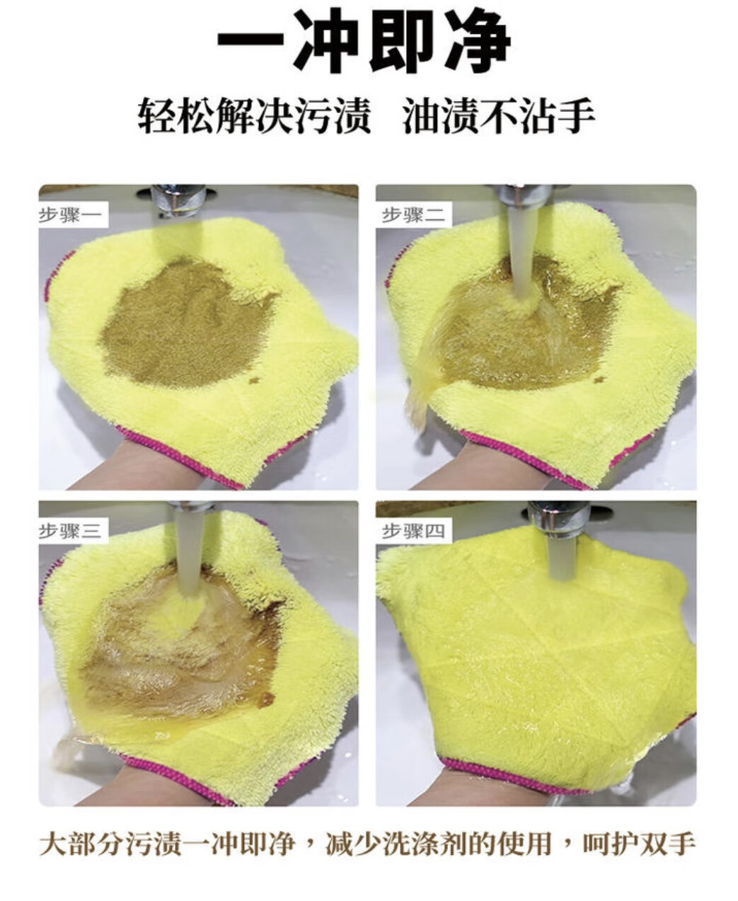 ONEDAY Japanese yellow-green velvet rag thickened magic non-oil cloth absorbs water and removes oil 3 pieces double-sided kitchen cleaning yellow-green 3 pieces