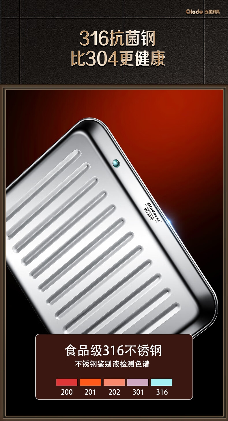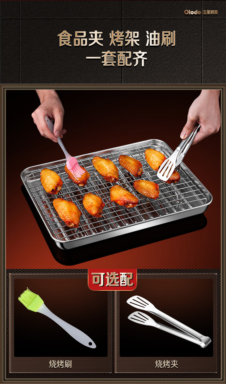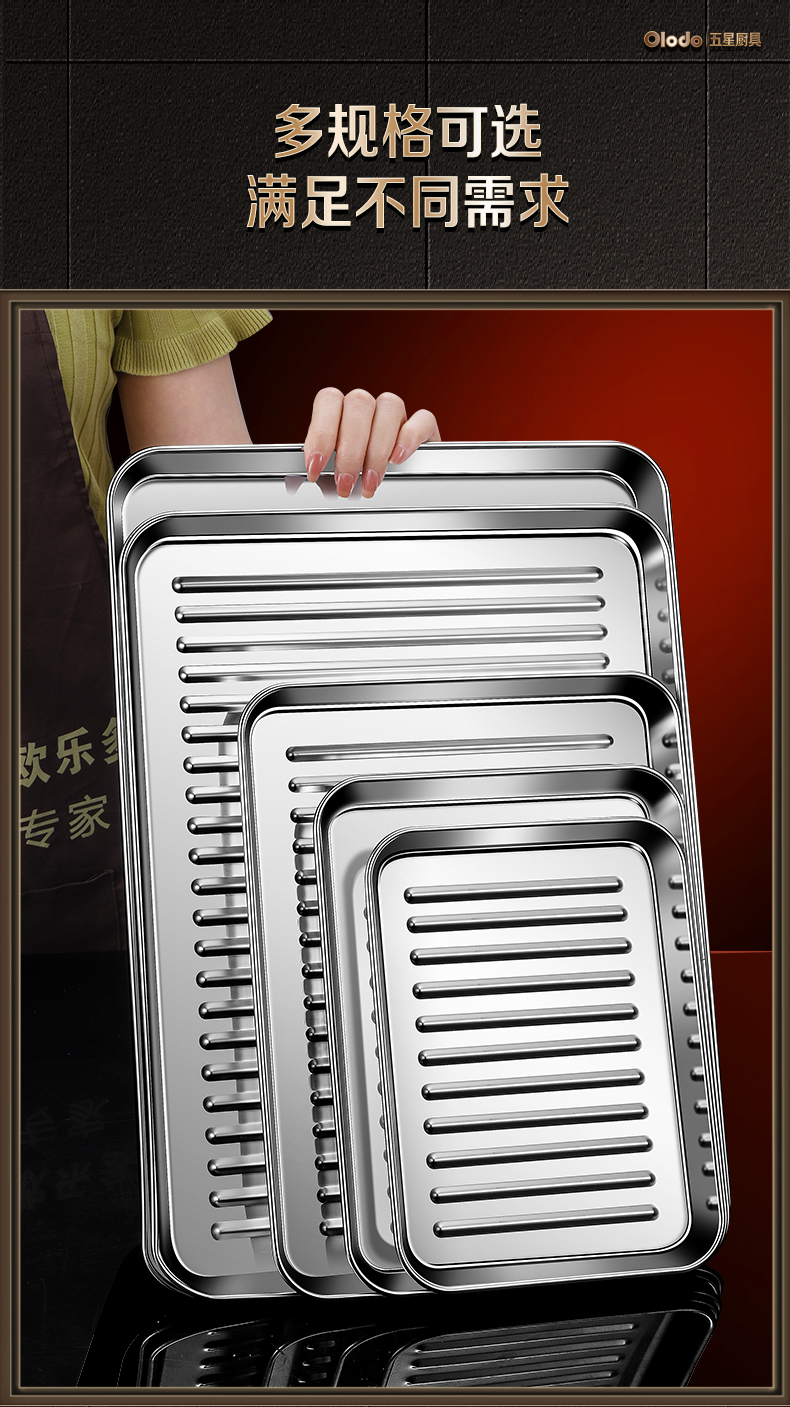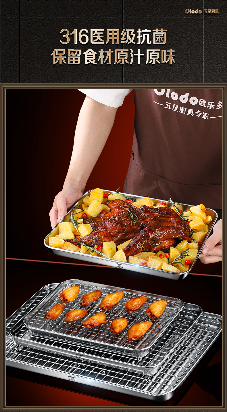 Olodo 316 stainless steel square plate rectangular baking pan oven commercial grilled fish plate vegetable plate household plate dumpling plate tray 316 multi-purpose baking pan 24cm