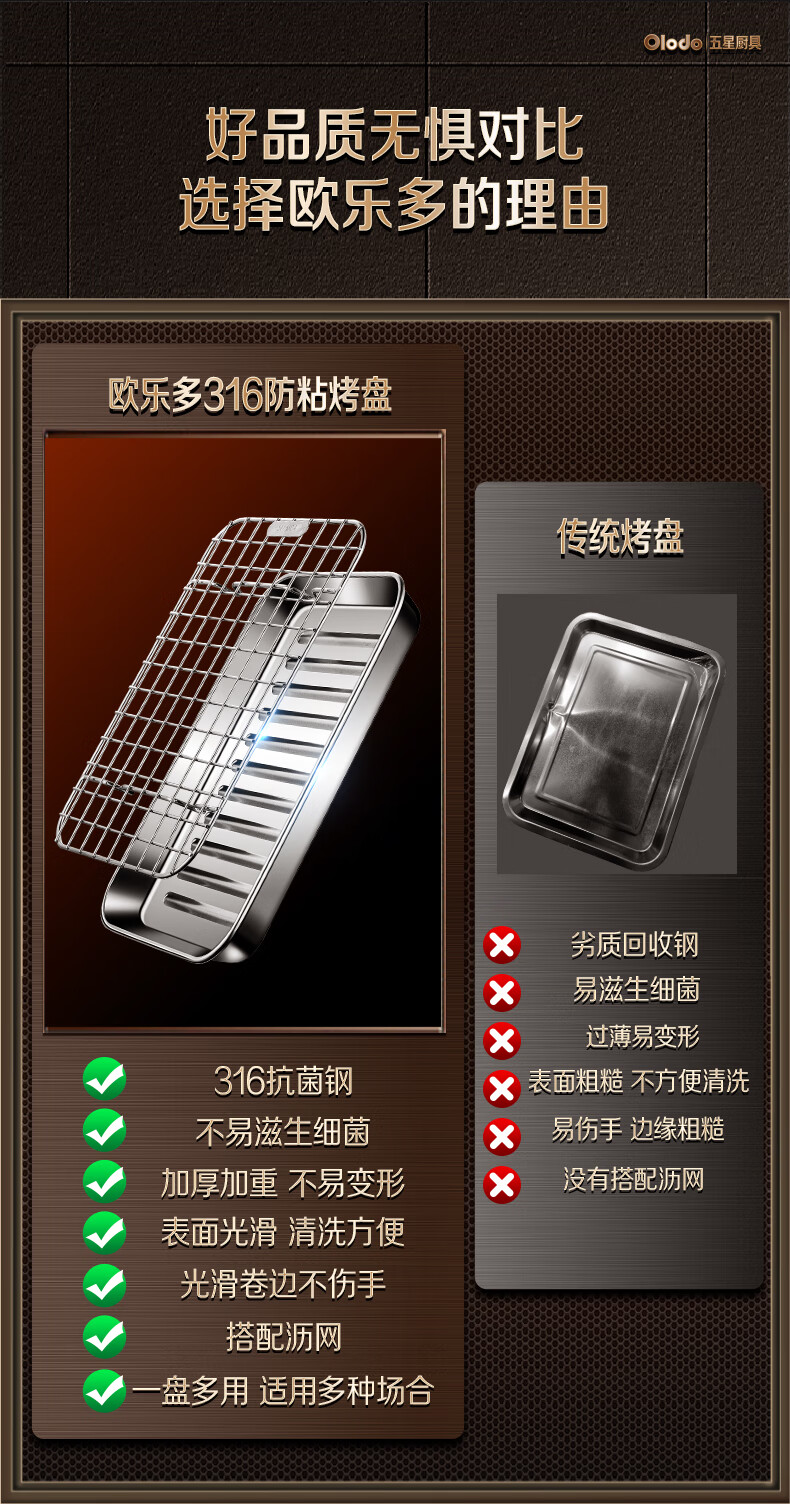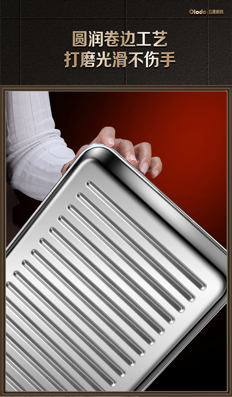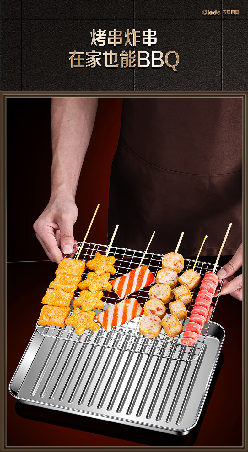 Olodo 316 stainless steel square plate rectangular baking pan oven commercial grilled fish plate vegetable plate household plate dumpling plate tray 316 multi-purpose baking pan 24cm