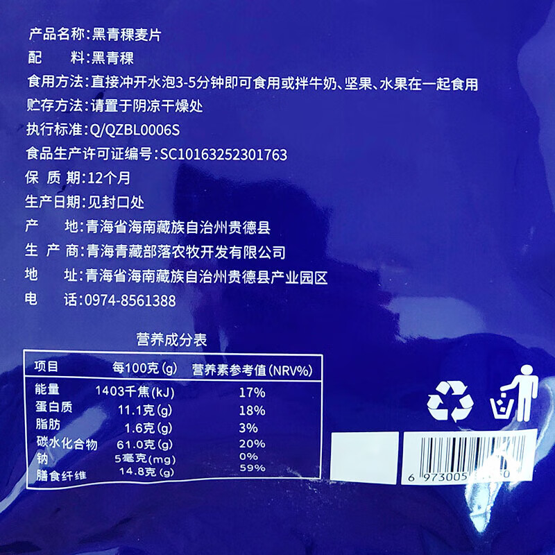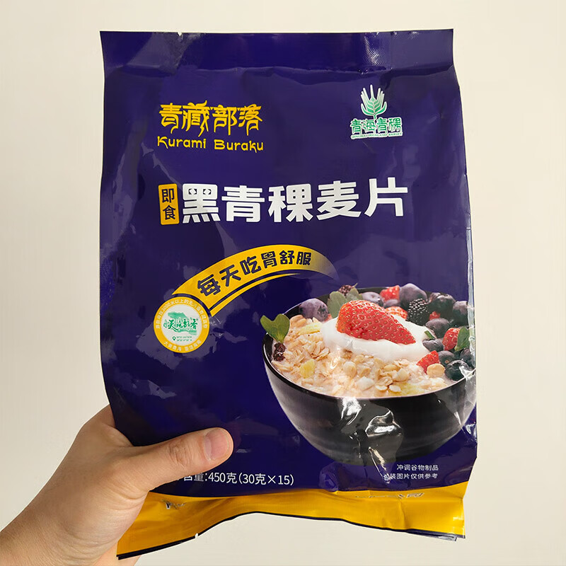 Qinghai tribe black and white highland barley oatmeal independent bag pure oatmeal ready-to-eat breakfast Qinghai specialty black highland barley oatmeal 450g*1 bag