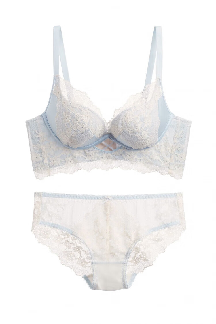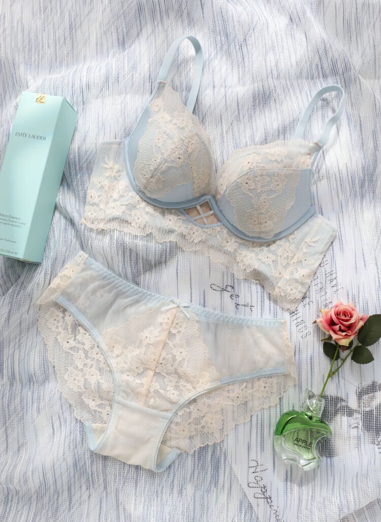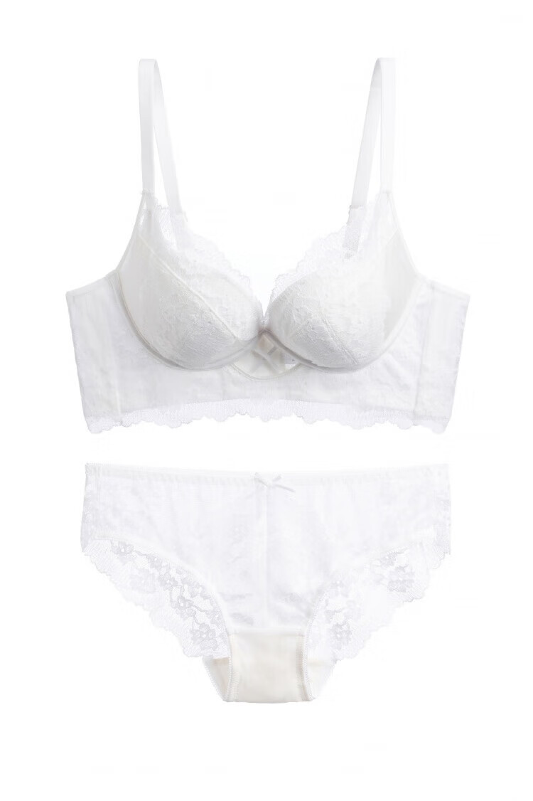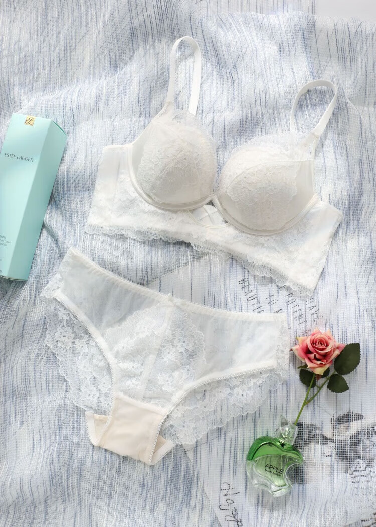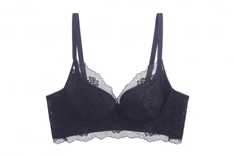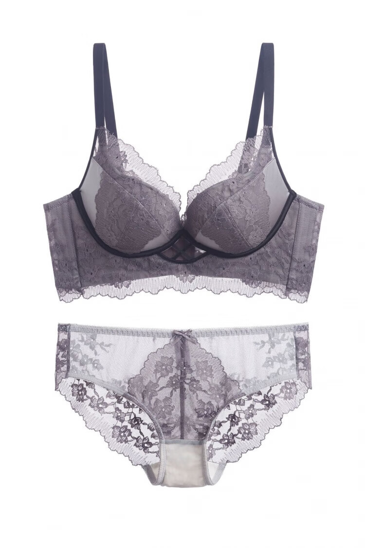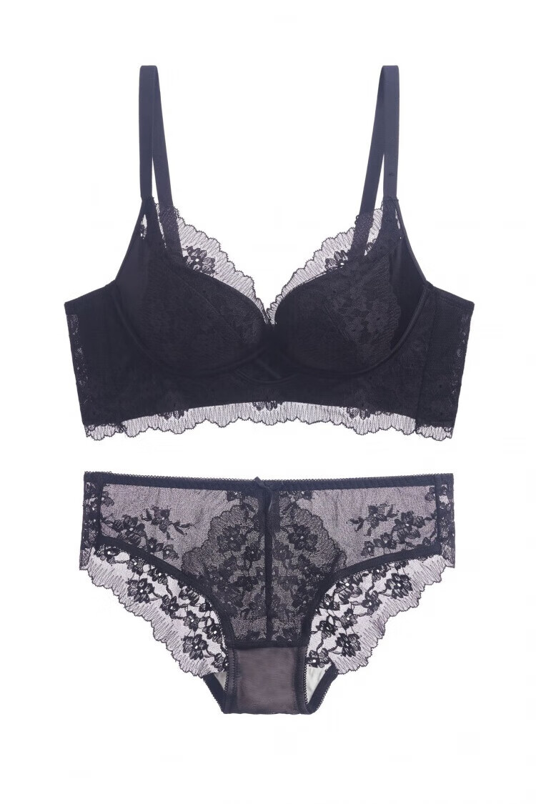 Modal Pure Desire Lace Underwear Women's Small Breast Gathering and Enlarging No Wire Ring Bra Adjustable Breast Reduction Solid Color Bra Set Black Set M 34/75AB