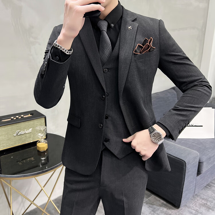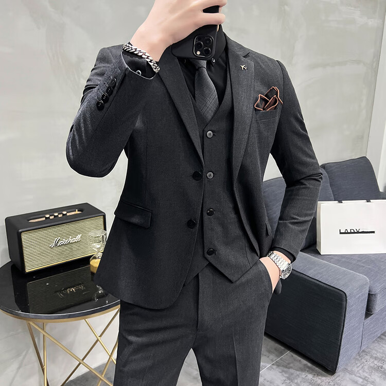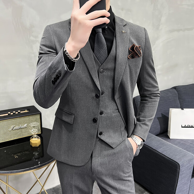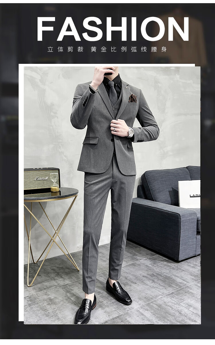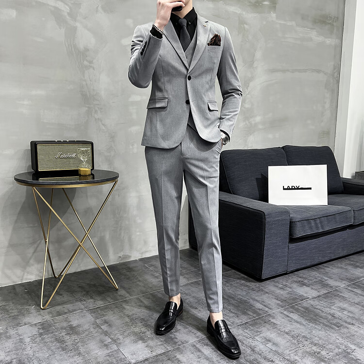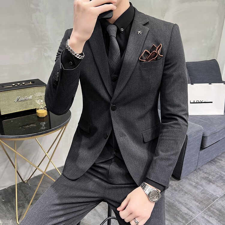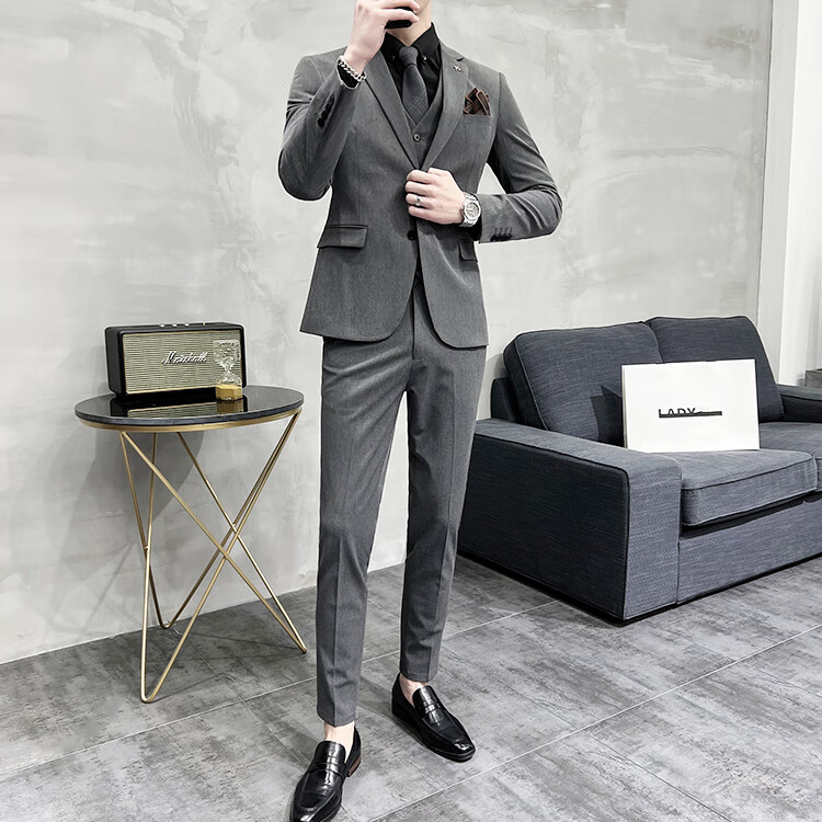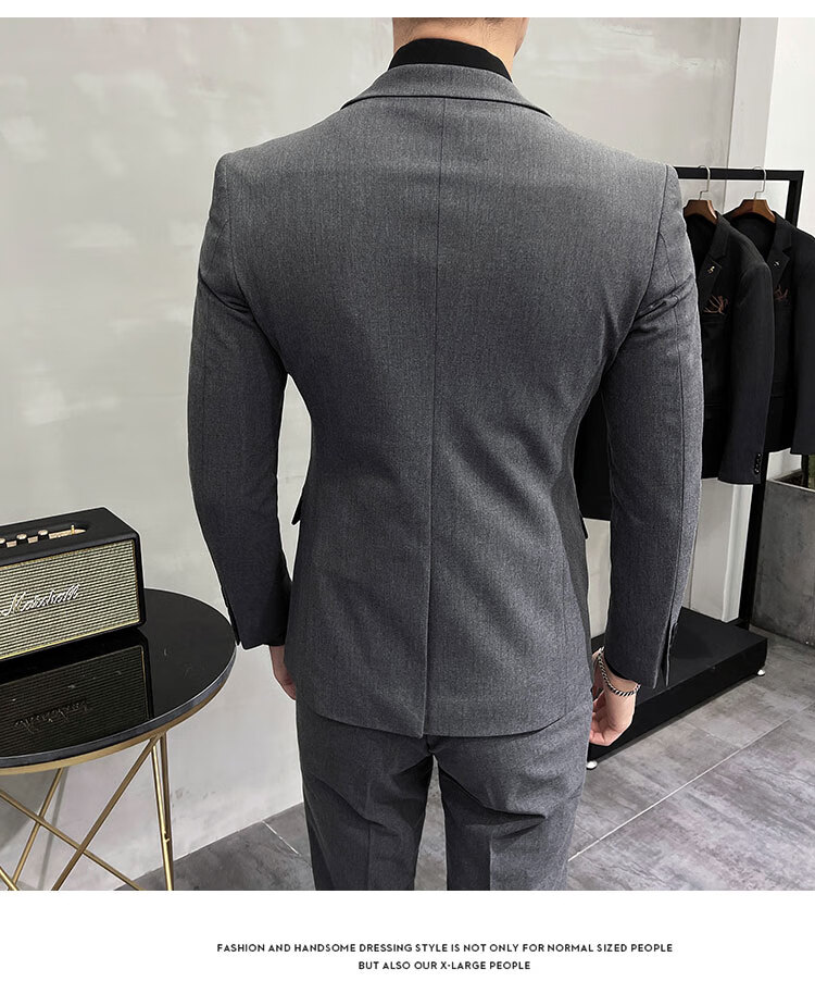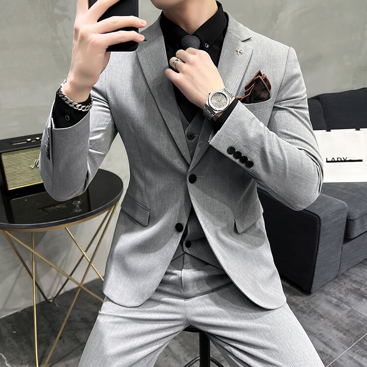 ROMON Groom's Suit Men's Business Professional Formal Wedding Dress Casual British Style Slim Suit Men's Jacket Medium Gray Two Buttons Suit Jacket XL 124-134Jin Jin equals 0.5 kg Wear