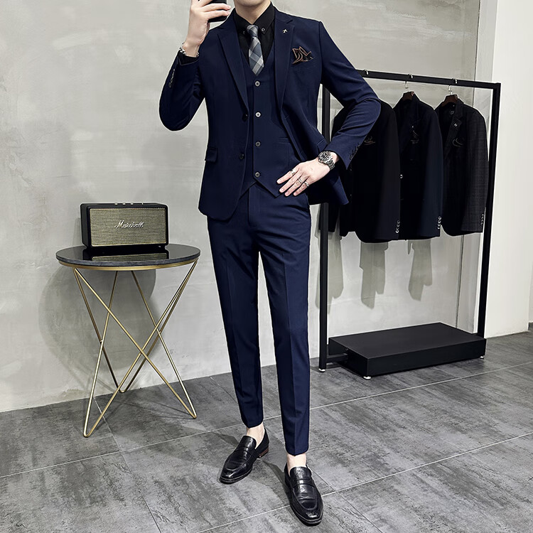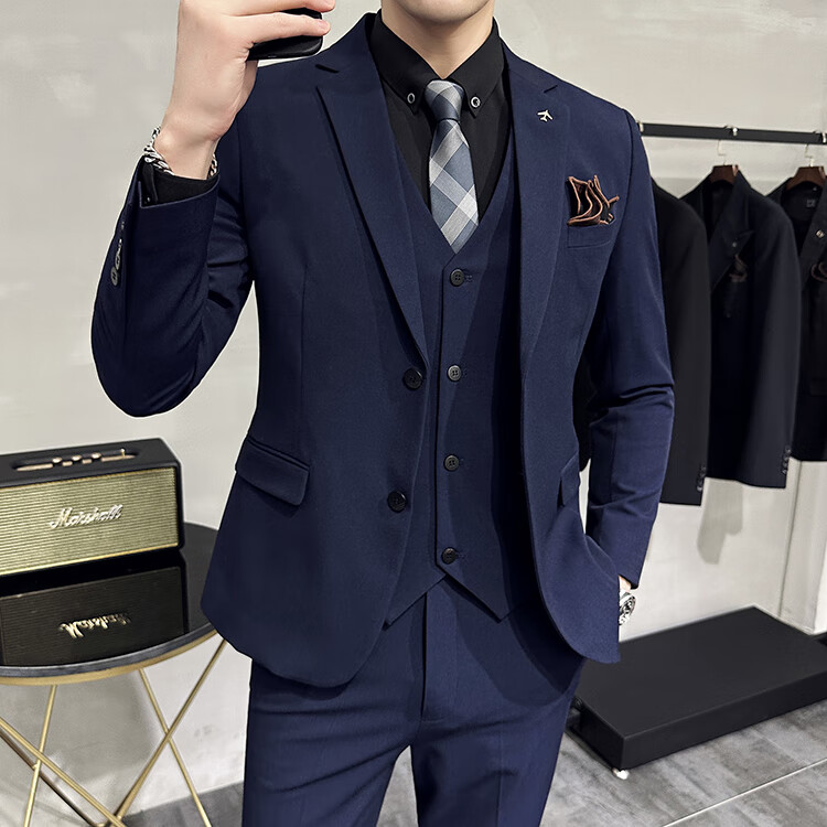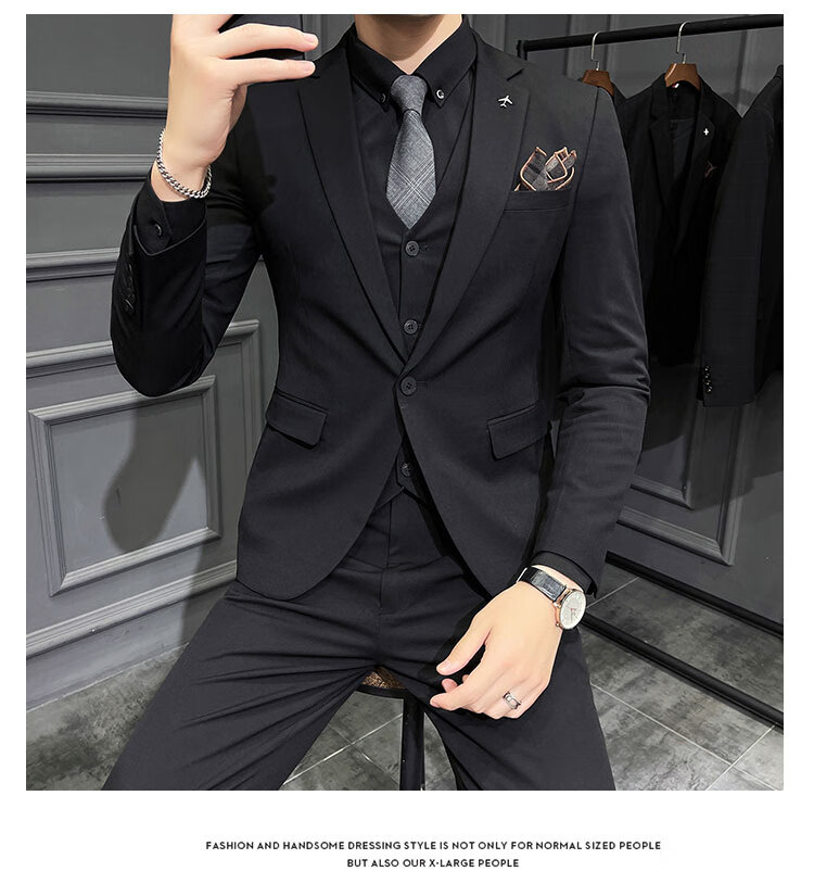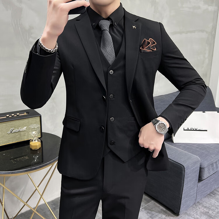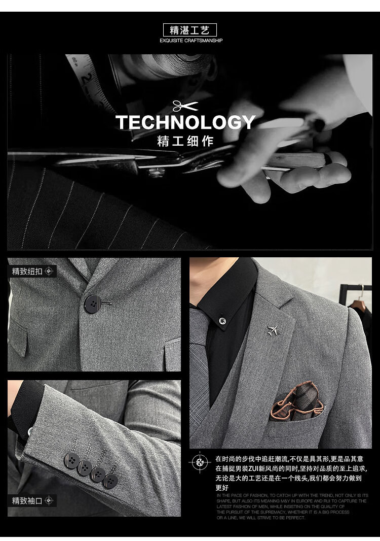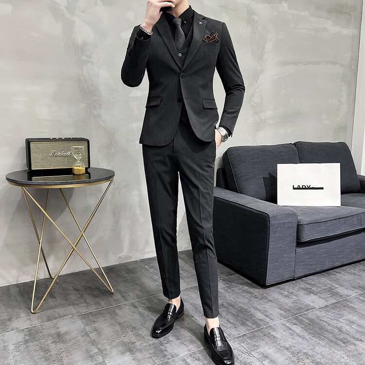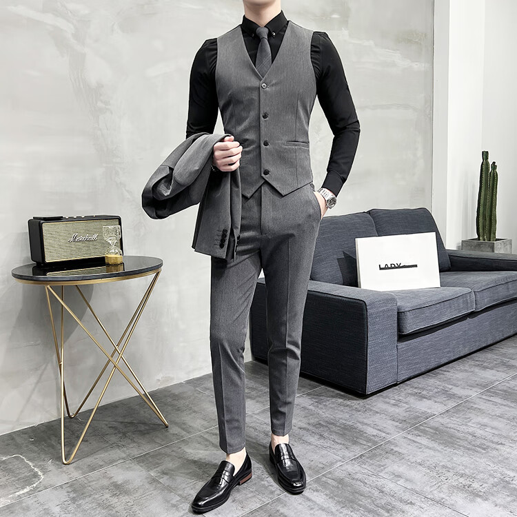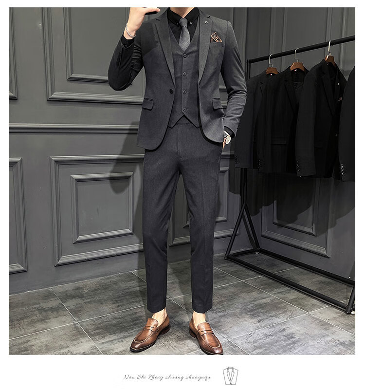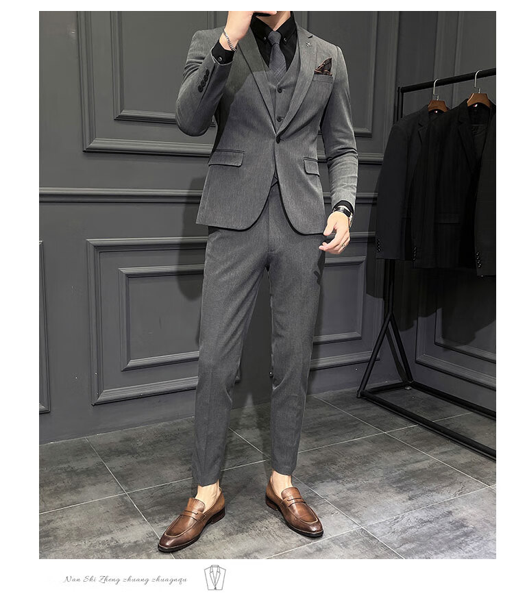ROMON Groom's Suit Men's Business Professional Formal Wedding Dress Casual British Style Slim Suit Men's Jacket Medium Gray Two Buttons Suit Jacket XL 124-134Jin Jin equals 0.5 kg Wear