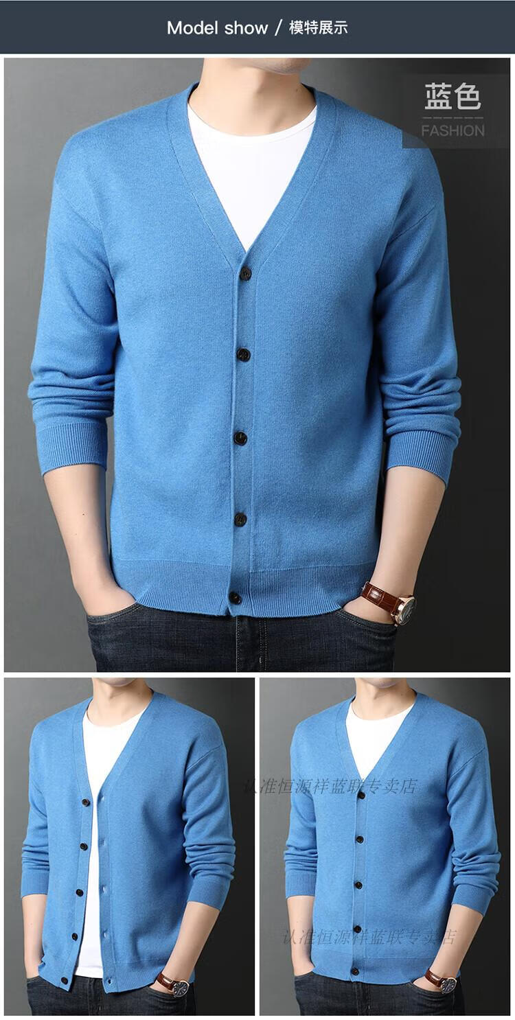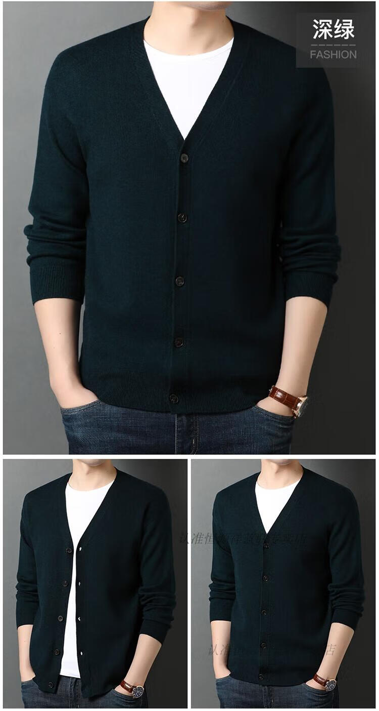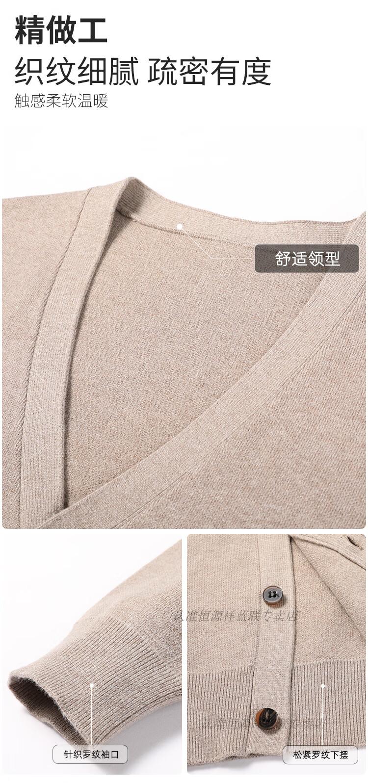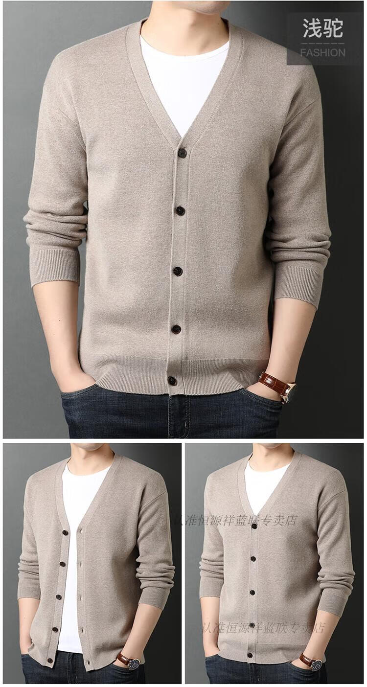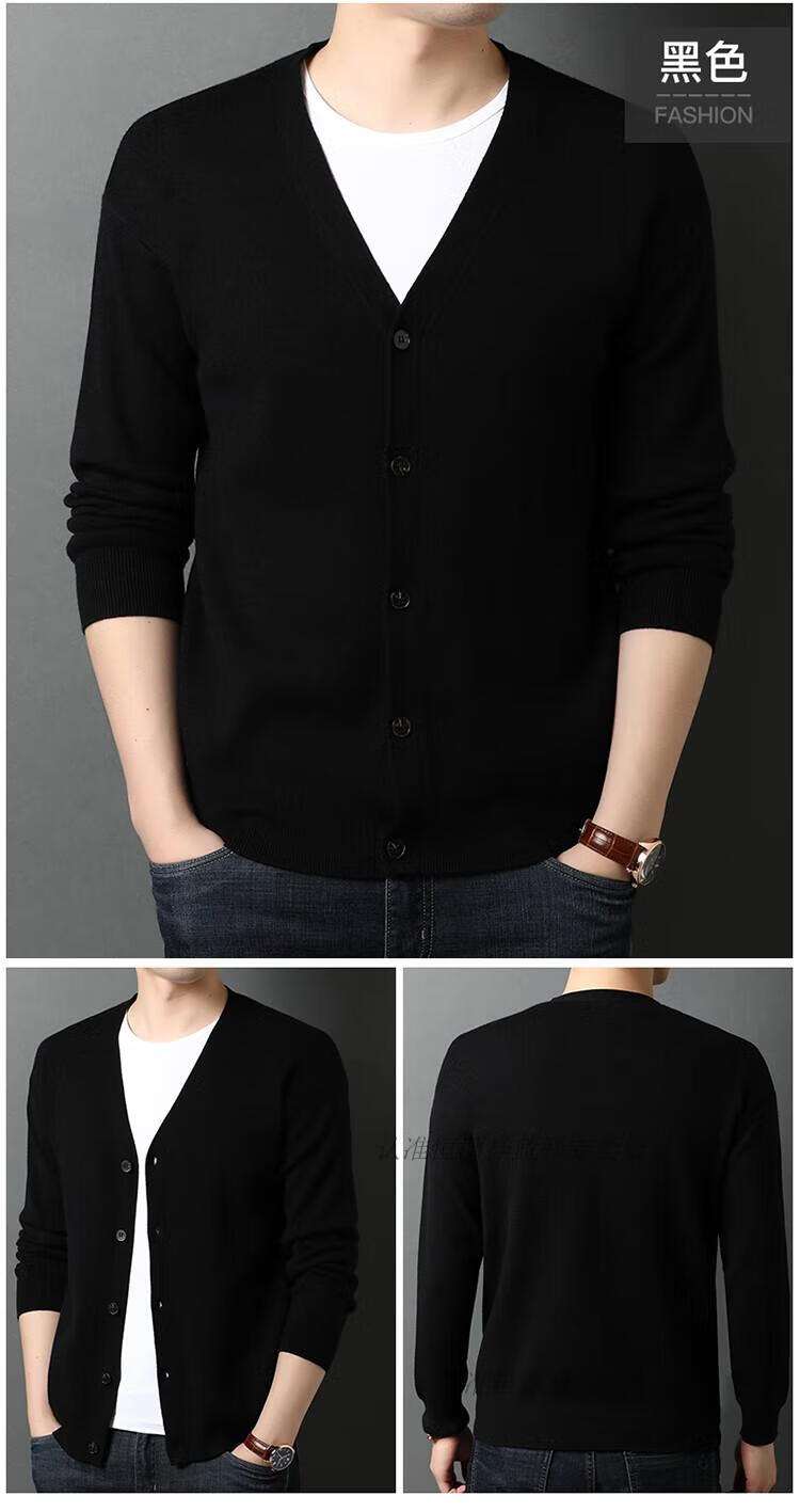 Hengyuanxiang knitted cardigan men's v-neck sweater spring and autumn coat middle-aged men's wool fleece sweater wool outer solid color sweater black comfortable and fashionable M 165 90-120Jin Jin equals 0.5 kg wear