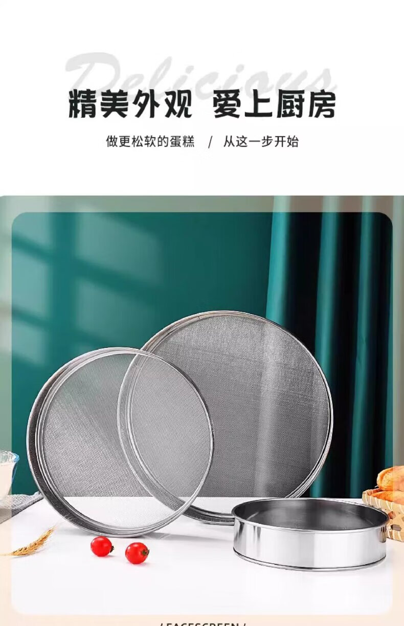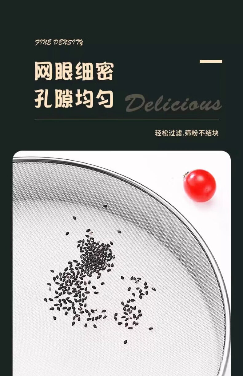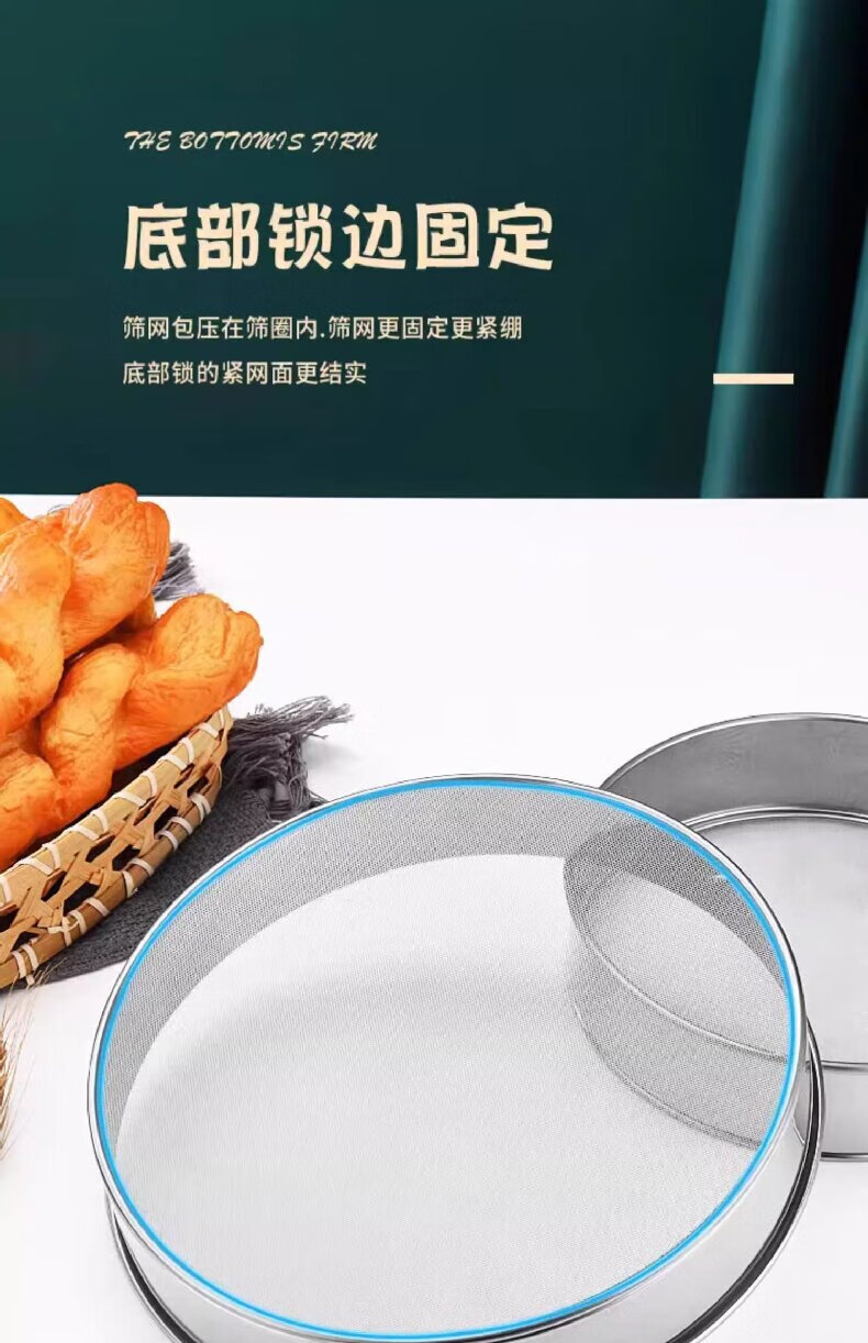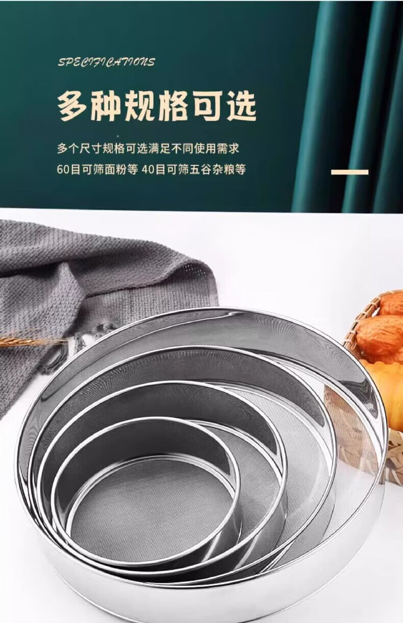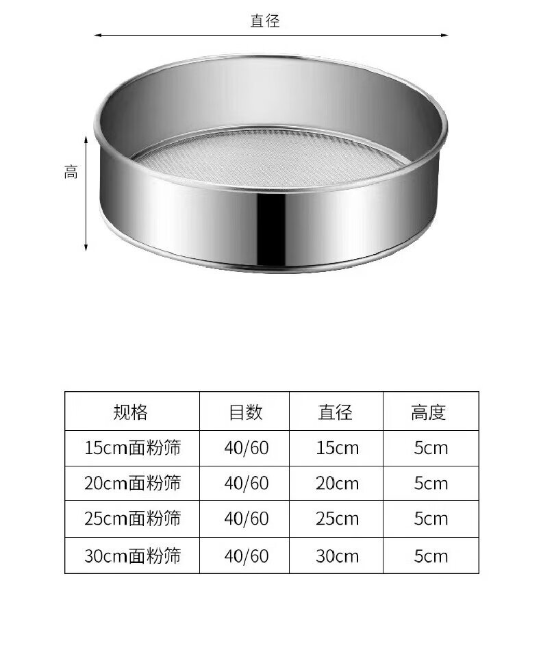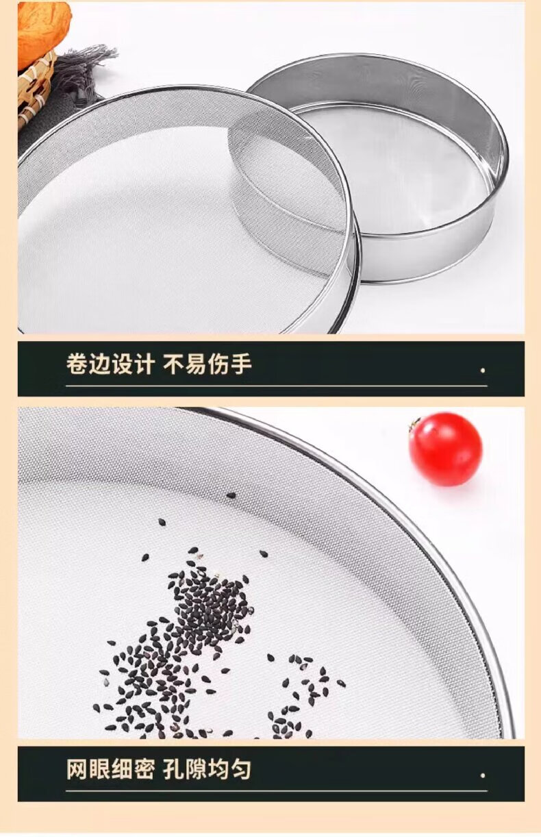 Shouli stainless steel flour sieve filter sieve household baking tool fine sieve for sifting flour ultra-fine sifter stainless steel flour sieve 40 mesh/17.5cm