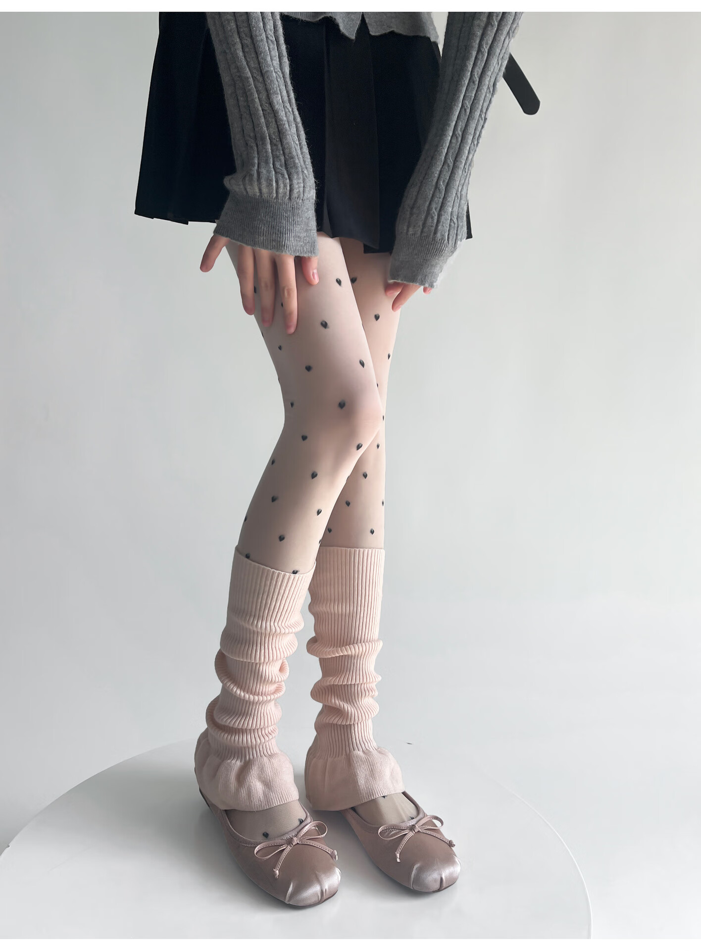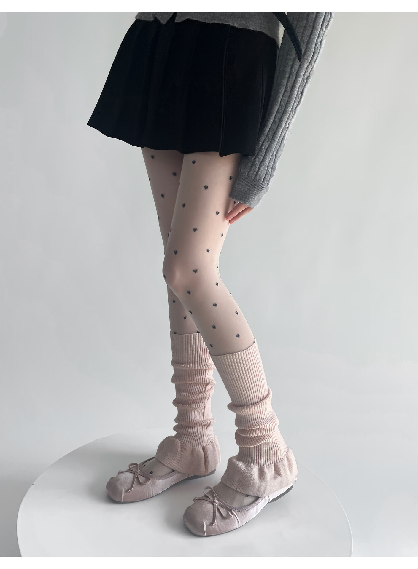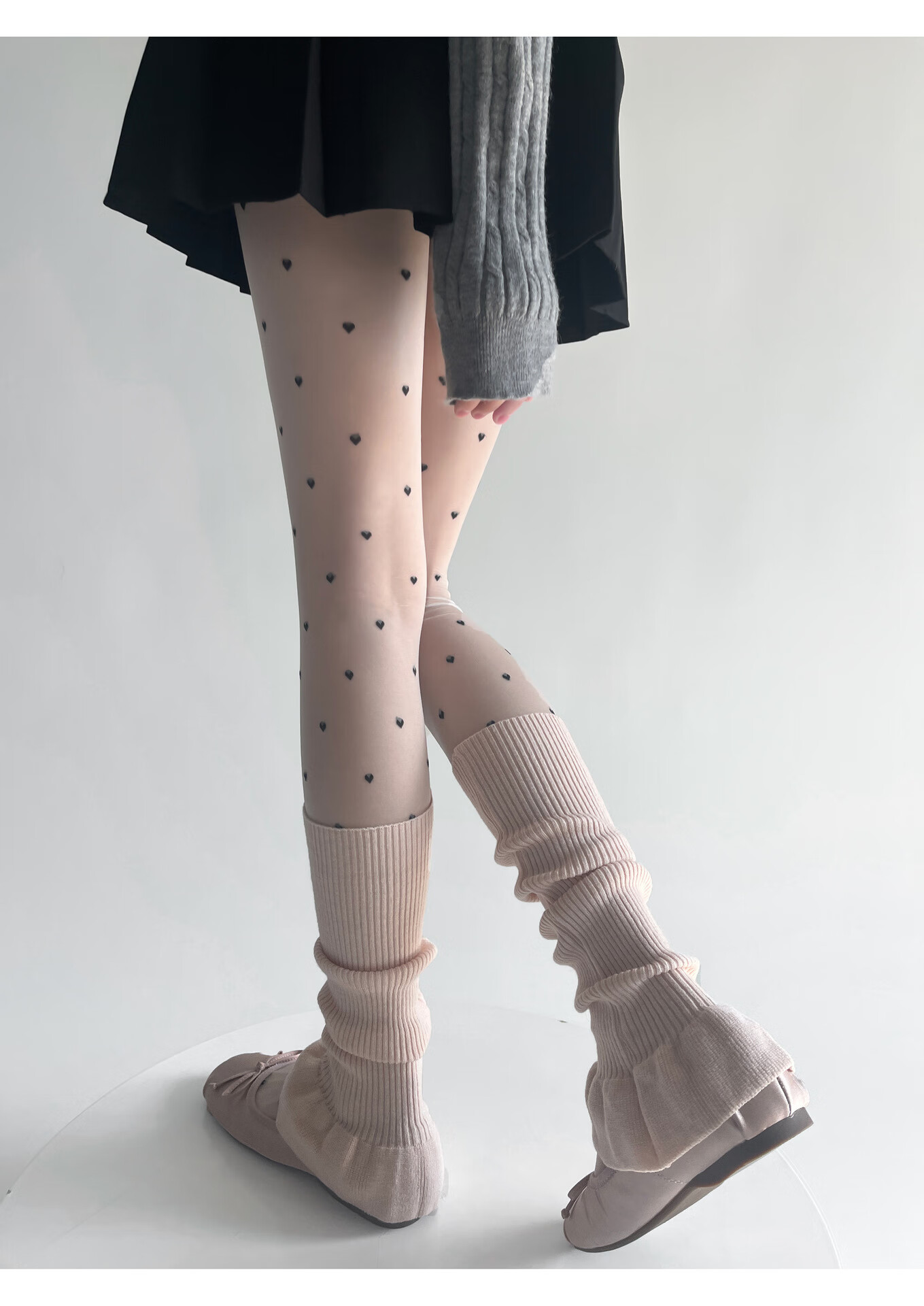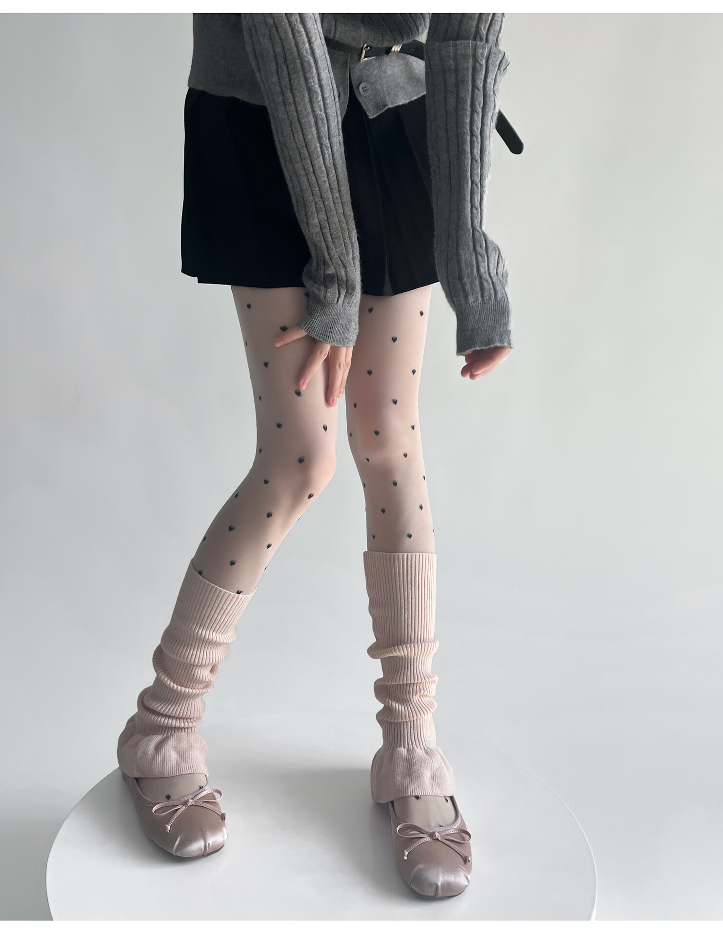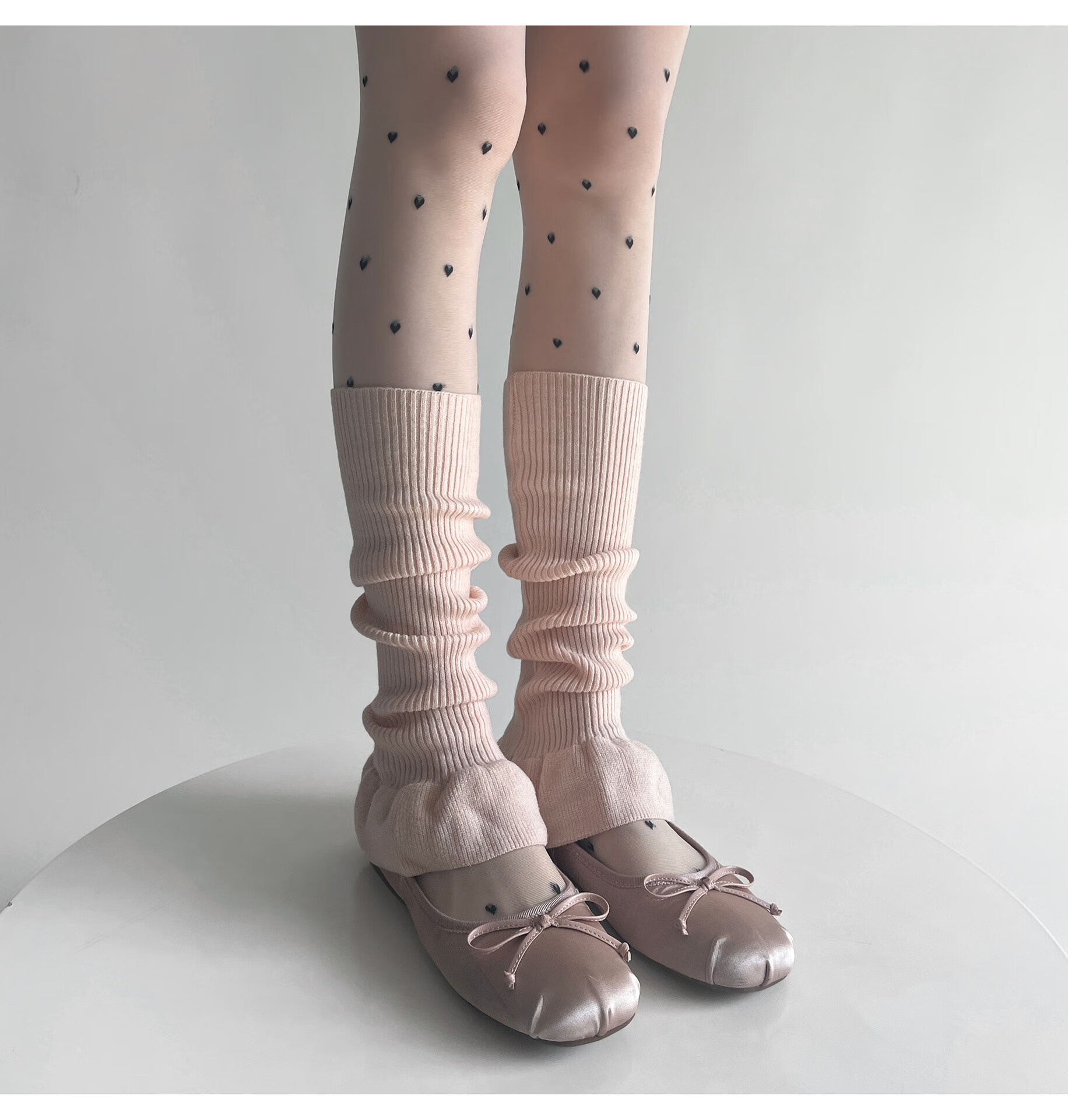 Jiefeitu's new spring and autumn ballet style girl's lace calf socks, versatile pile socks, horn gray leg covers, pink, one size fits all A112