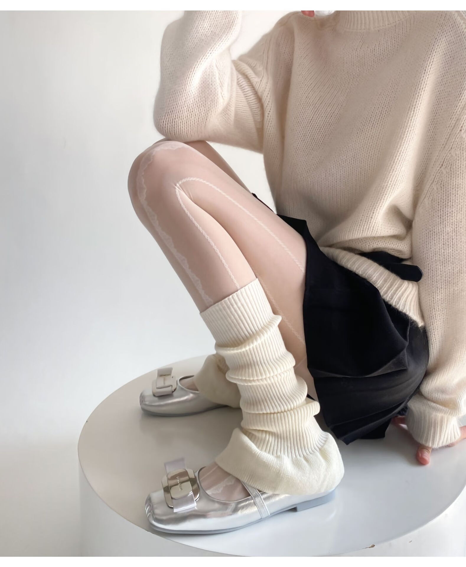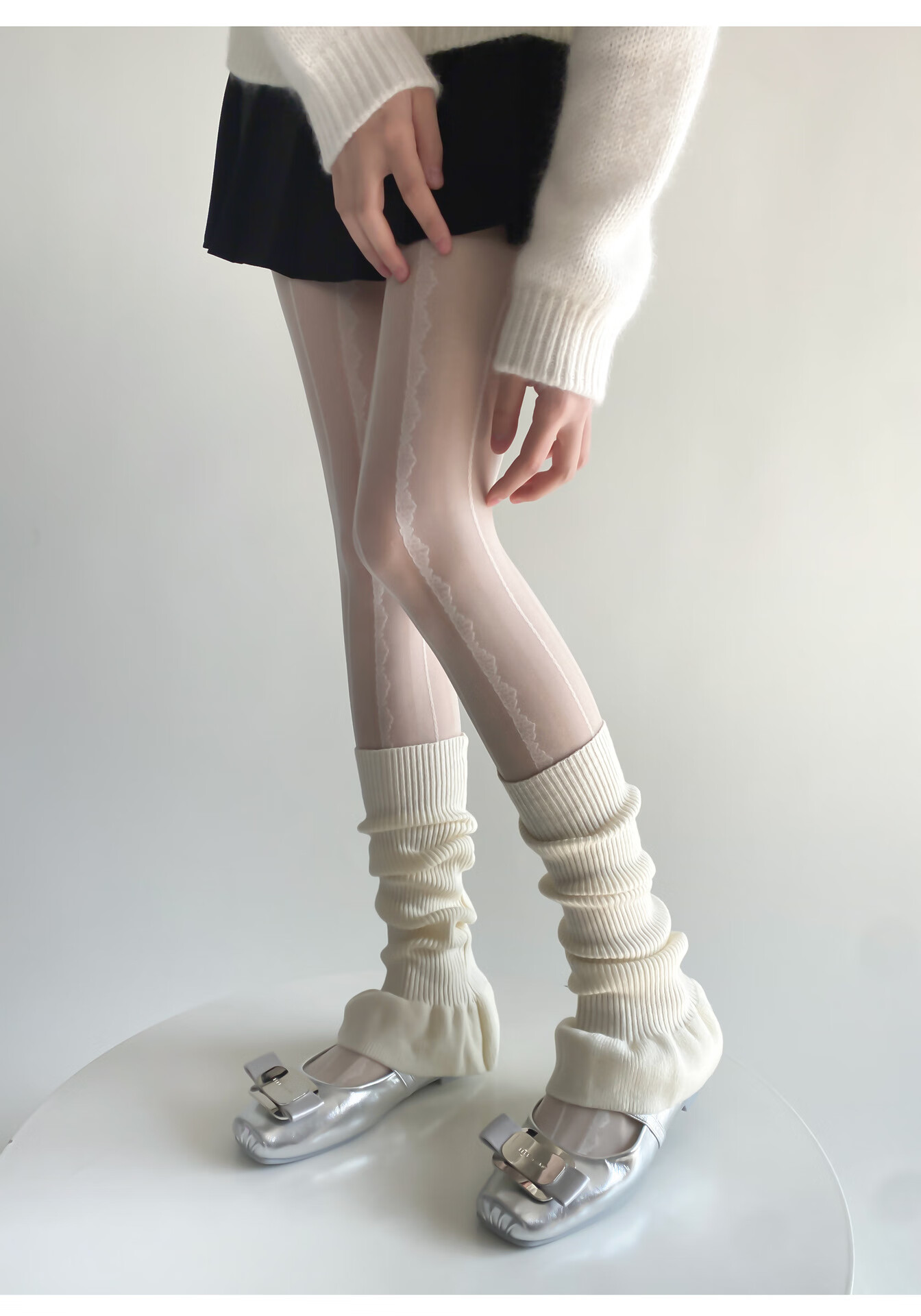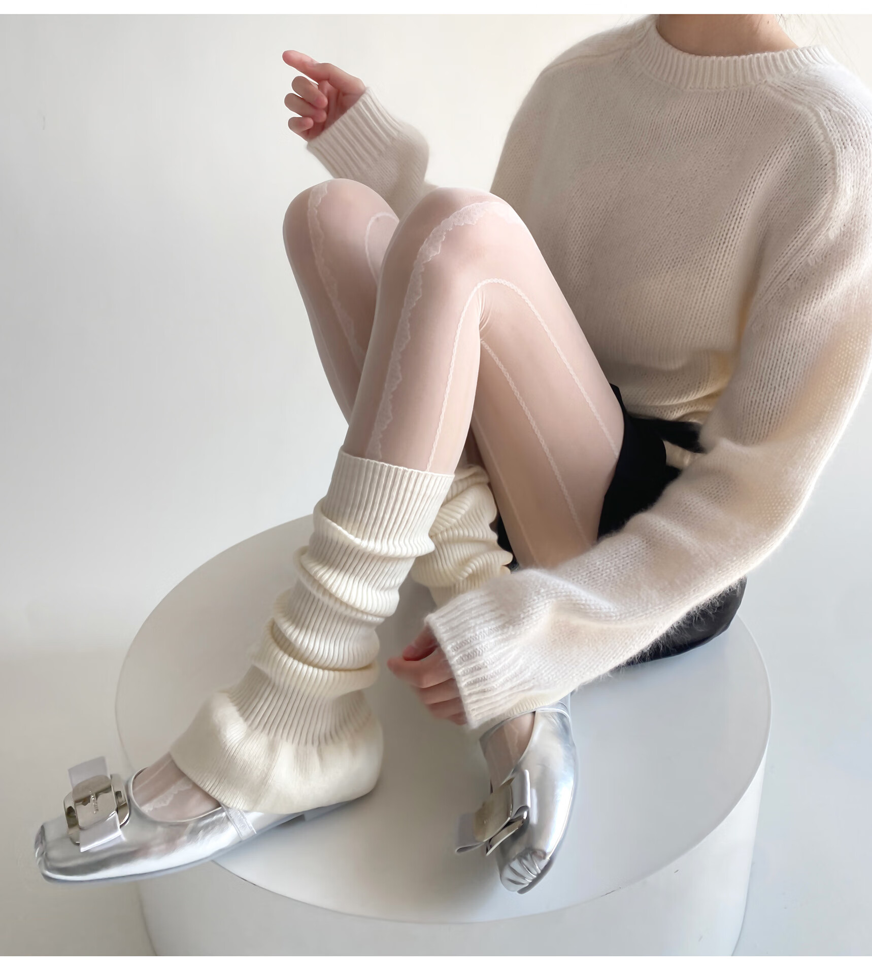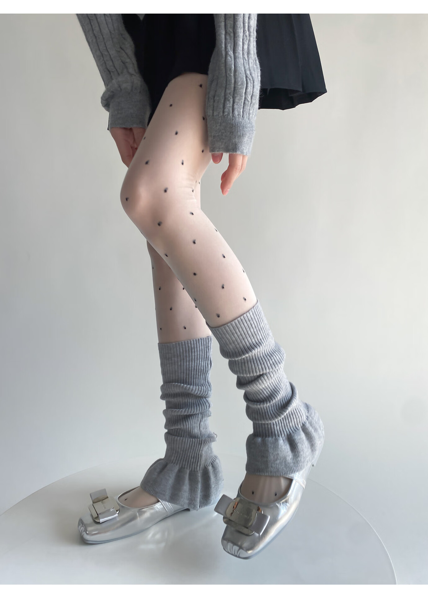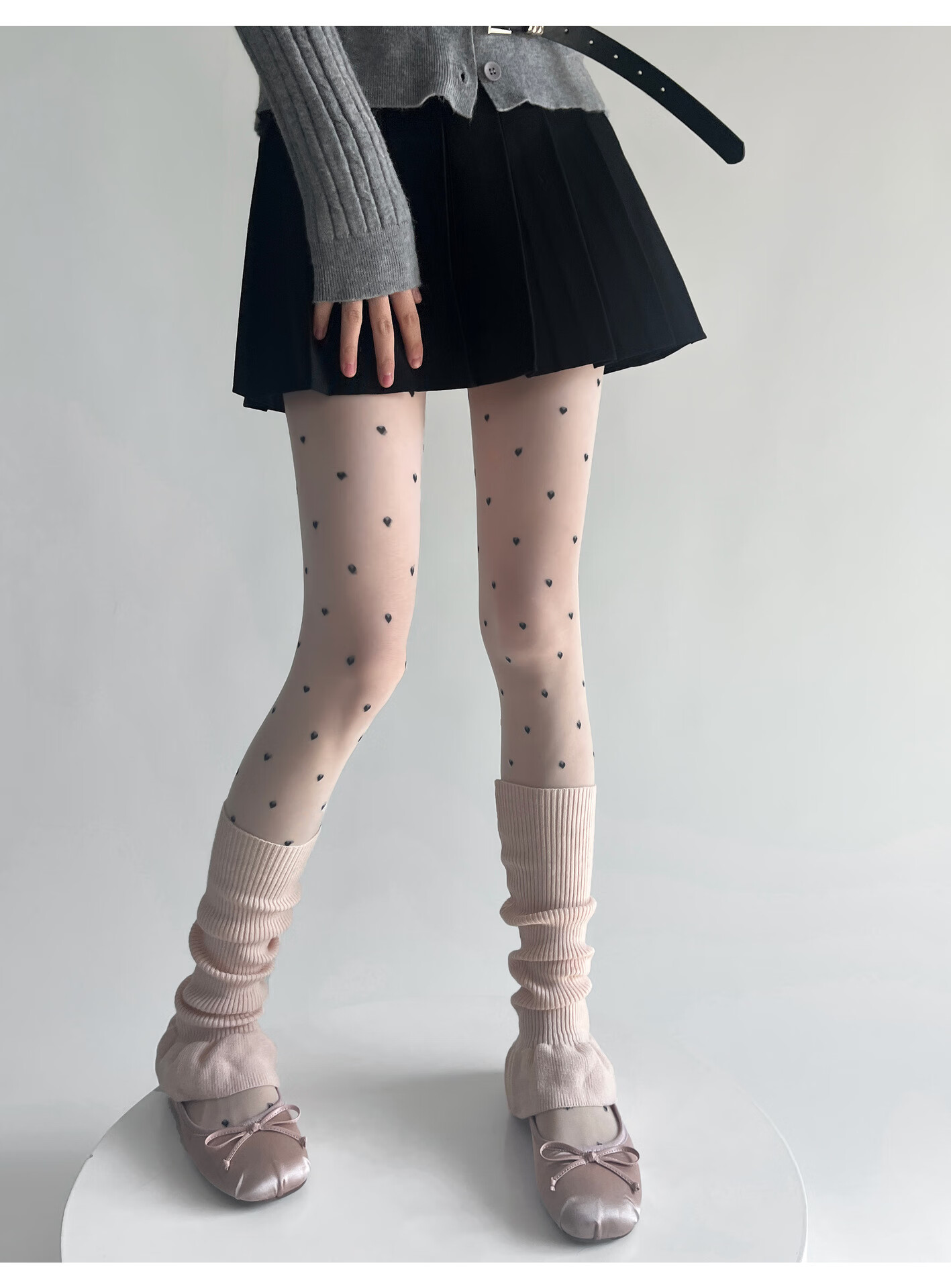 Jiefeitu's new spring and autumn ballet style girl's lace calf socks, versatile pile socks, horn gray leg covers, pink, one size fits all A112