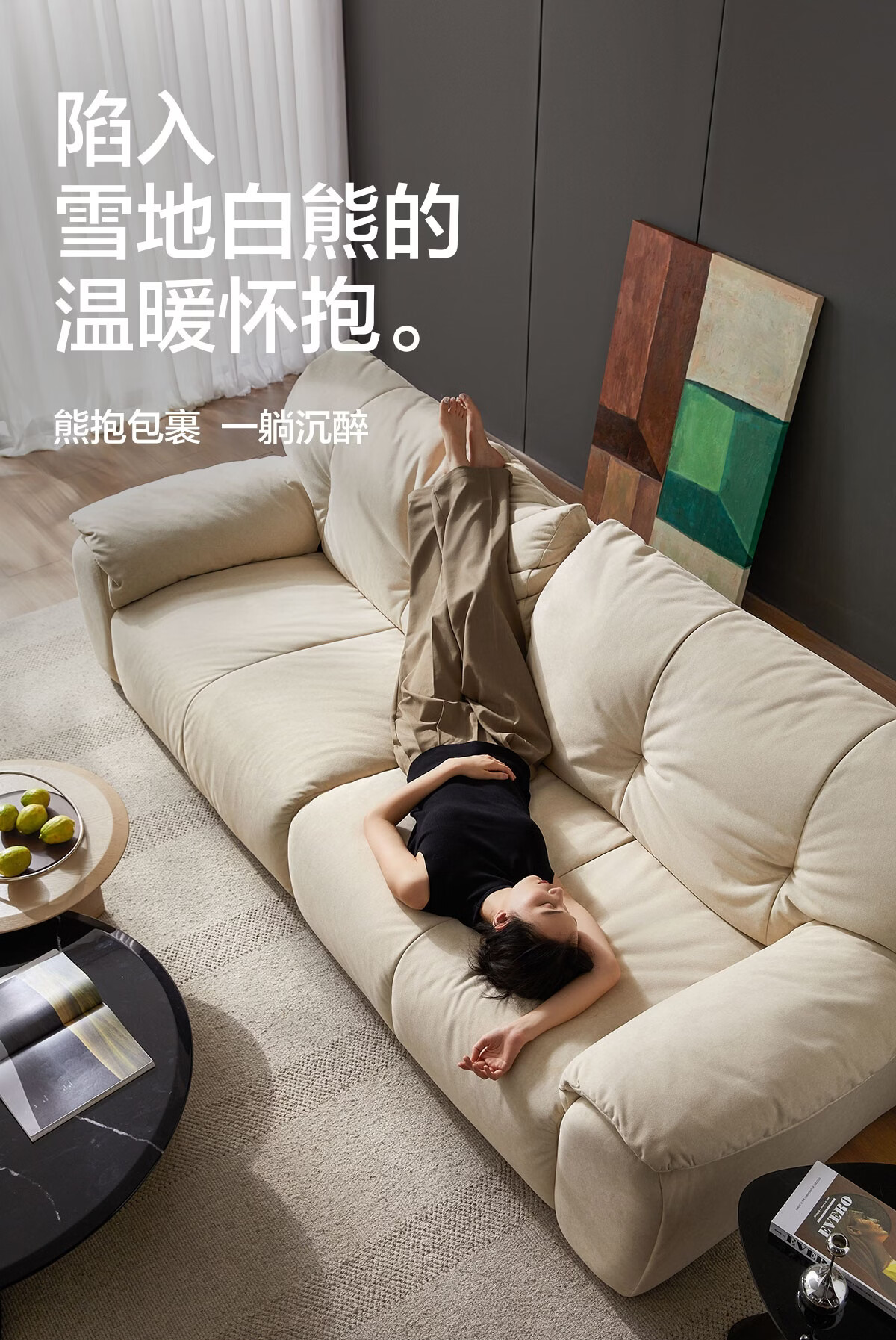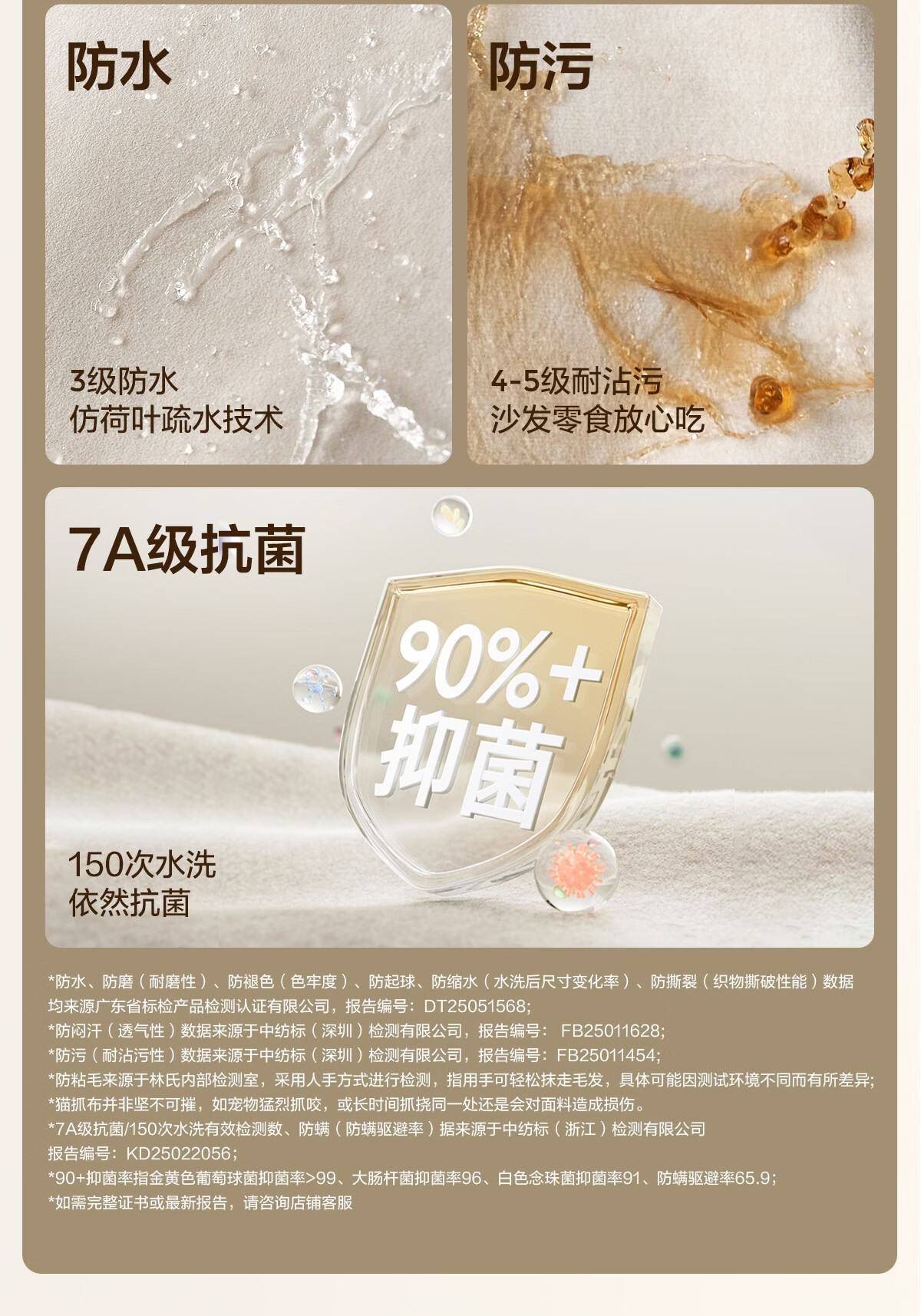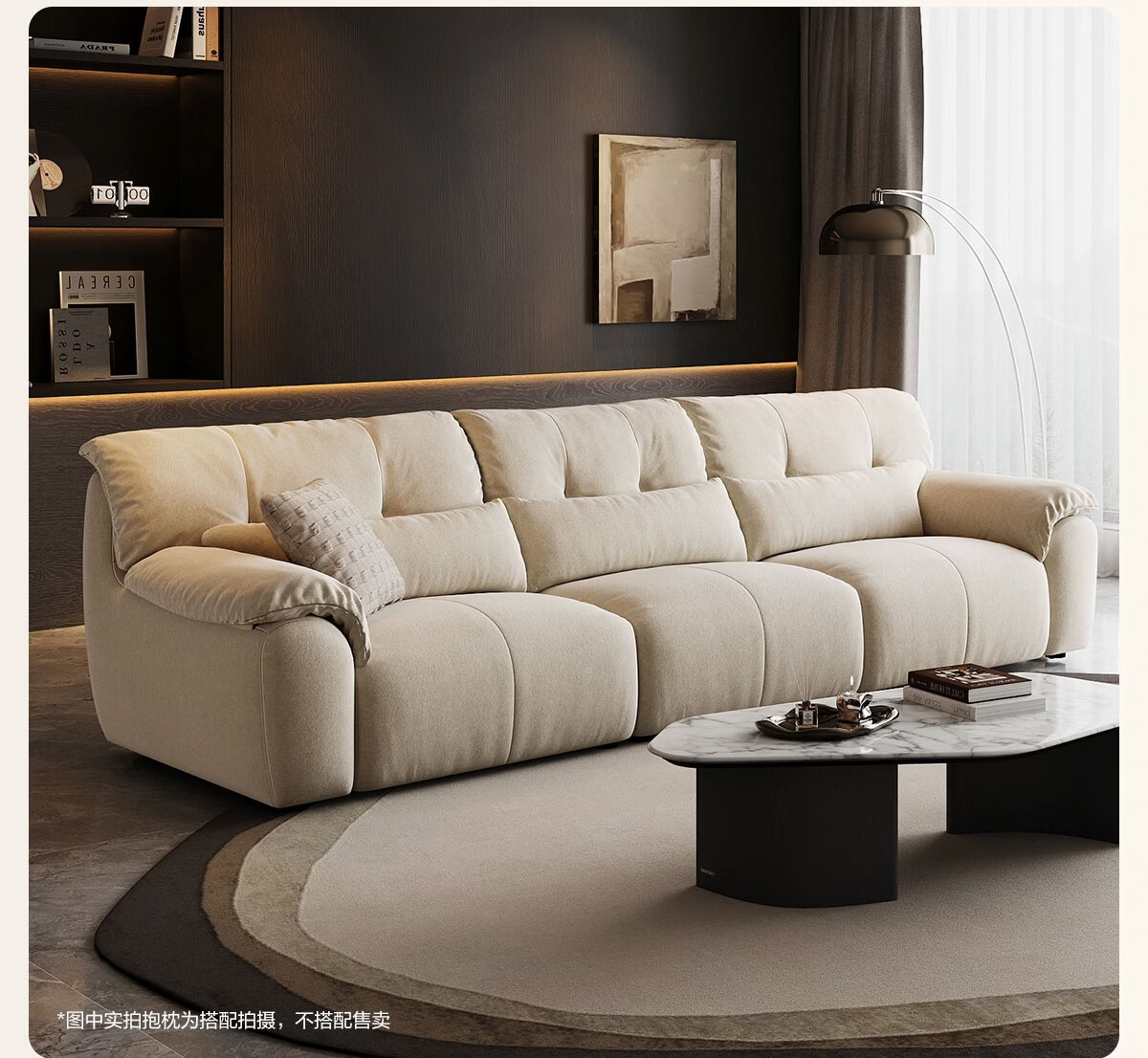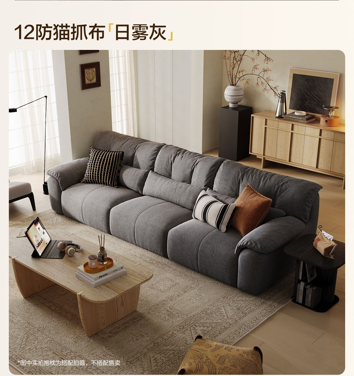 Lin's home sofa living room straight row 2025 new modern simple removable cat scratch cloth cream style sofa BS636 12 anti-bacterial cat scratch cloth 2.72 meters | Fritillaria white