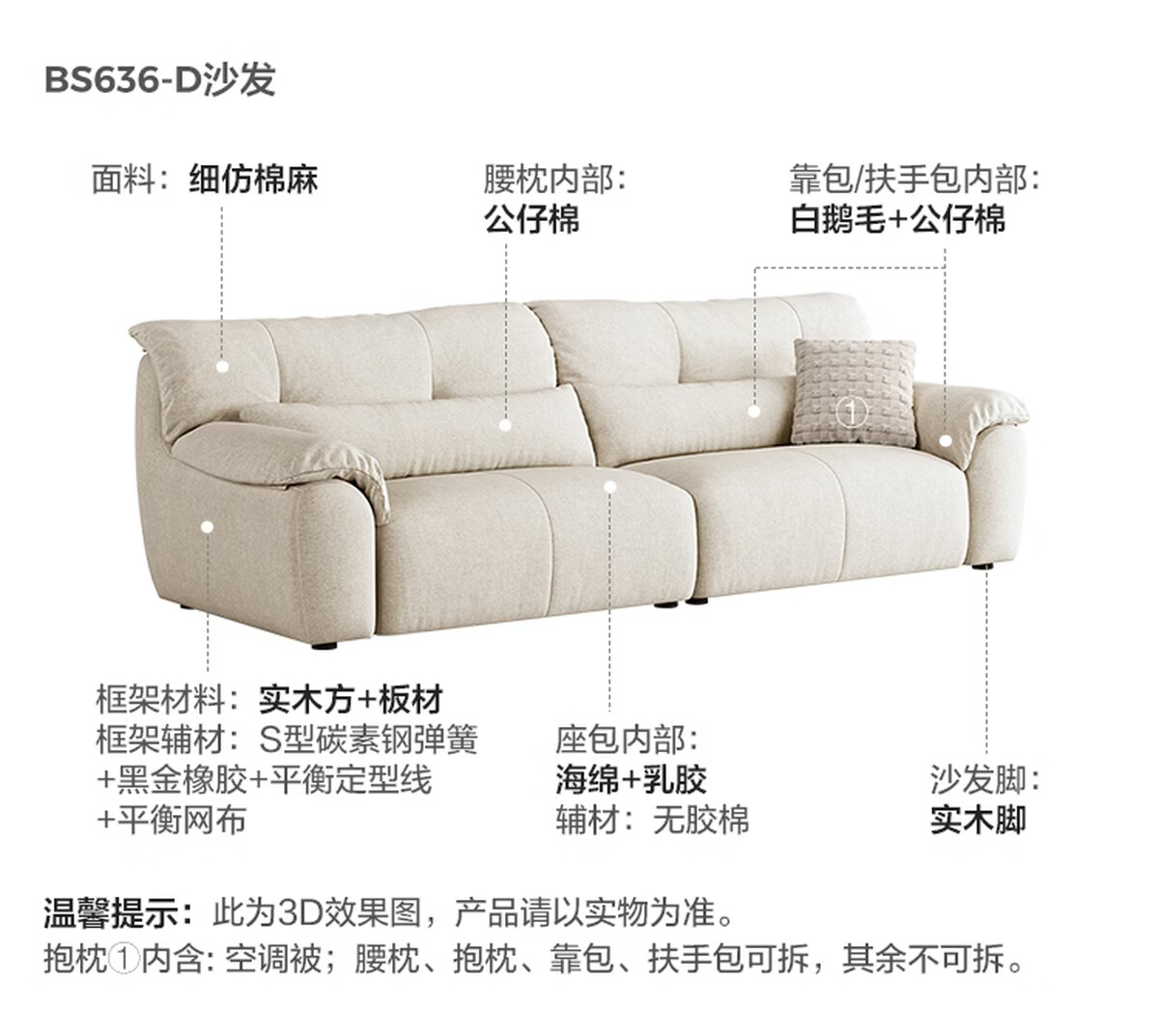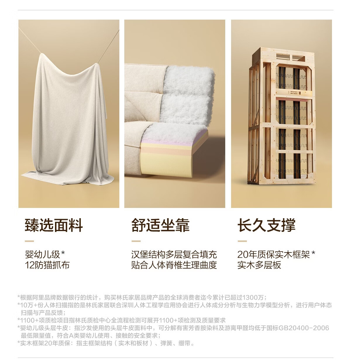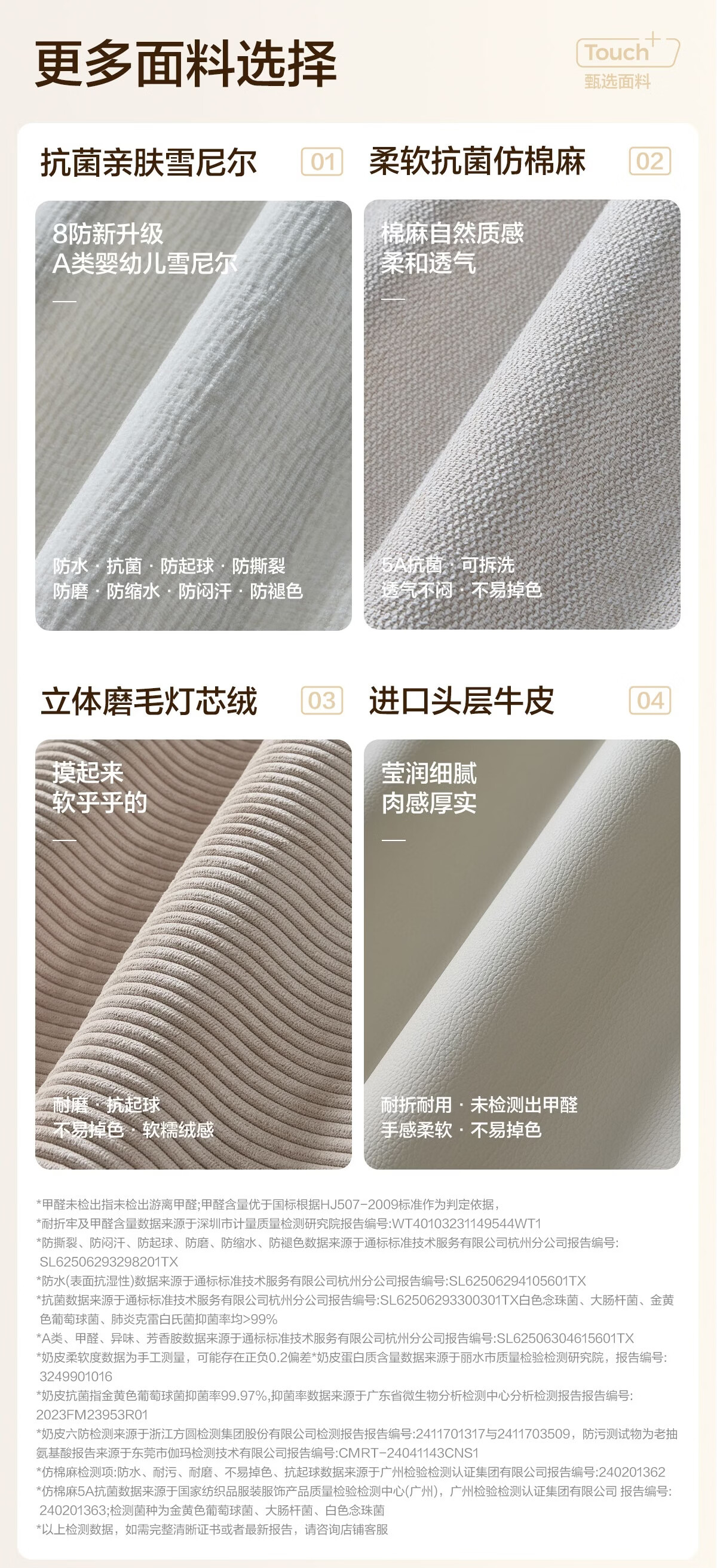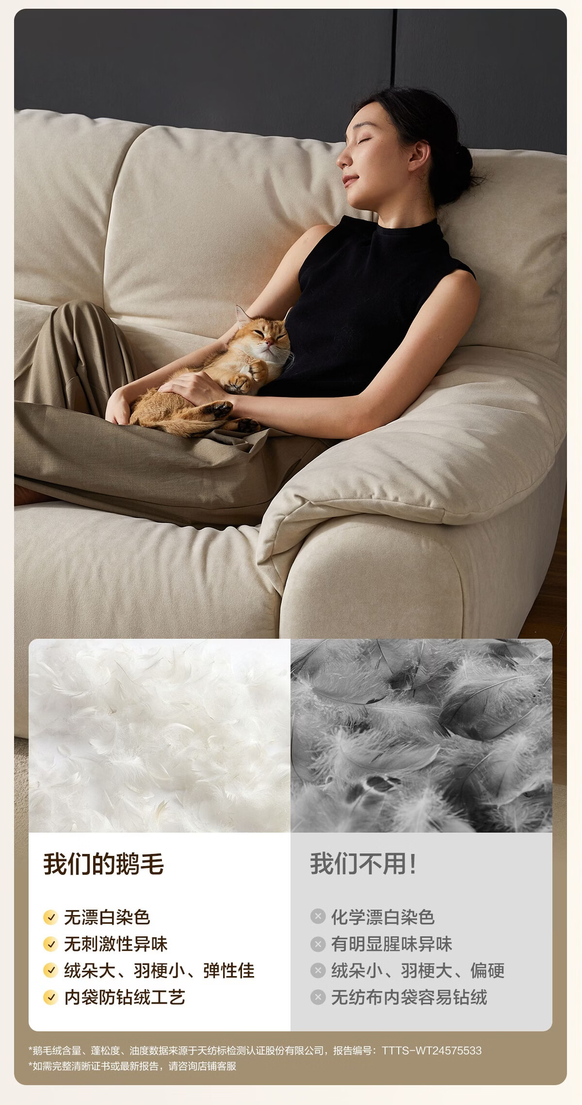 Lin's home sofa living room straight row 2025 new modern simple removable cat scratch cloth cream style sofa BS636 12 anti-bacterial cat scratch cloth 2.72 meters | Fritillaria white