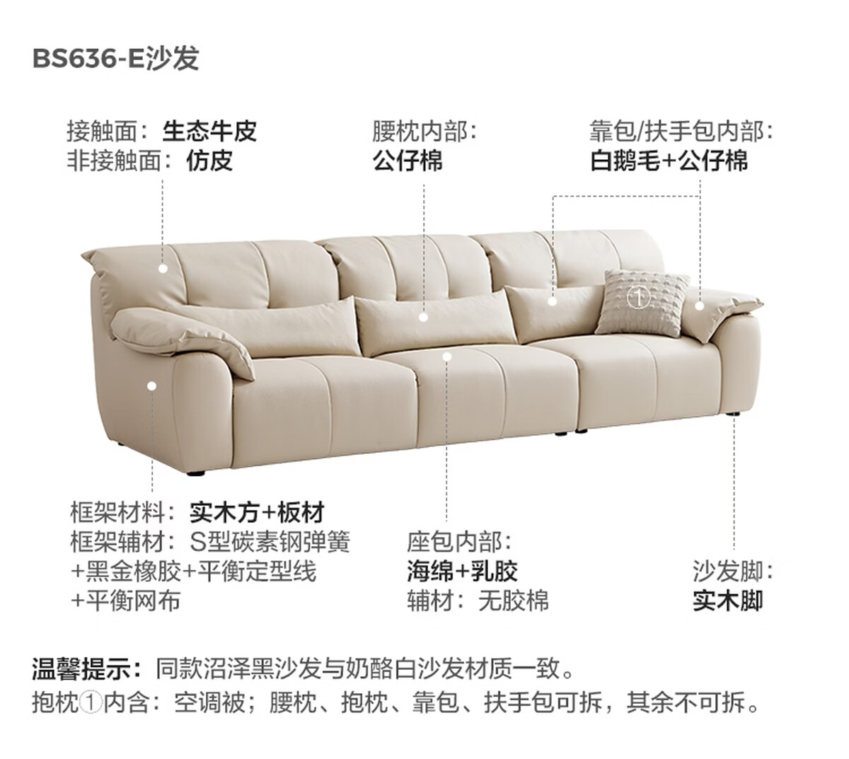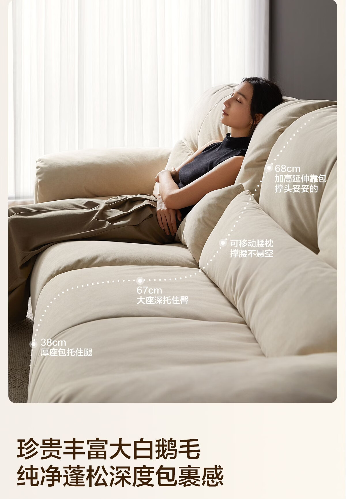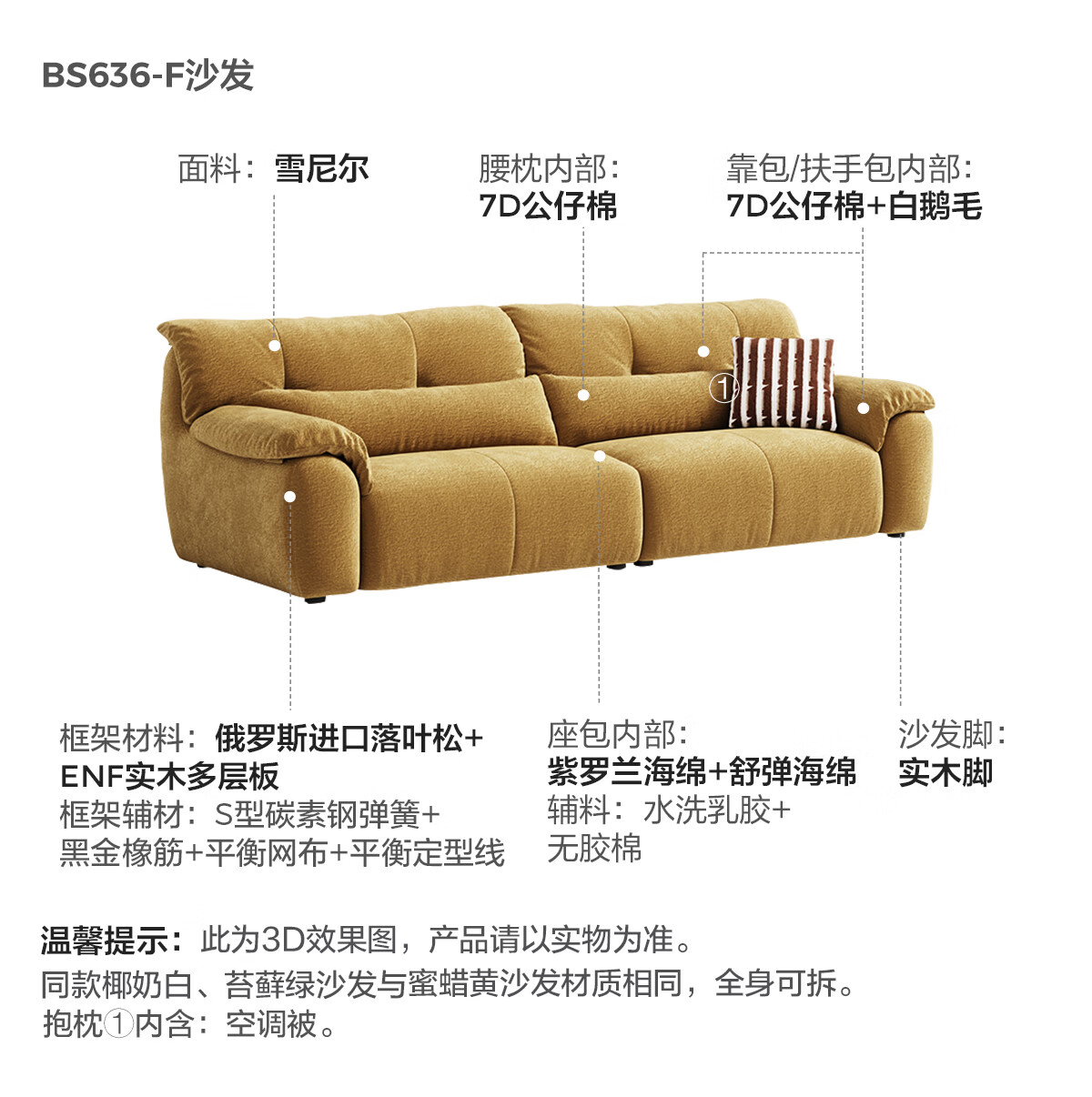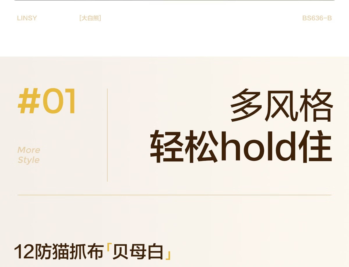 Lin's home sofa living room straight row 2025 new modern simple removable cat scratch cloth cream style sofa BS636 12 anti-bacterial cat scratch cloth 2.72 meters | Fritillaria white