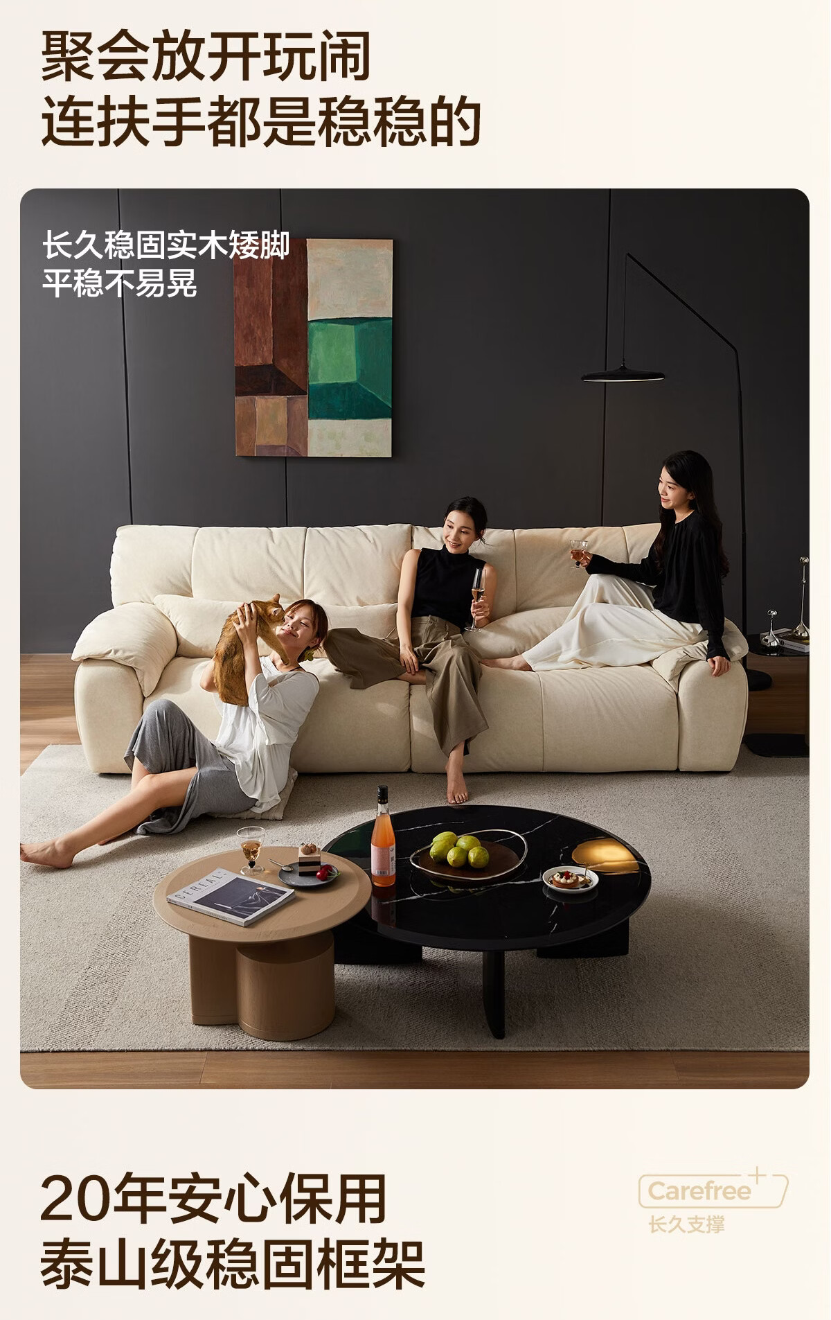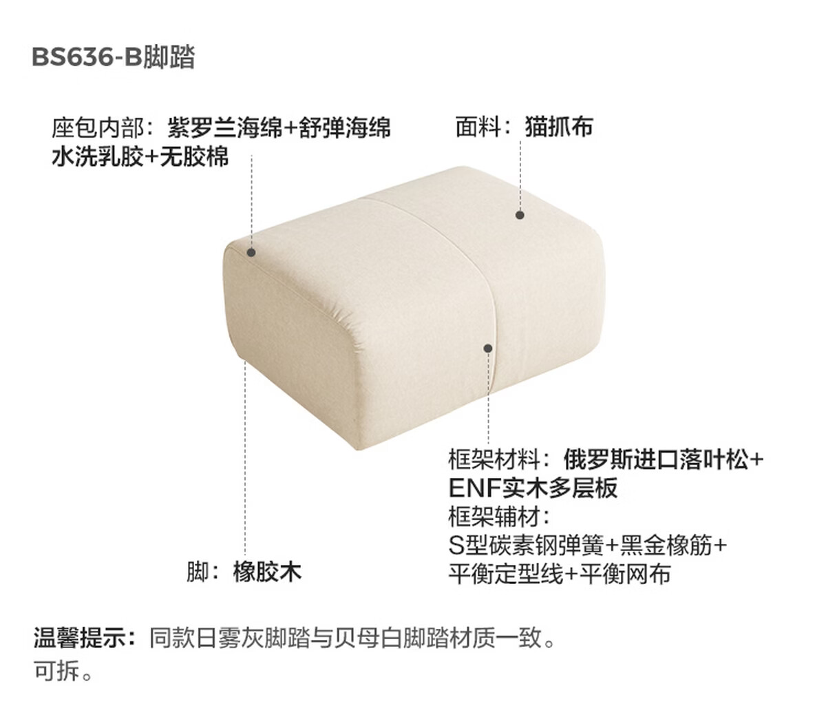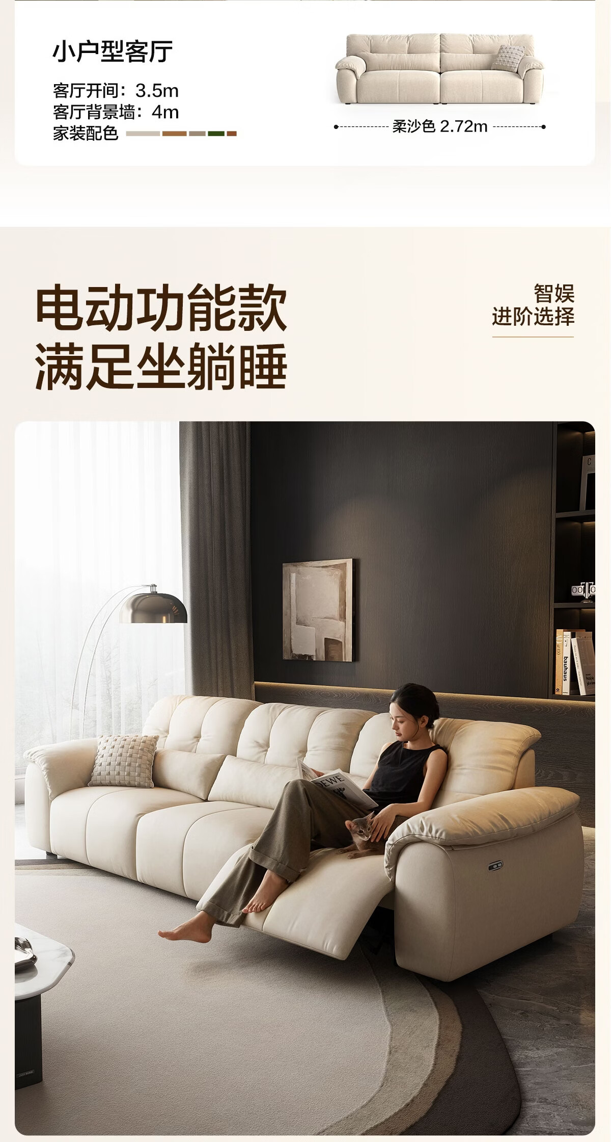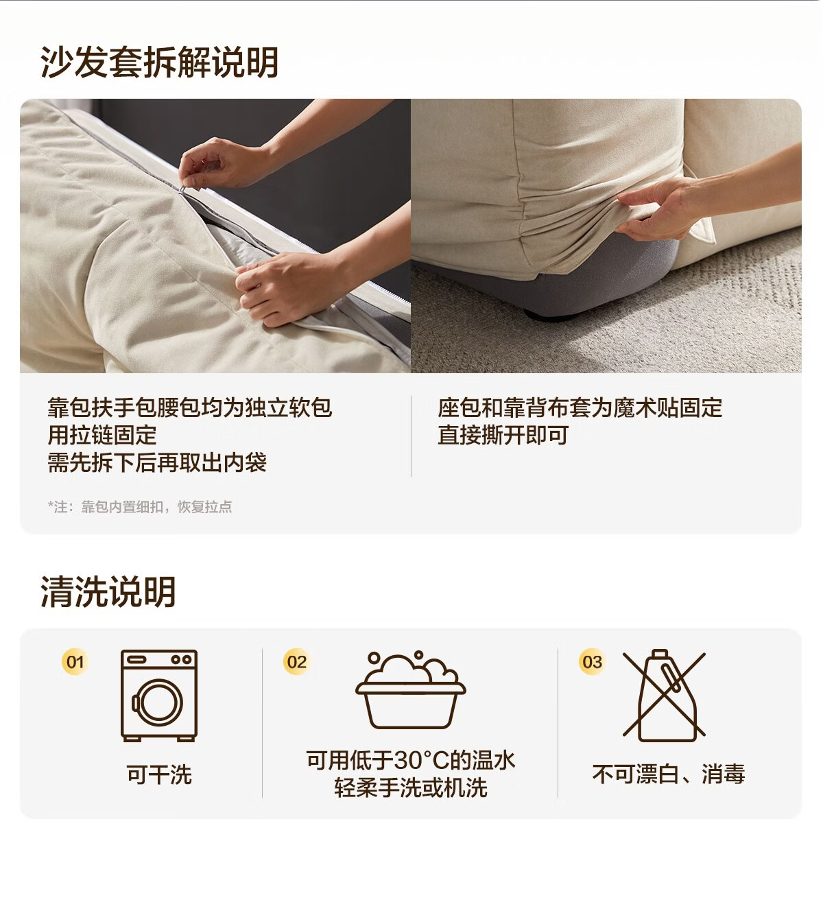 Lin's home sofa living room straight row 2025 new modern simple removable cat scratch cloth cream style sofa BS636 12 anti-bacterial cat scratch cloth 2.72 meters | Fritillaria white