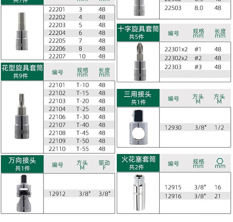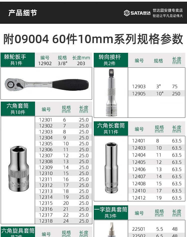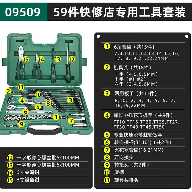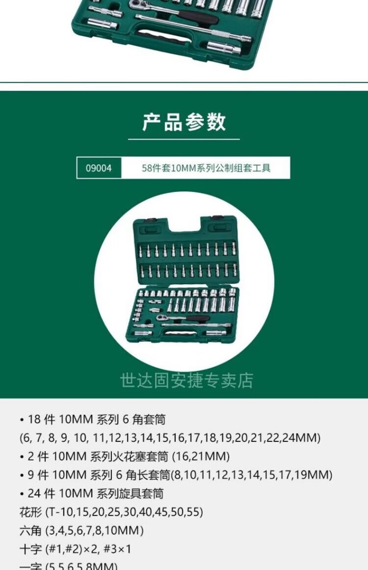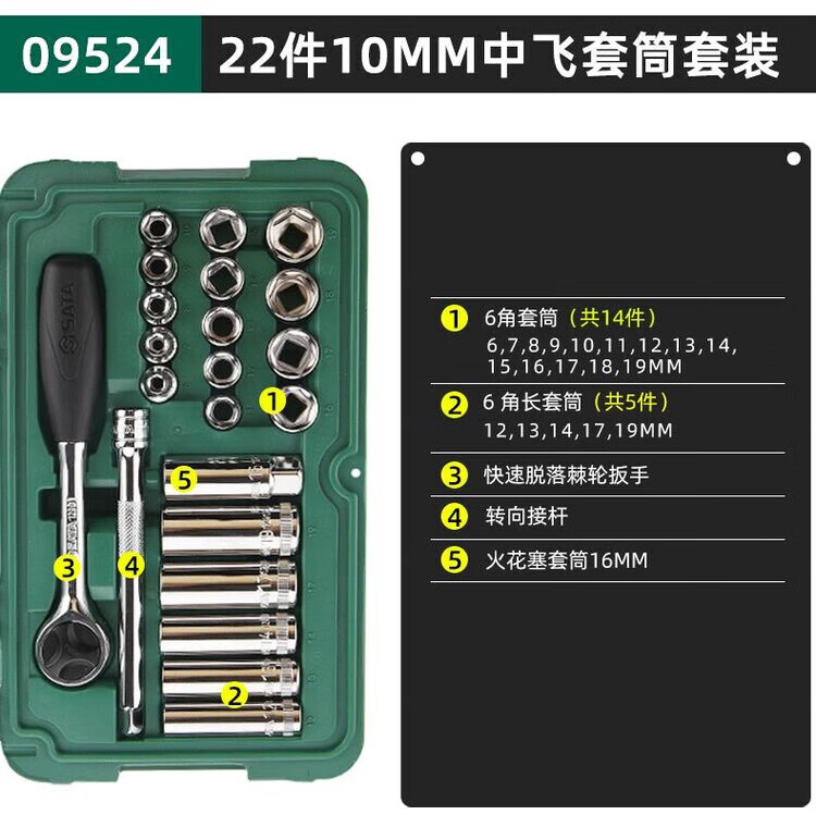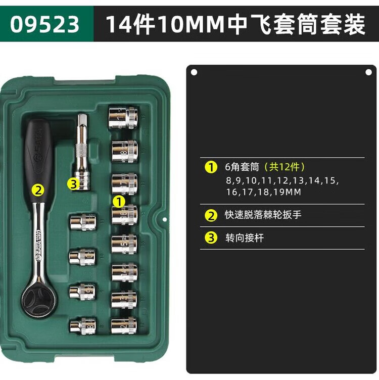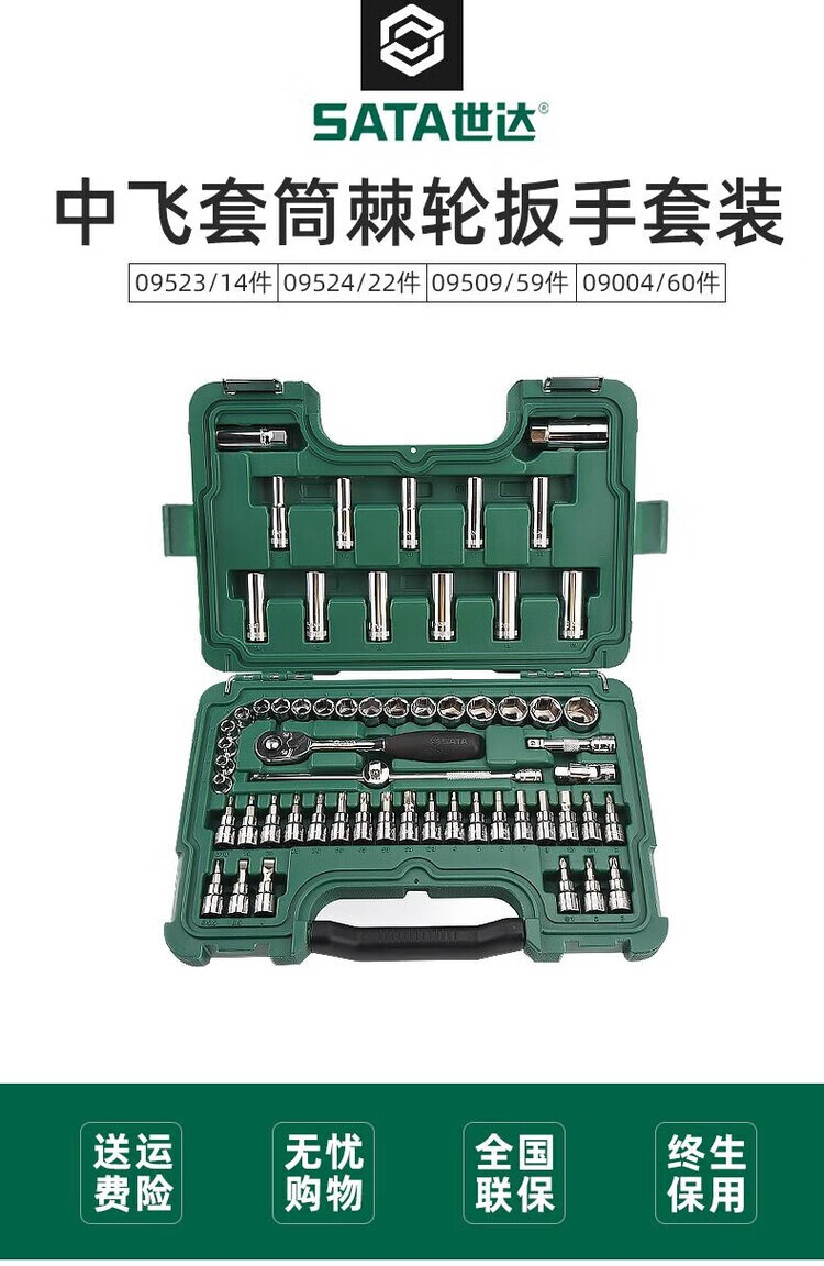 SATA (SATA) Zhongfei socket set combination number fast ratchet wrench car repair tool set wrench 09004 09004/58 pieces Zhongfei 10mm series set