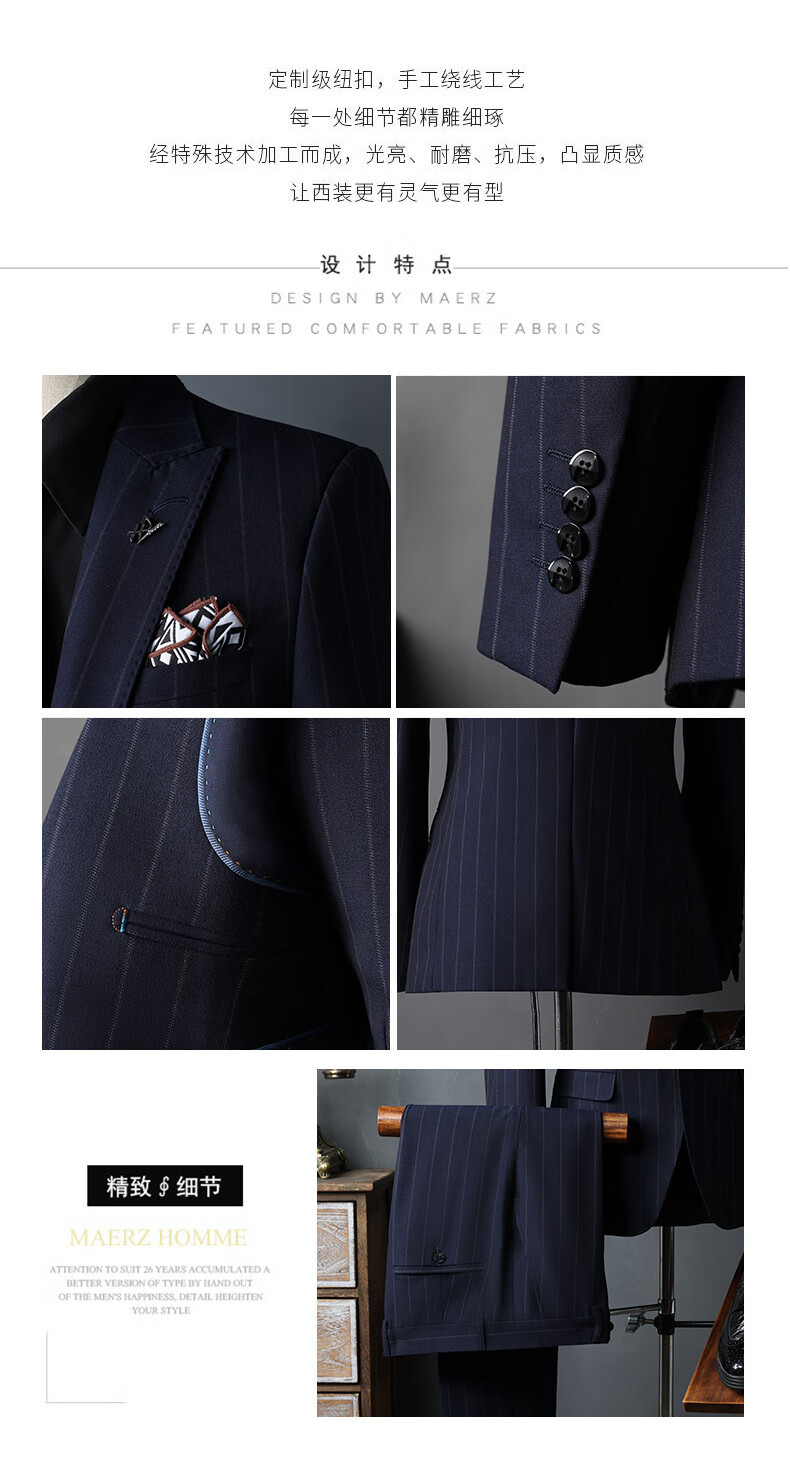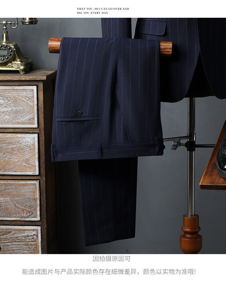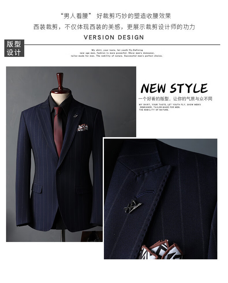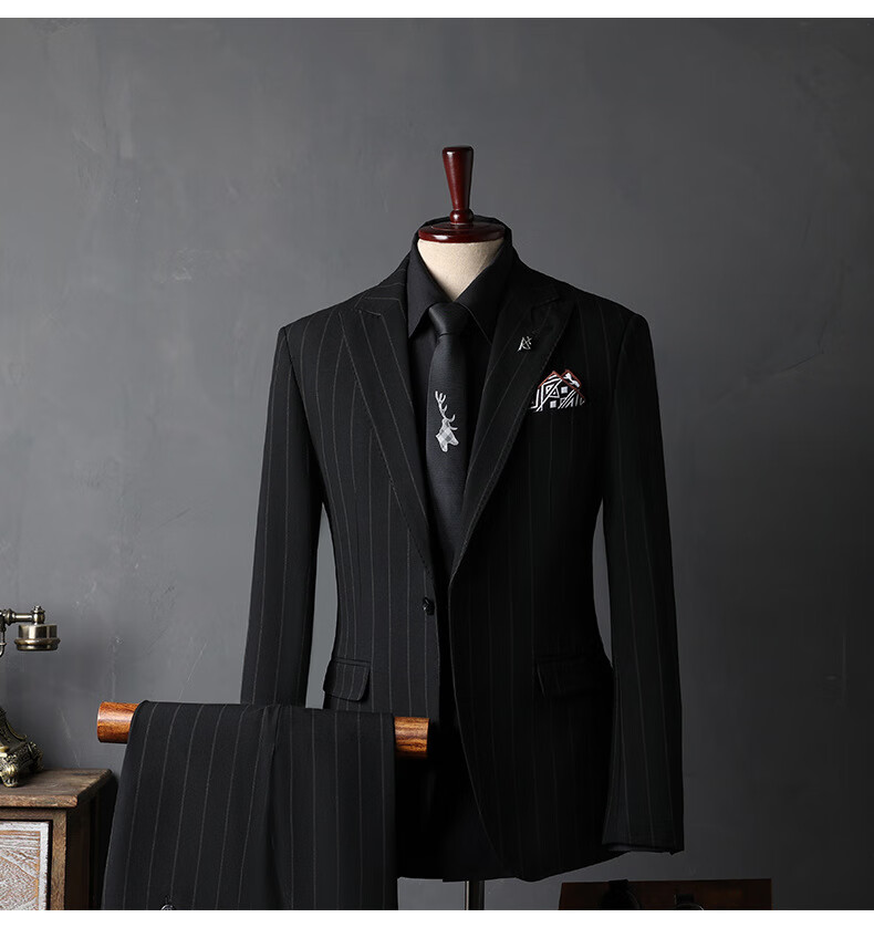 Pierre Cardin Striped Suit Men's Full Groom's Suit British Style Groomsmen's Clothes Business Formal Wedding Suit Men's Black (Suit+Vest+Trousers) S 46(80-100Jin Jin is equal to 0.5 kg)
