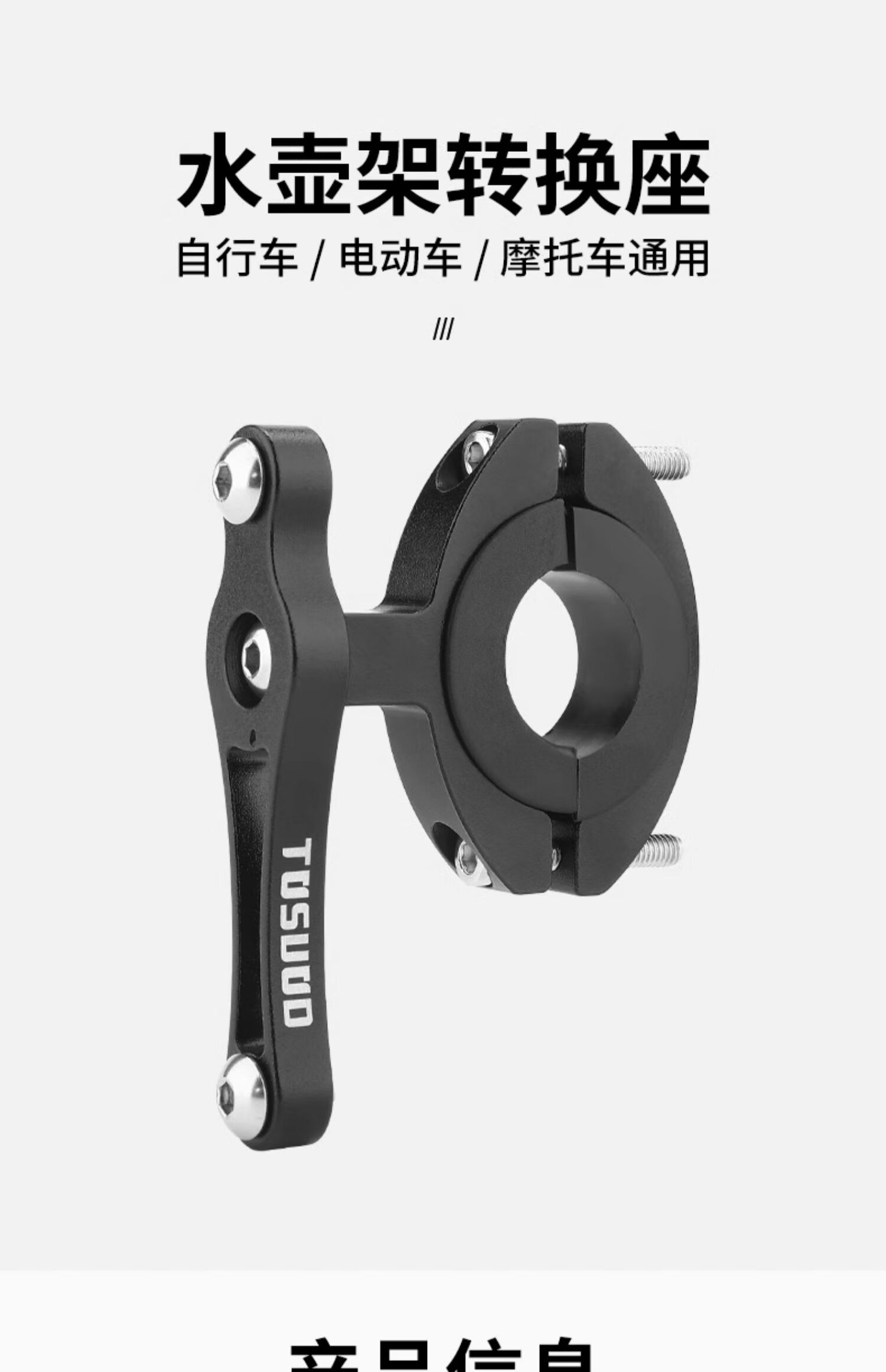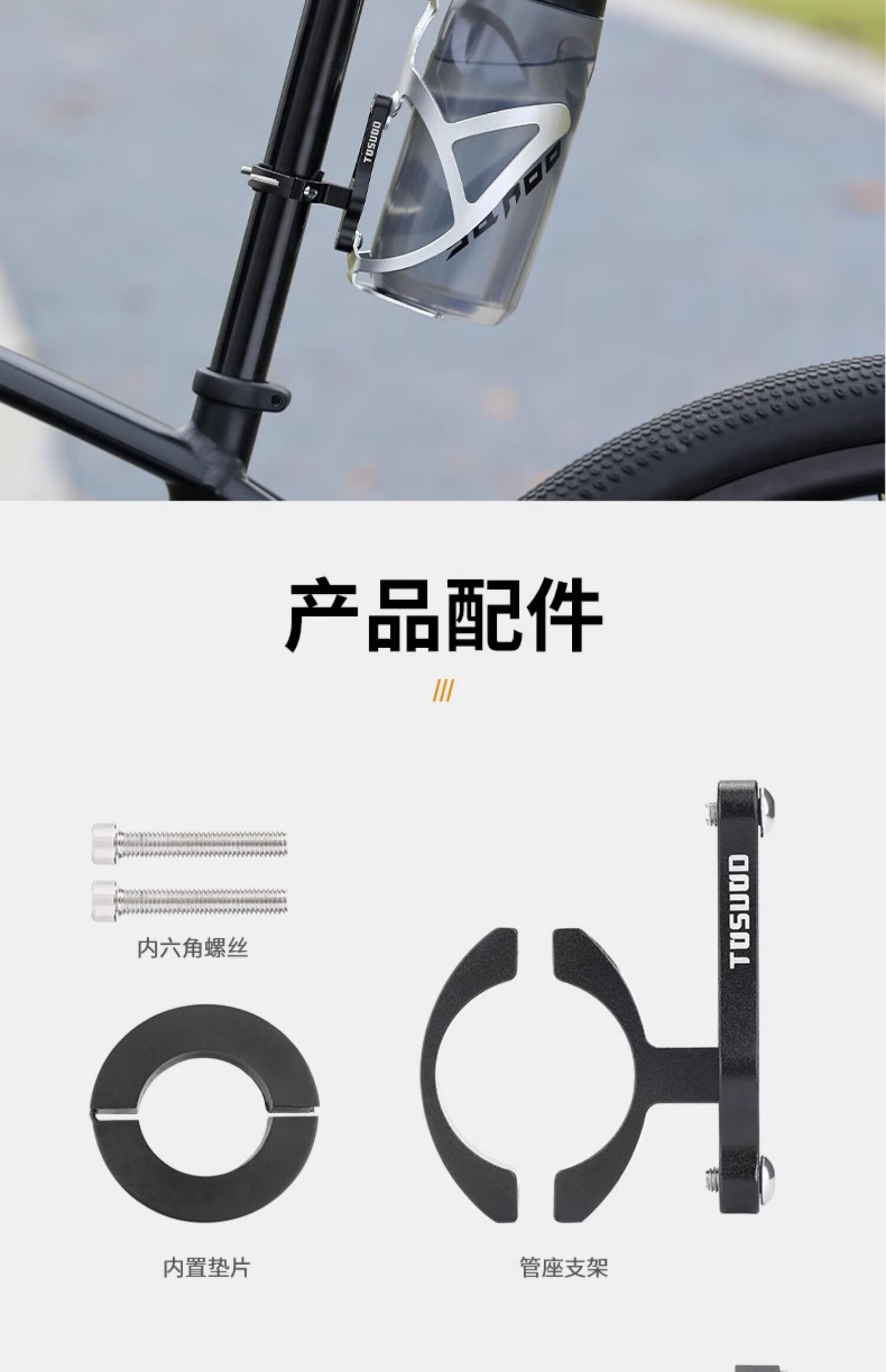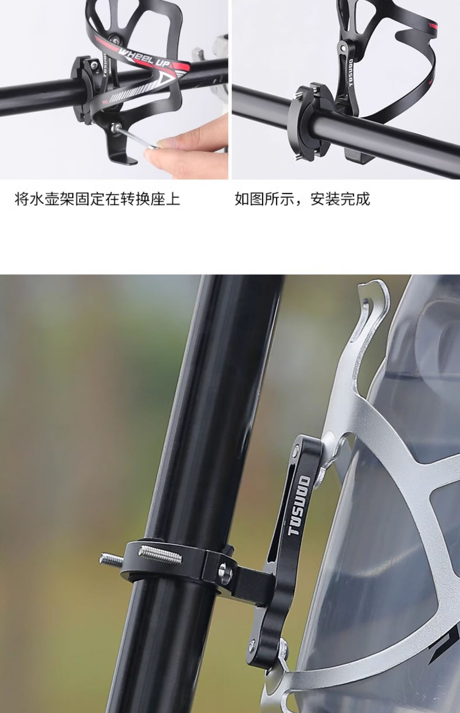 Captain Tas Bicycle Water Bottle Cage Converter Seat Road Mountain Bike Aluminum Alloy Water Cup Holder Outdoor Cycling Equipment Accessories Conversion Base - Black