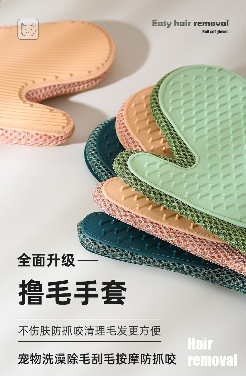 Necessary pet petting gloves for cat petting, cat comb to remove floating hair, bathing dog hair brush, carpet cat hair stick stick, combination hot sale, no burnt green + cream apricot powder, no Specifications