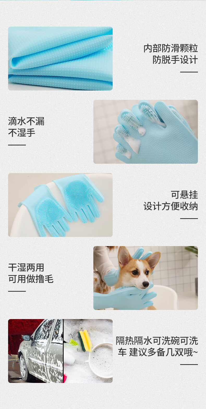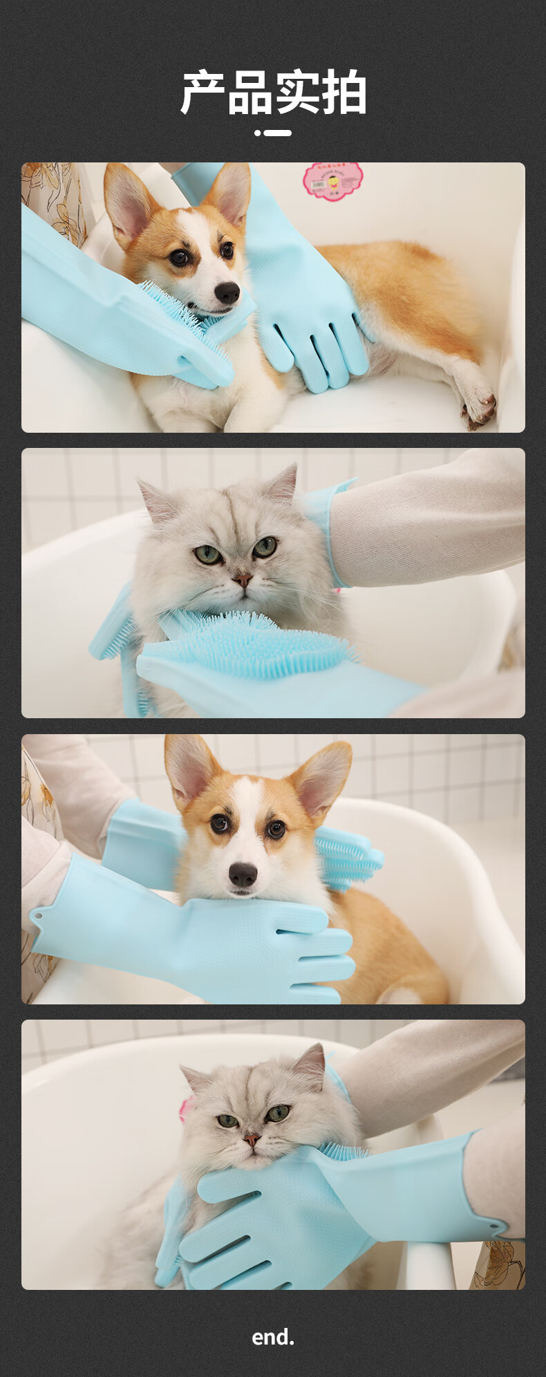 Dog bathing artifact, special silicone brush for puppies, cat pet bathing comb, shower brush, golden retriever dog washing gloves, thickened pet bathing gloves, one pair, no Specifications