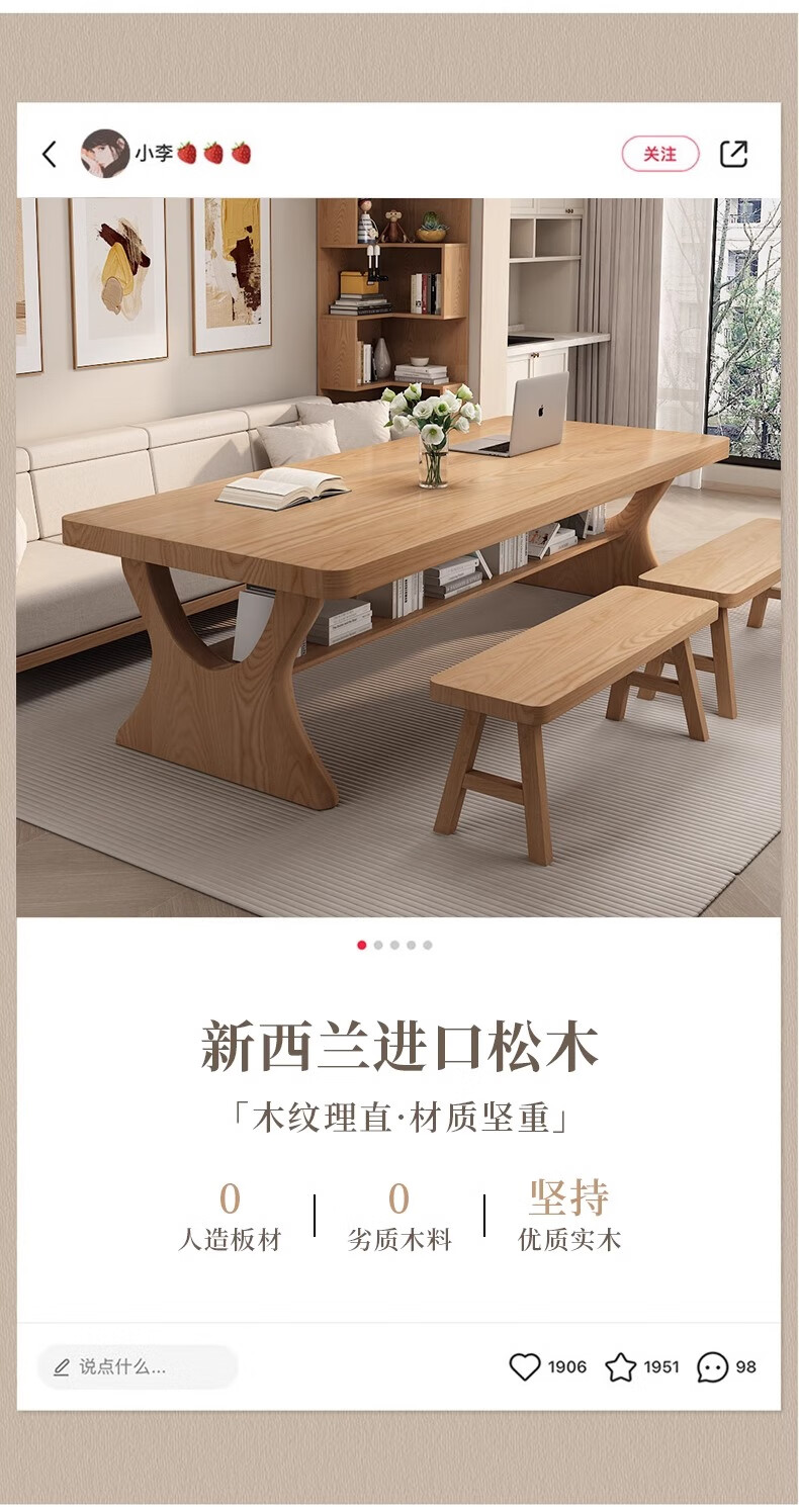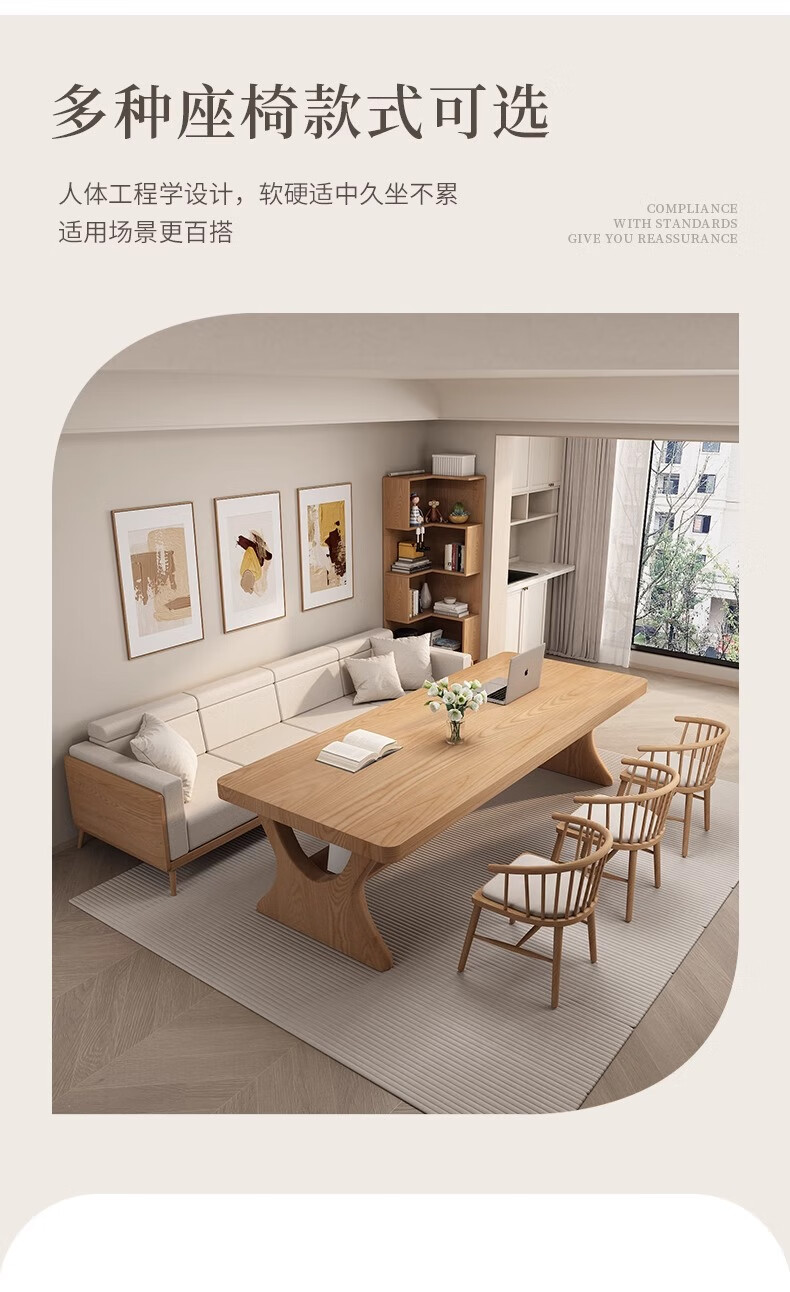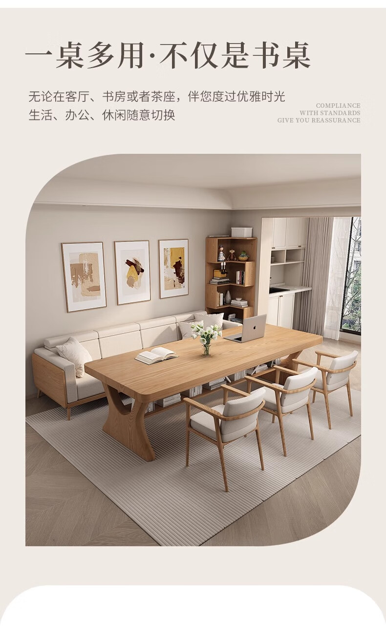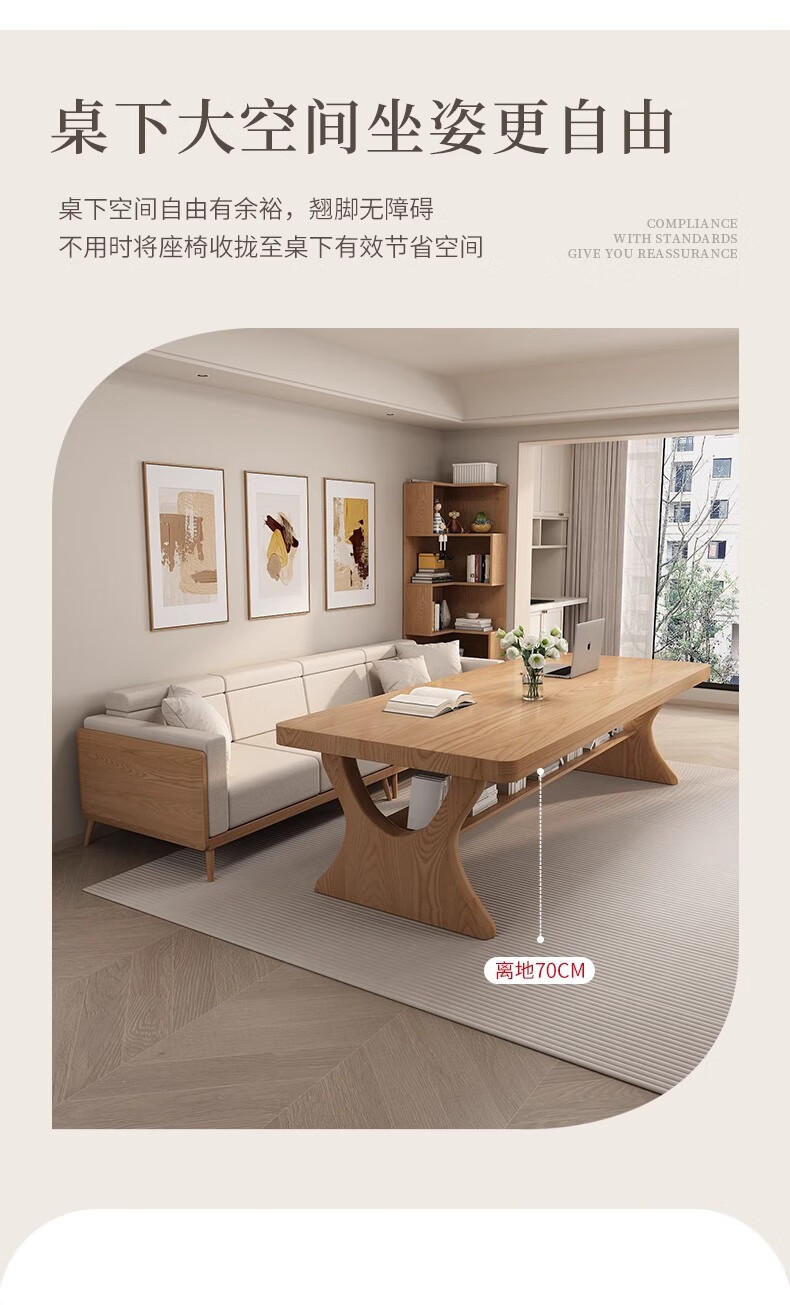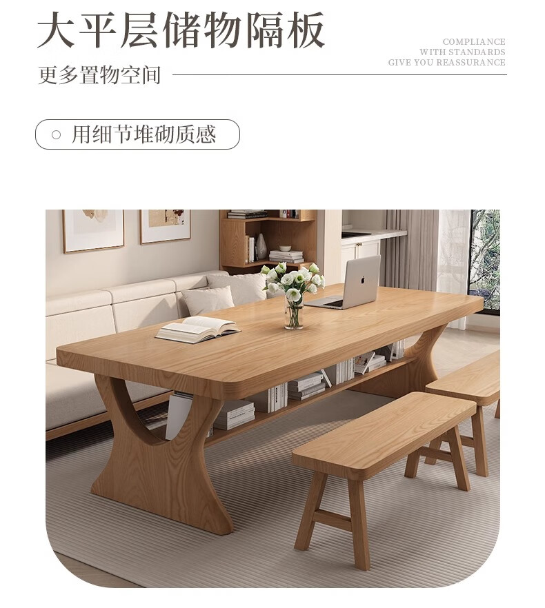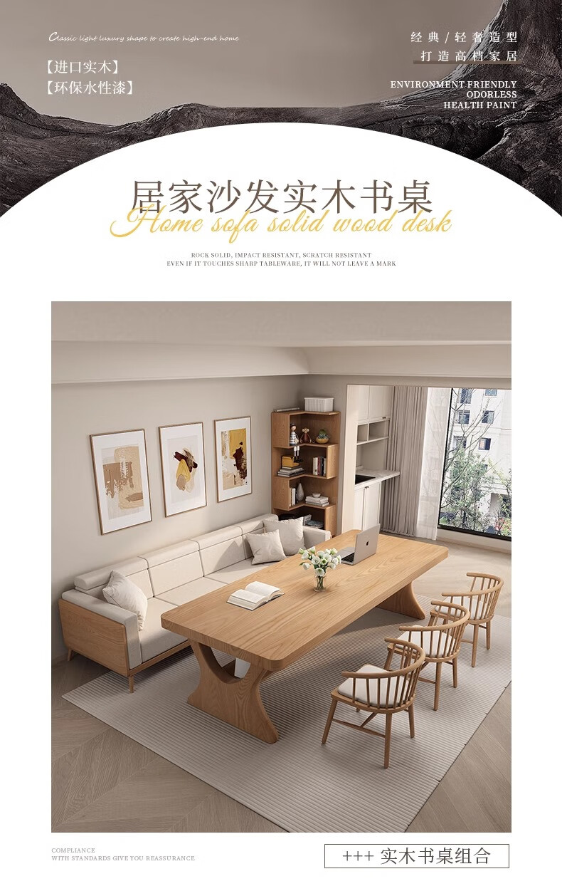 Jingyao living room solid wood double-layer large long desk home long table office desk leisure writing table sofa multi-person study table solid wood bachelor's chair standard model