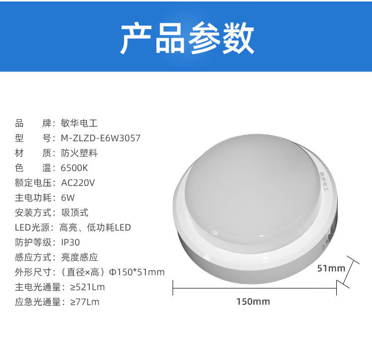Man Wah Electrician Man Wah Fire Emergency Evacuation Lighting Surface Mounted Ceiling Light Aisle Corridor Light LED Corridor Light Emergency Lighting 220V-Man Wah 150mm Direct Emergency Ceiling Light