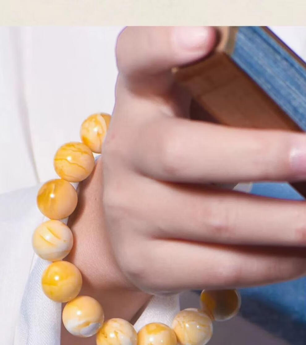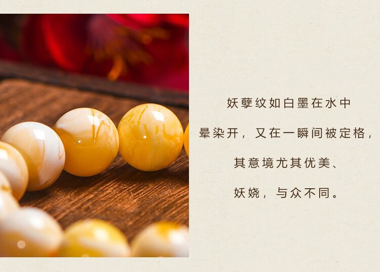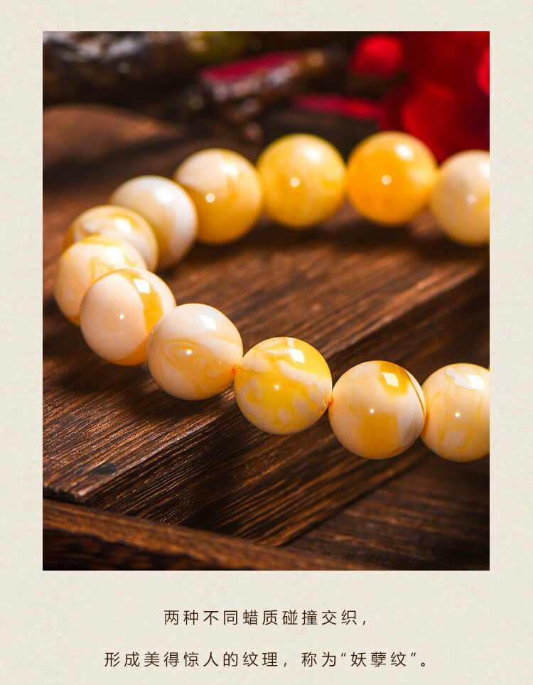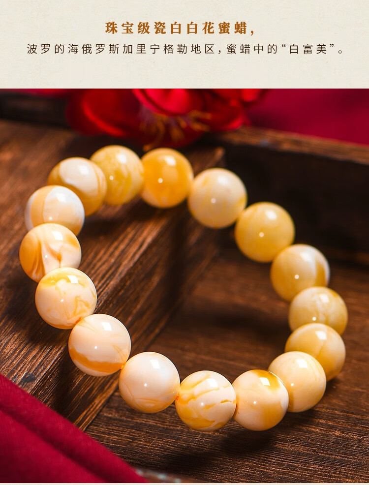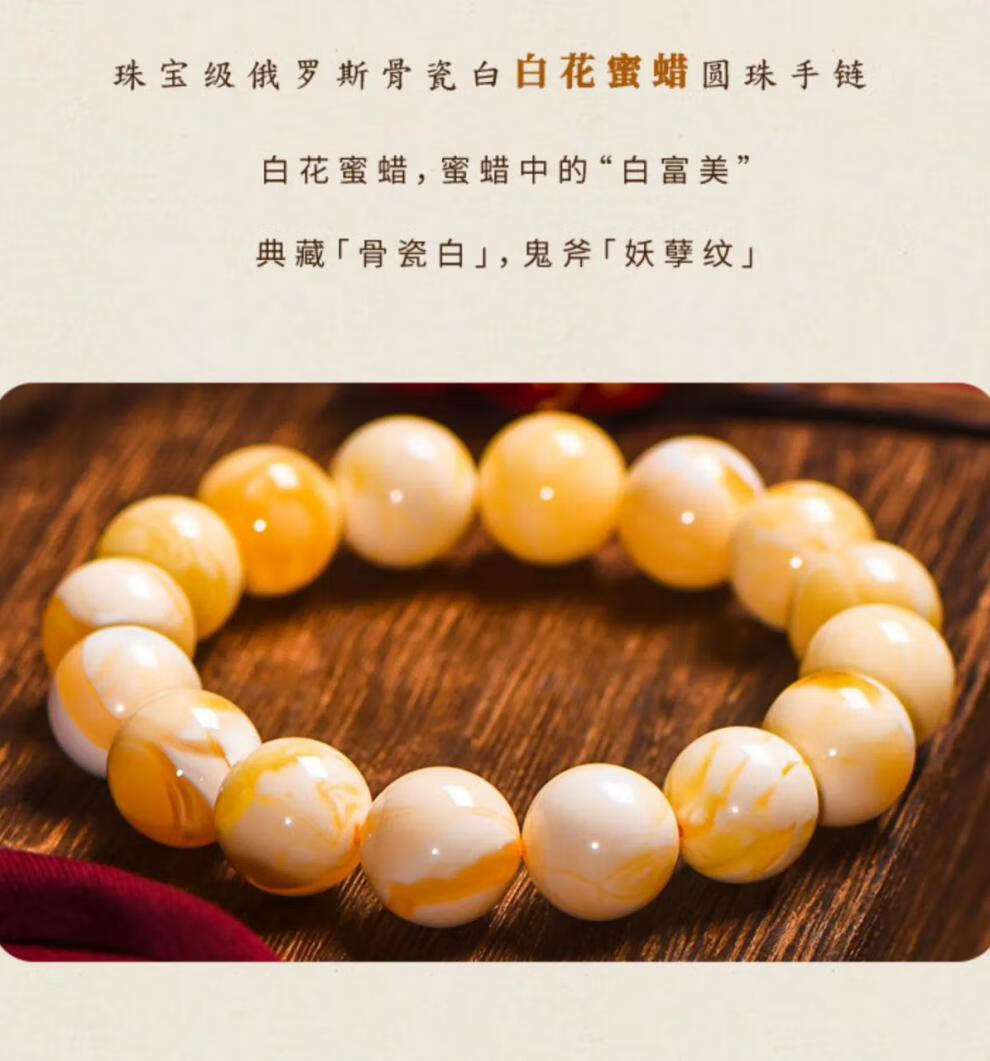 Chengyuanxiang CREORISETIN with national inspection certificate, natural raw mineral authentic white flower beeswax bracelet for men and women, bone china white old beeswax bracelet 24g, demon flower beeswax 14mm (unisex style) approx.