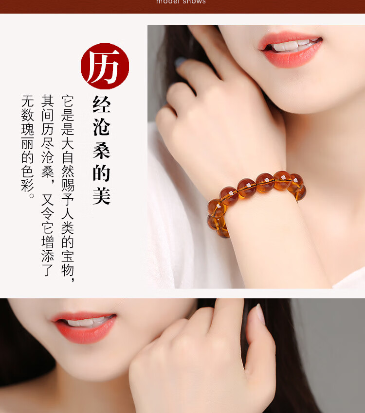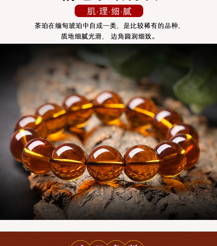 Chengyuanxiang CREORISETIN with National Inspection Certificate Natural Genuine Beeswax Amber Burmese Tea Amber Bracelet Discoloration Blue Amber Sweater Chain for Men and Women Tea Amber Single Circle 14mm