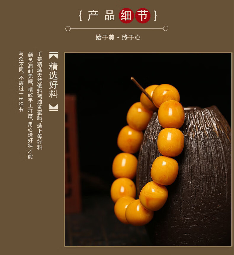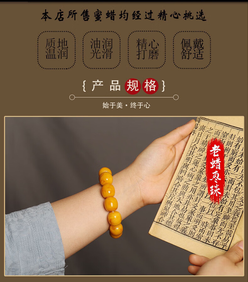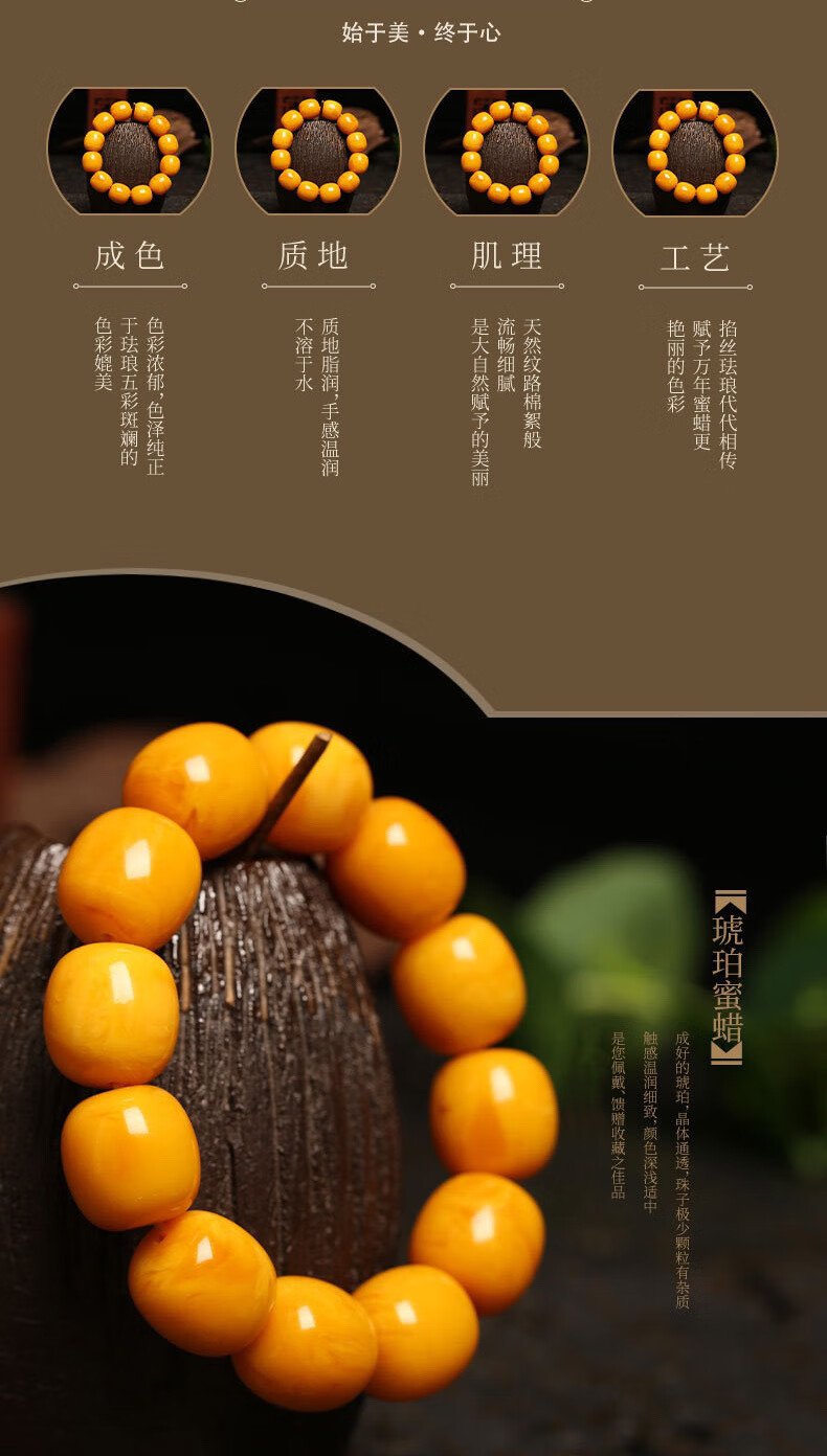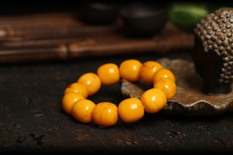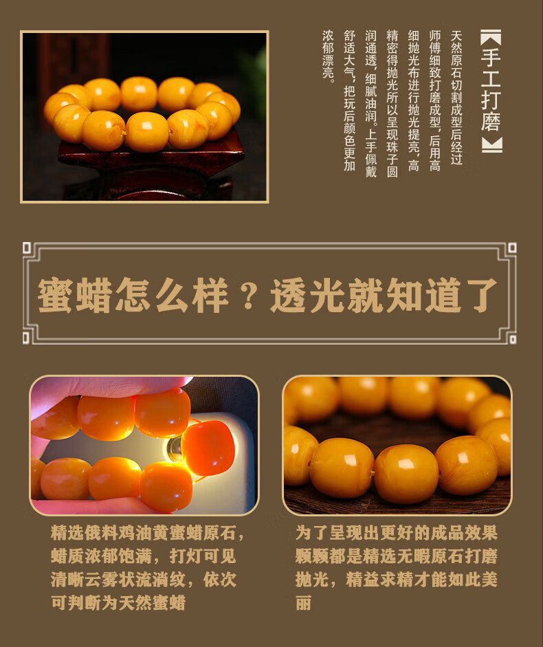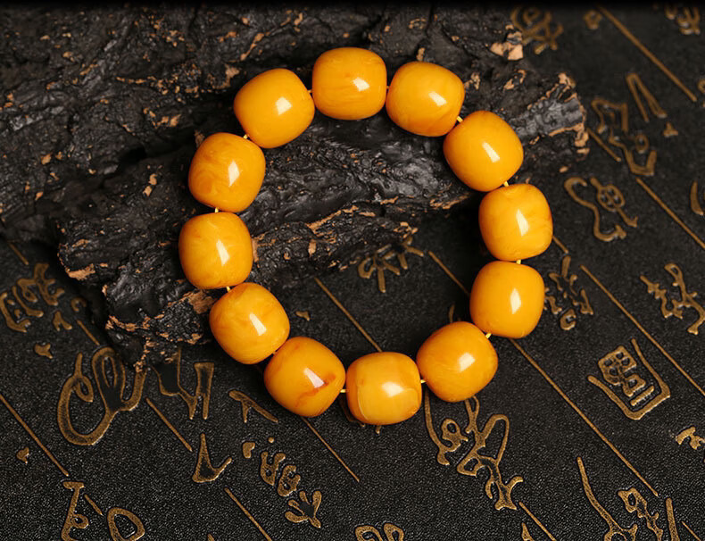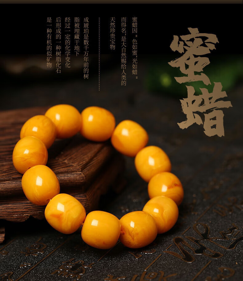 Chengyuanxiang CREORISETIN with national inspection certificate, natural chicken oil yellow beeswax bracelets for men, genuine raw stone amber old honey bucket beads, old type, old date beads bracelets 18mm