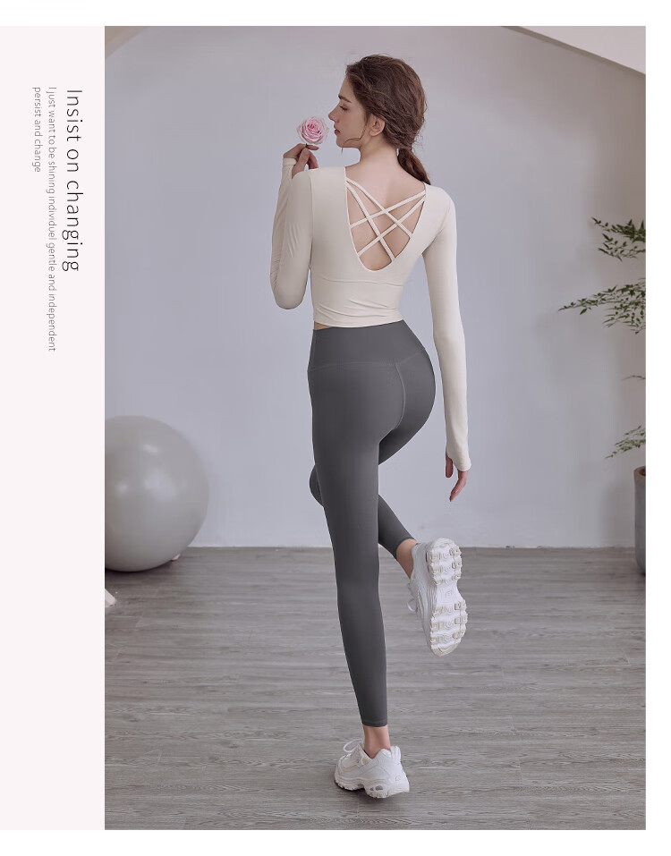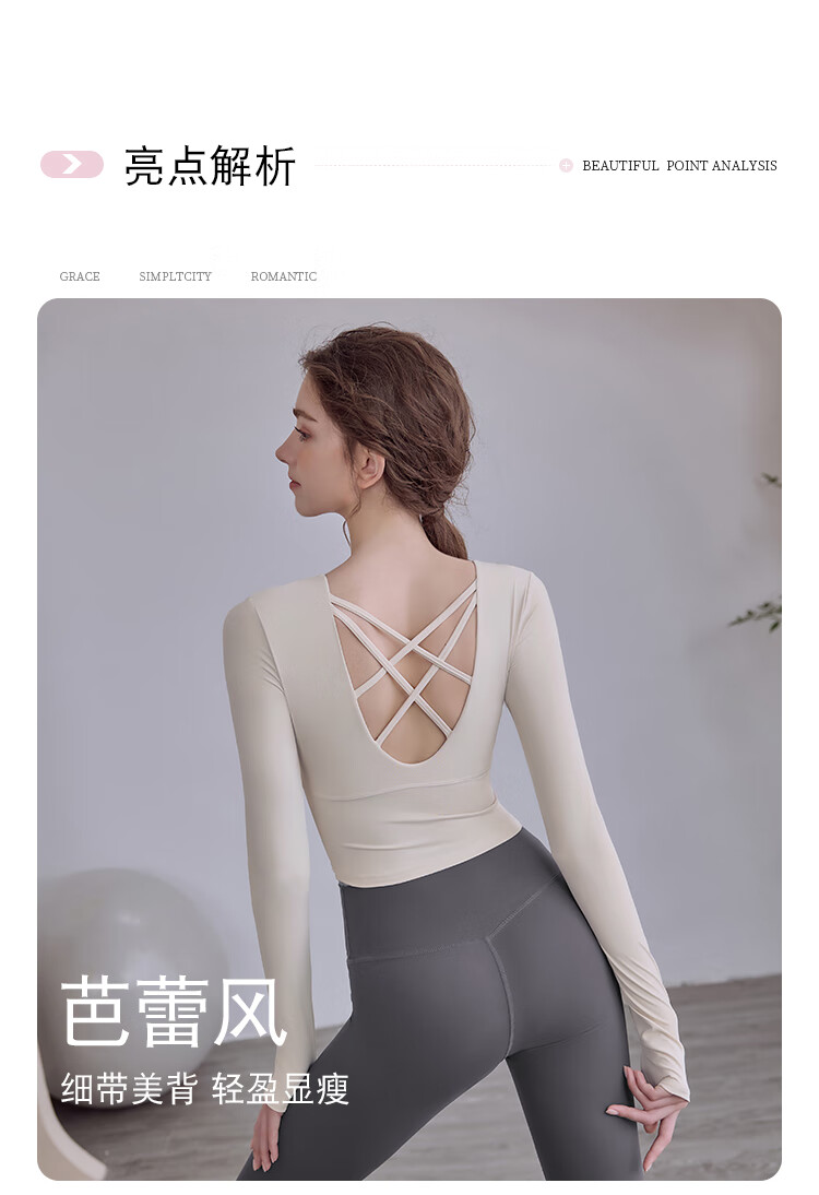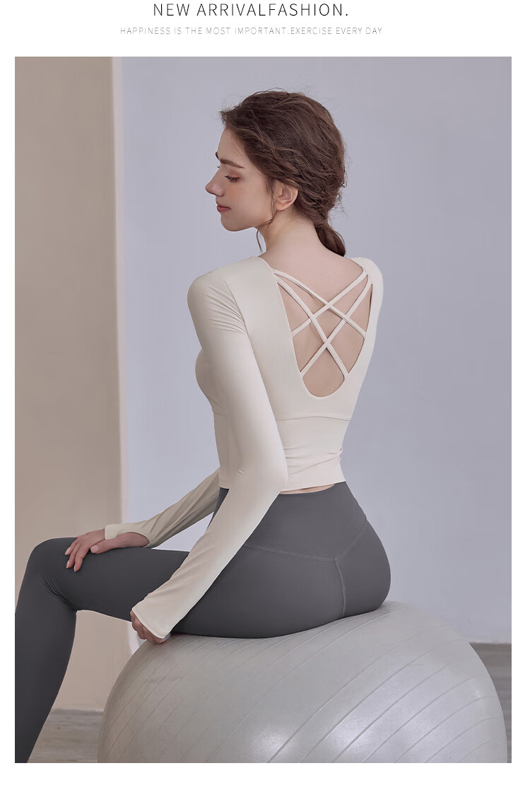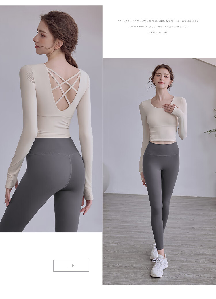 LULU CENTURY Yoga top with chest pad for women's beauty back fitness Pilates training quick-drying breathable long-sleeved new suit milk white long-sleeved M