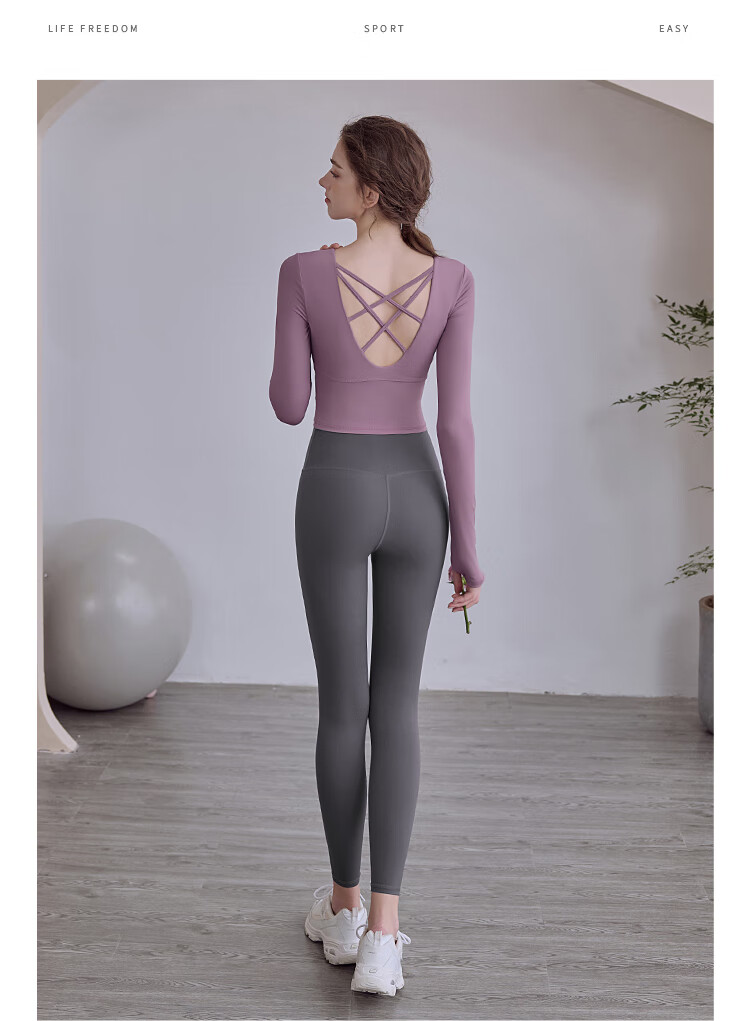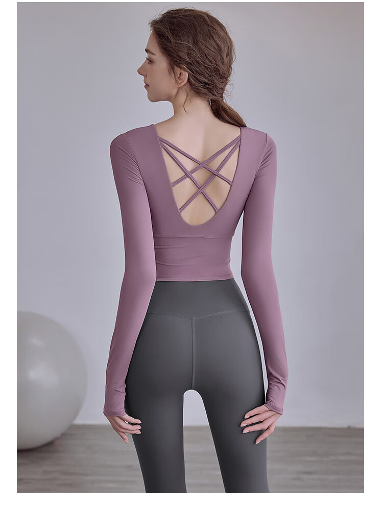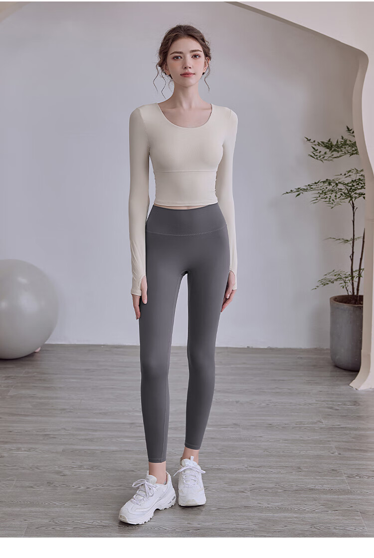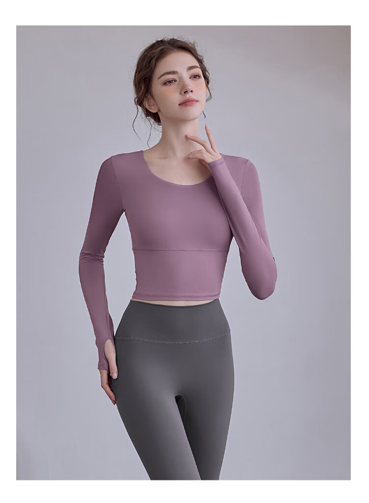 LULU CENTURY Yoga top with chest pad for women's beauty back fitness Pilates training quick-drying breathable long-sleeved new suit milk white long-sleeved M