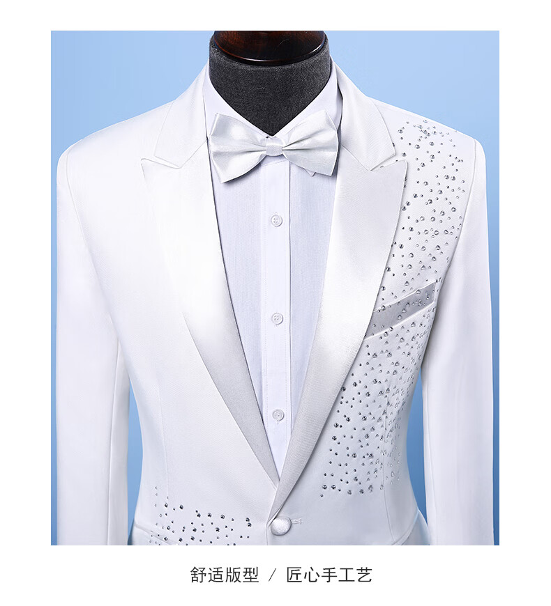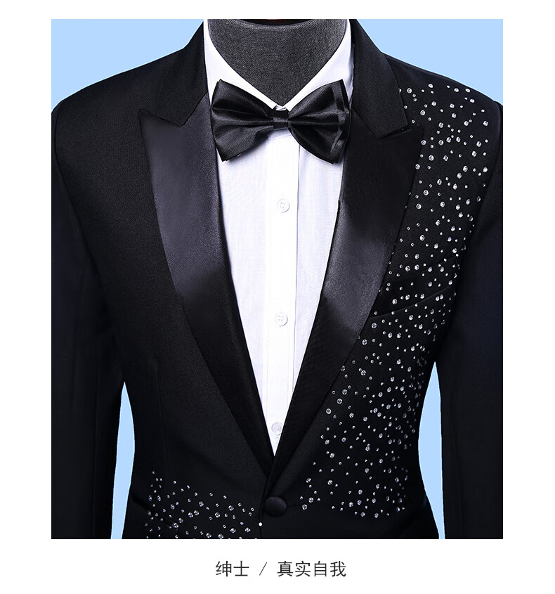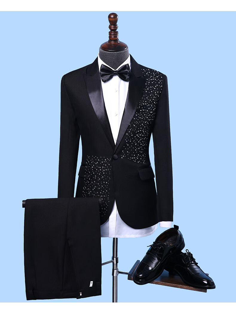 Woodpecker (TUCANO) performance clothing men's brothers sequined suit choir host costume stage dress suit plus size summer black 1 jacket + pants + bow tie 180/XL suitable for weight 170Jin Jin equals 0.5 kg, left and right wear