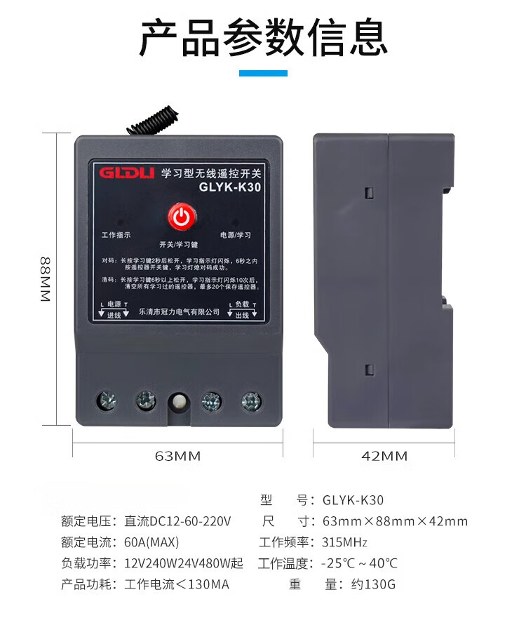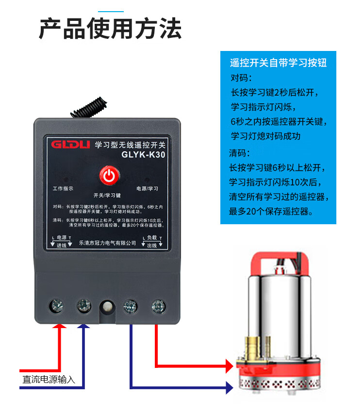 DC remote control switch remote control water pump battery charging DC12V24V48V60V72 wireless remote control 500 meters single remote control