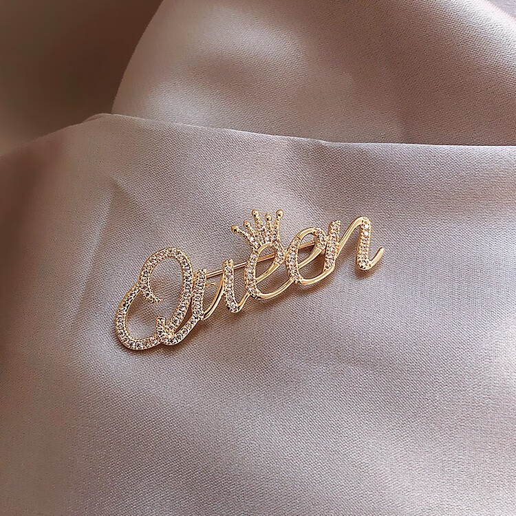 QUAMER light luxury temperament letter brooch outlets women's accessories temperament letter brooch (gold color)