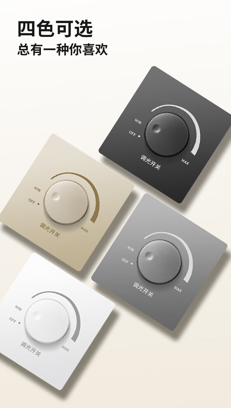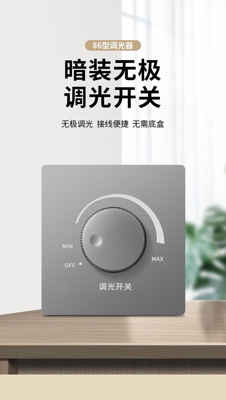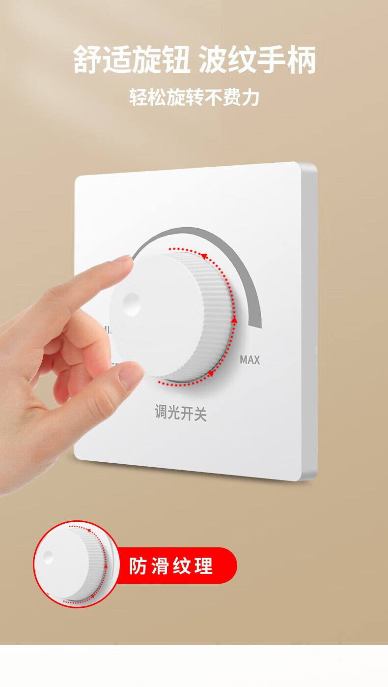 International Electrician Stepless Dimmer Switch 300W High Power Wide Angle Light and Dark Adjustable LED Incandescent Lamp Wall Rotary Switch Panel White Dimmer Switch-300W Concealed Installation