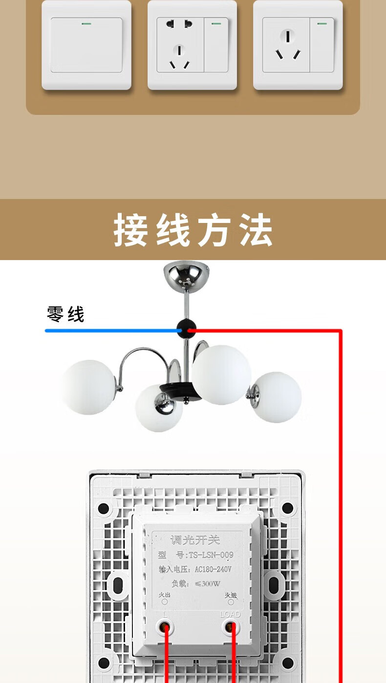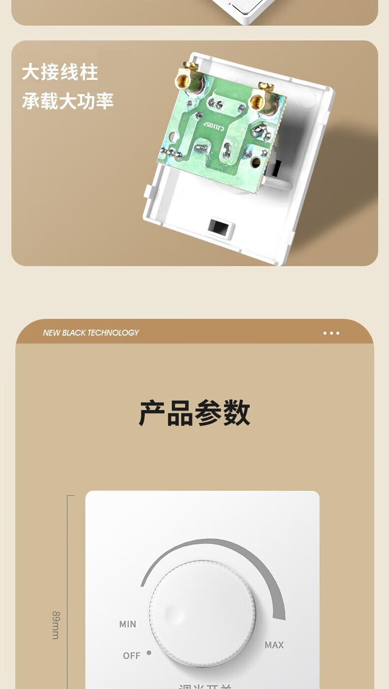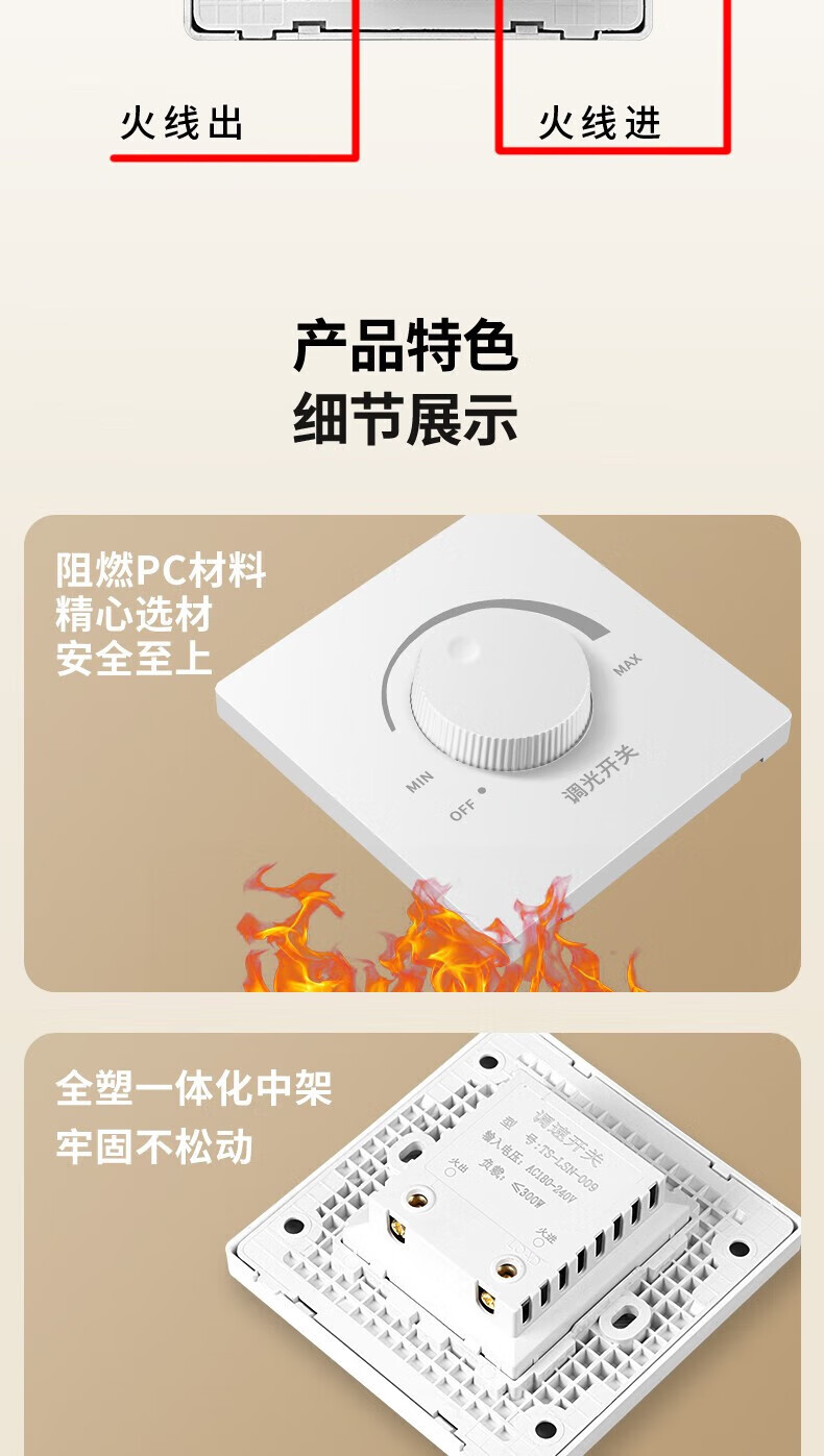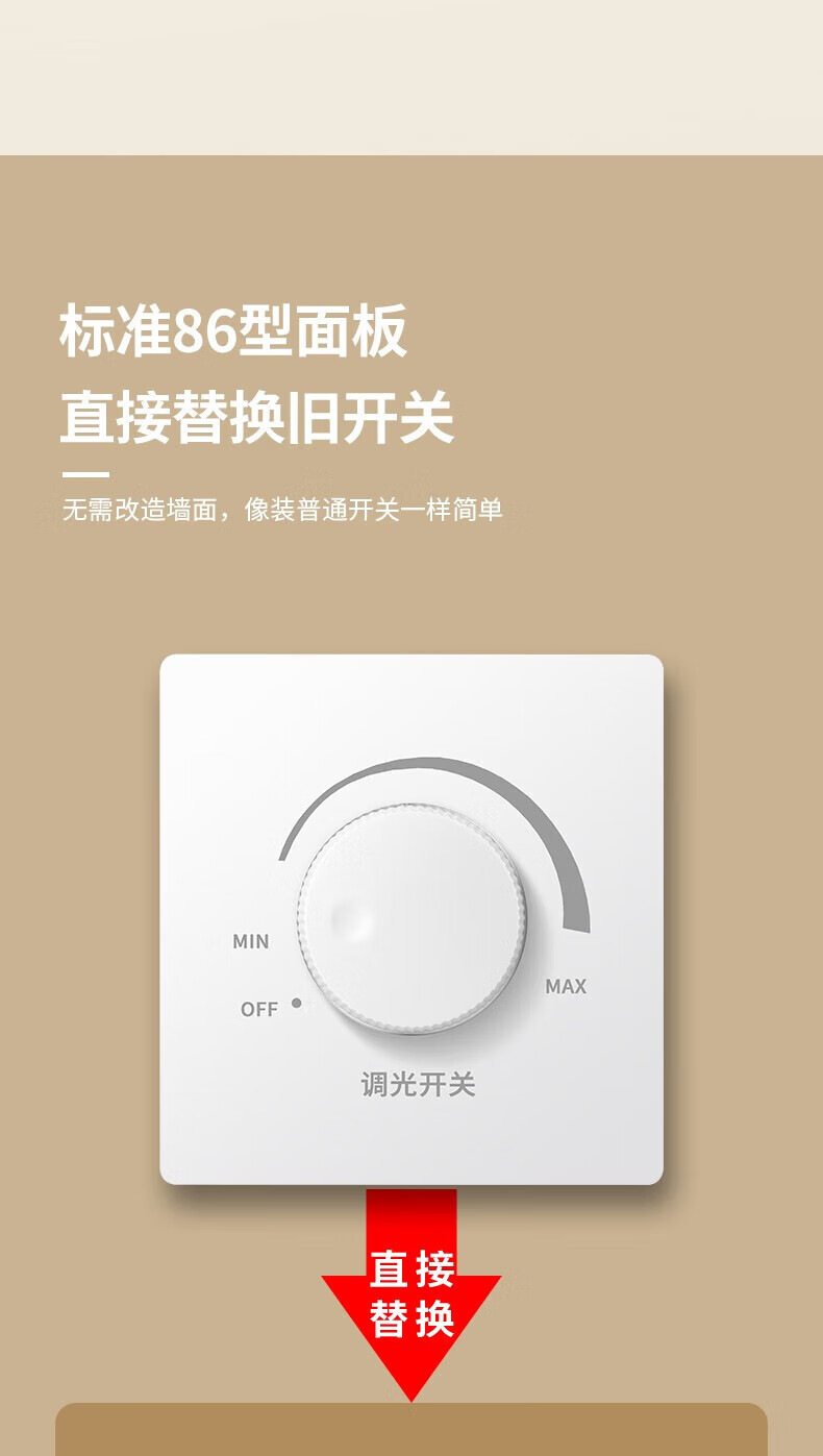 International Electrician Stepless Dimmer Switch 300W High Power Wide Angle Light and Dark Adjustable LED Incandescent Lamp Wall Rotary Switch Panel White Dimmer Switch-300W Concealed Installation