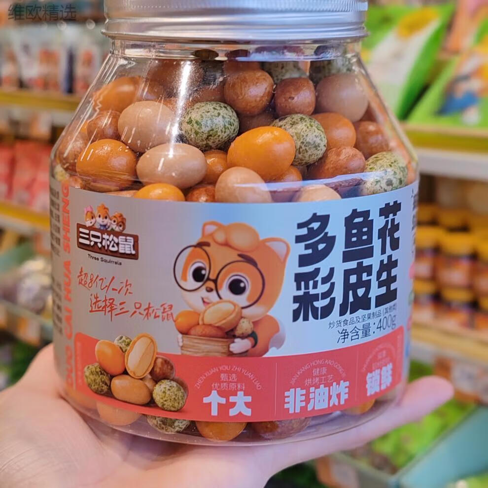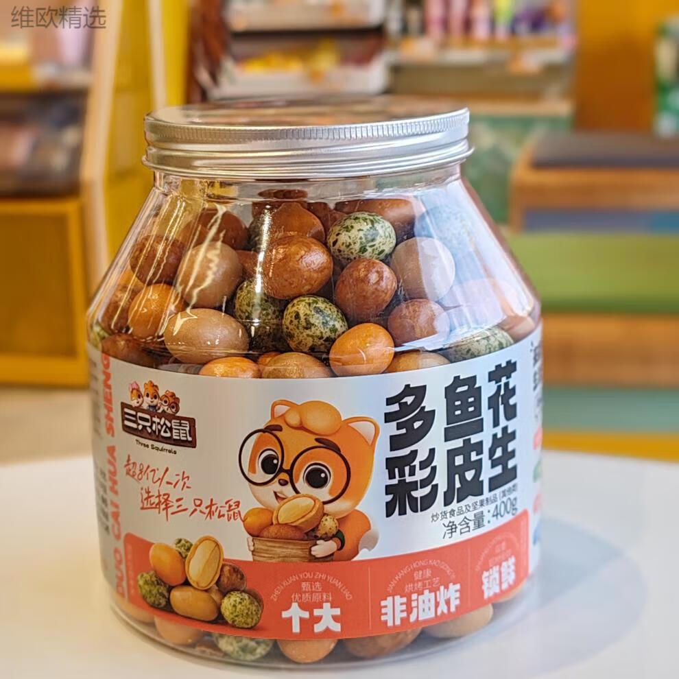 Three Squirrels Fish Skin Colorful Peanuts 400g Nostalgic Snacks Crispy Daily Nuts Roasted Seeds