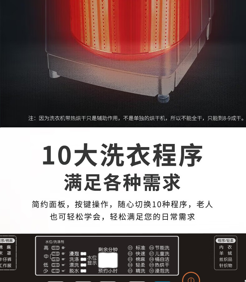 Changhong fully automatic washing machine, household large-capacity washing and drying machine, pulsator washing and drying machine, powerful thermal drying bucket, self-cleaning bionic hand rub, commercial hotel laundry, 10kg, powerful air drying + strong power motor