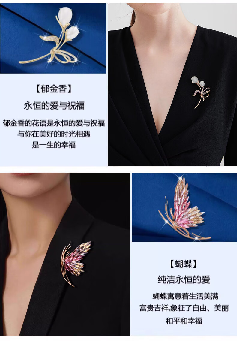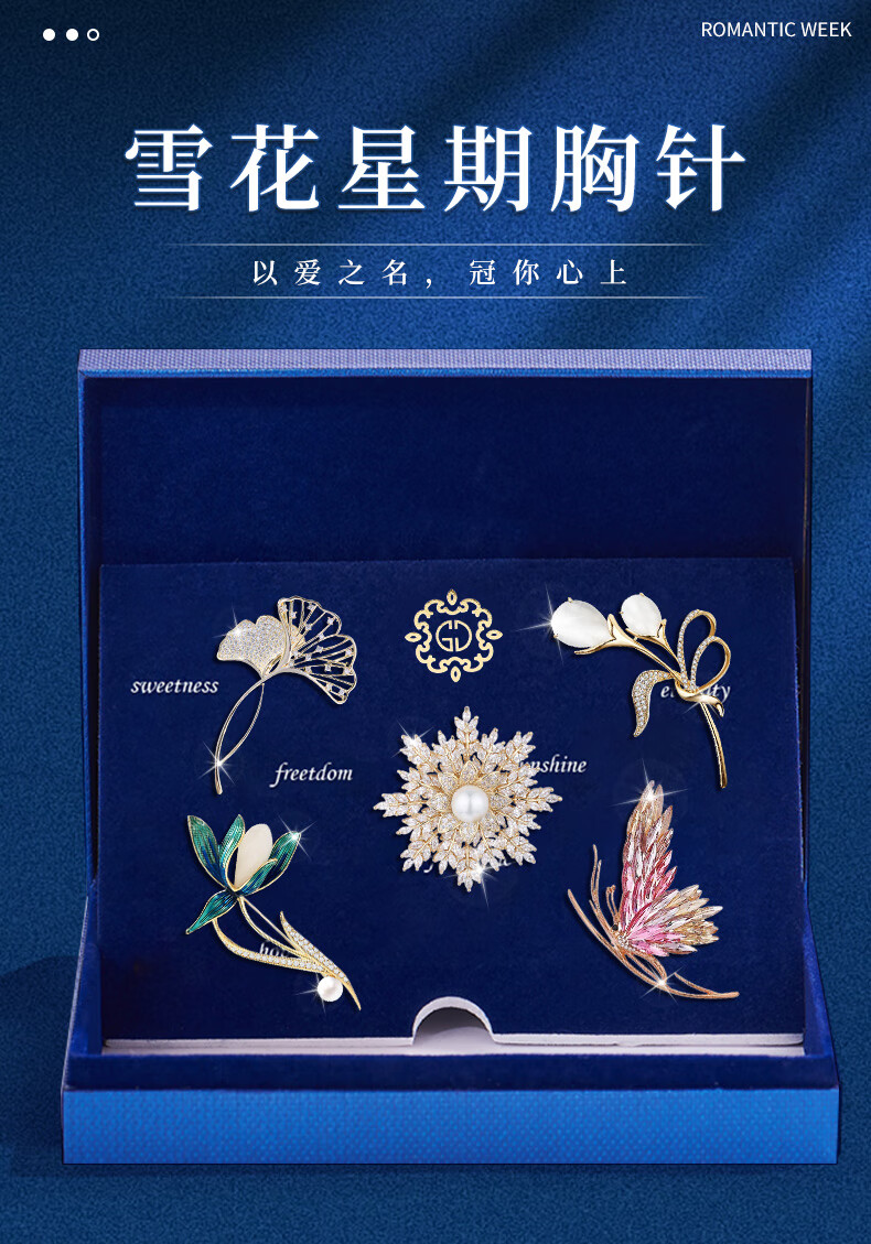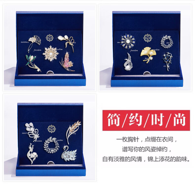 Jingshengya Zhou brooch women's high-end corsage suit suit accessories light luxury temperament women's birthday gift girls practical high-end brooch five-piece set gift box