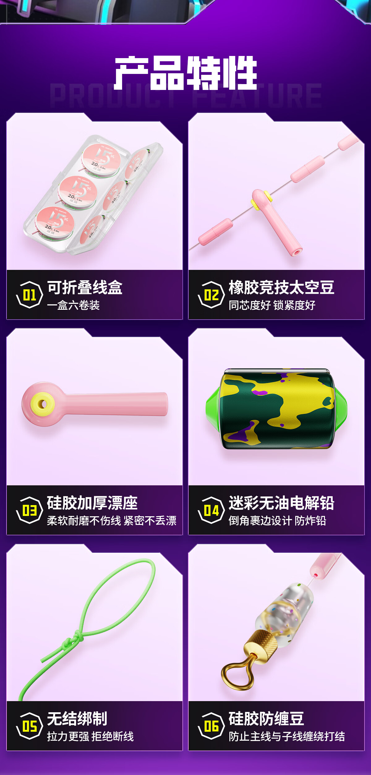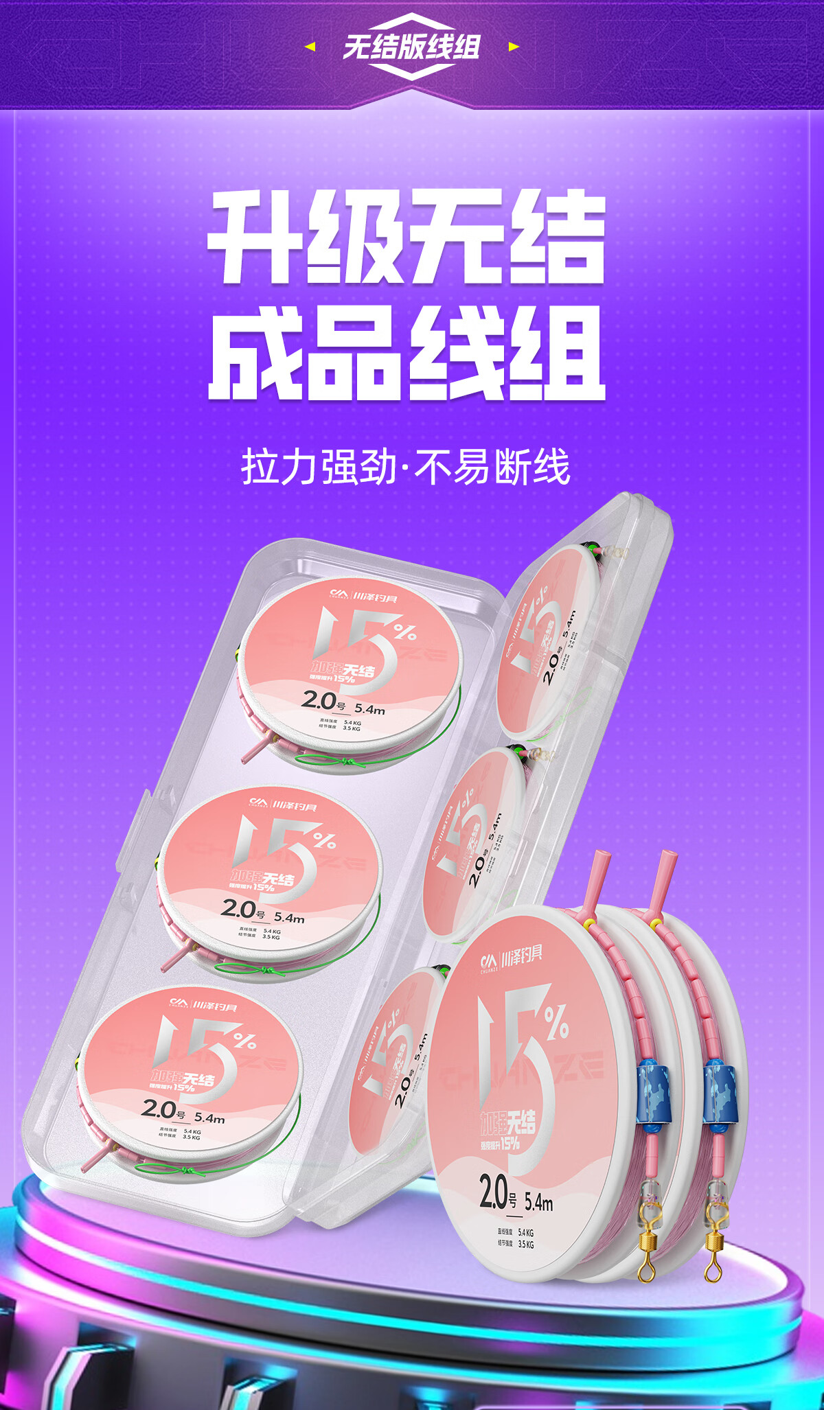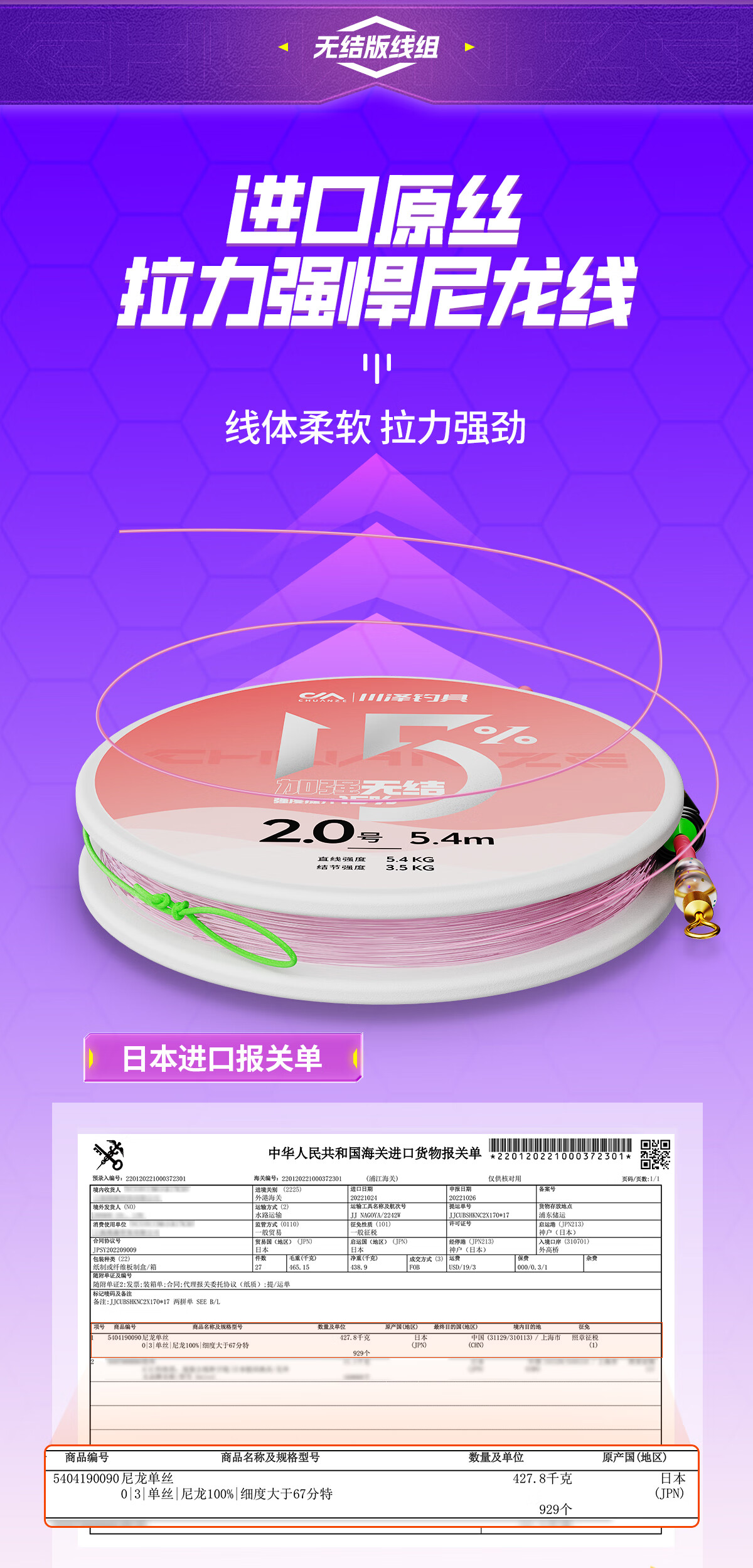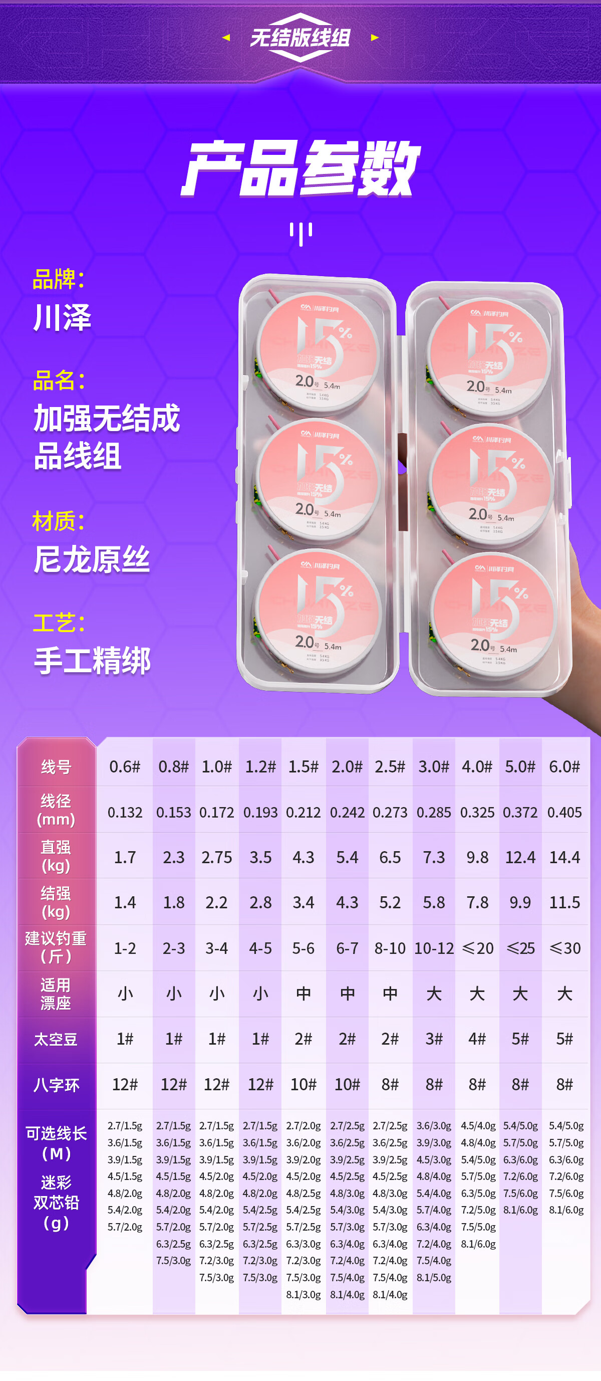 Kawaze upgraded knotless line component main line set imported fishing line main line nylon line strong pull wild fishing black pit line set 6.3 meters 6 rolls free 6-axis main line storage box No. 2.0