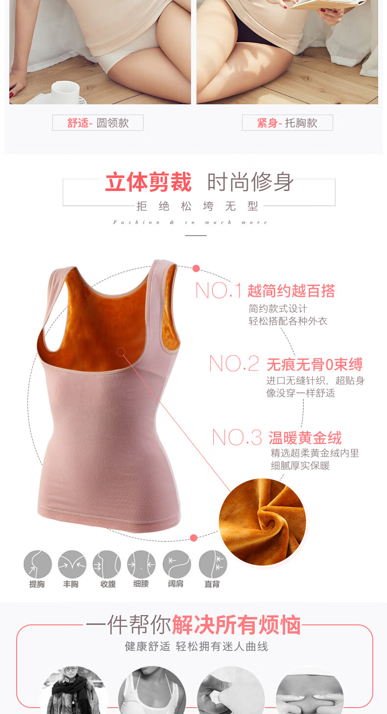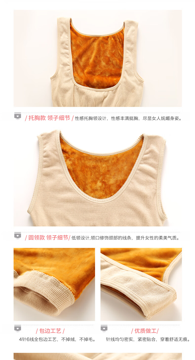 Langsha Thermal Vest Women's Plus Velvet Thickened Body Shaping Breast Holding Tight Winter Underwear Bottoming with Vest Pure Skin Color - Breast Holding Model XL Suitable for 112 to 150 Jin Jin equals 0.5 kg