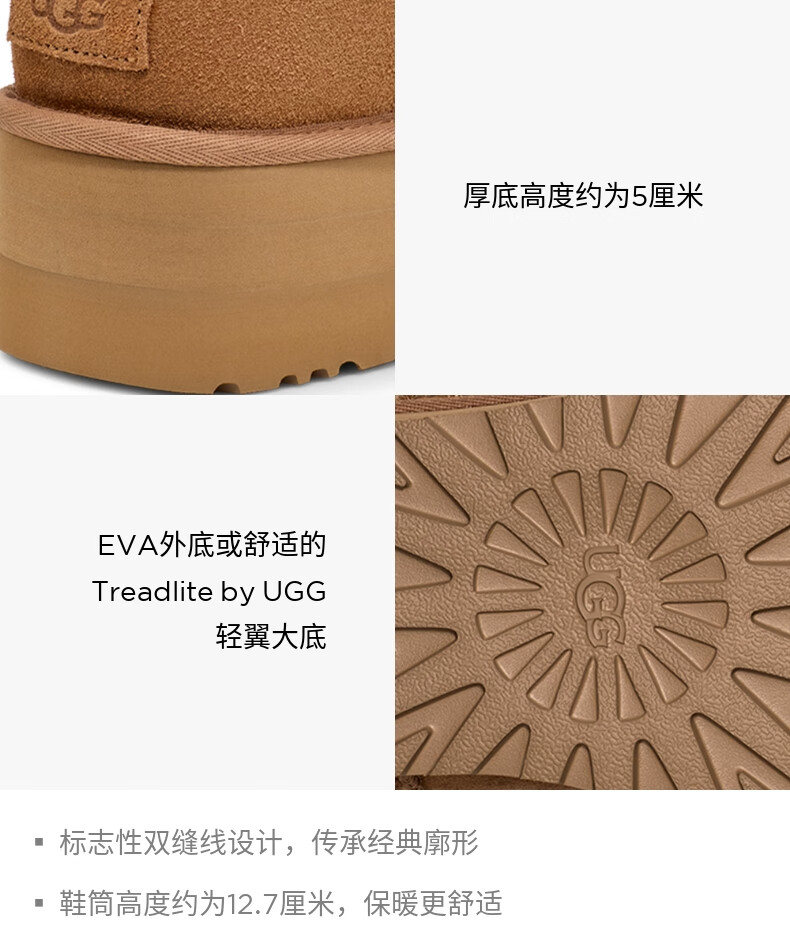 UGG autumn women's casual and comfortable classic solid color thick sole warm mini fashion short boots snow boots 1134991 CHE | Maroon 38