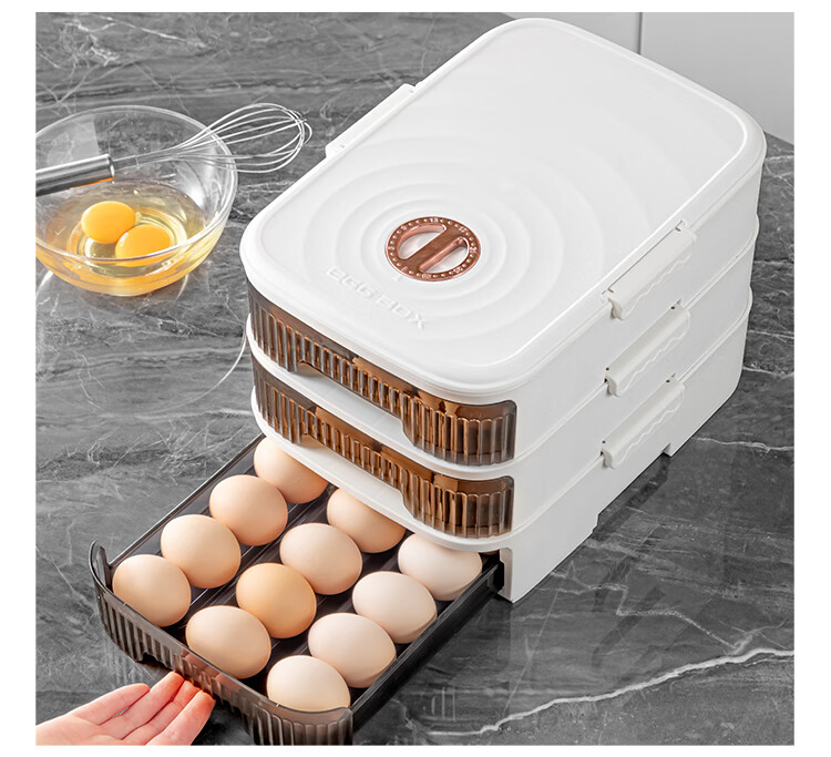 Home Story (KATEI STORY) Japanese egg storage box drawer-type rolling refrigerator egg box food grade egg storage box egg artifact white double layer holds about 42 pieces automatically refills