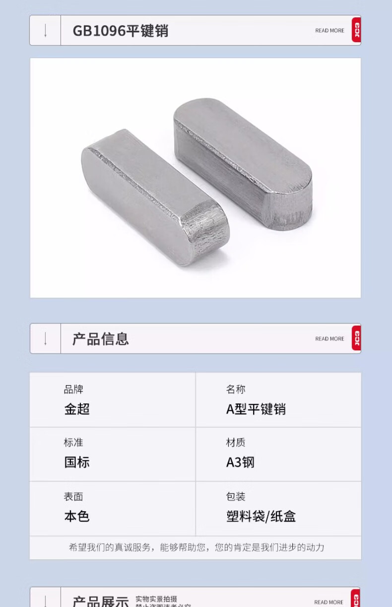 Jinchao flat key A-type pin GB1096 square key pin key strip double round two ends semi-circle keyway pin pin D3D4D5 6 8 10 M3*3*12 (200 pieces)